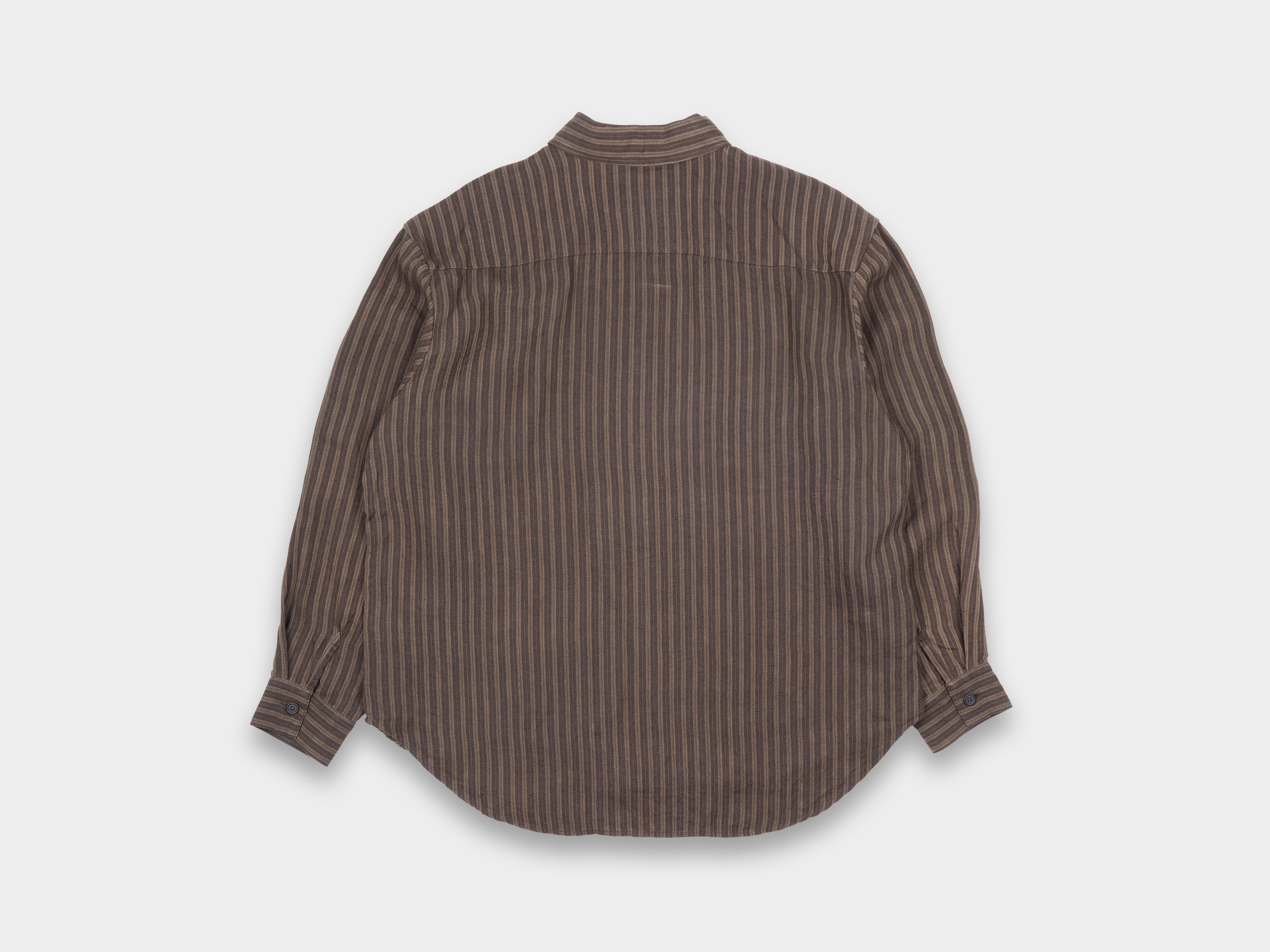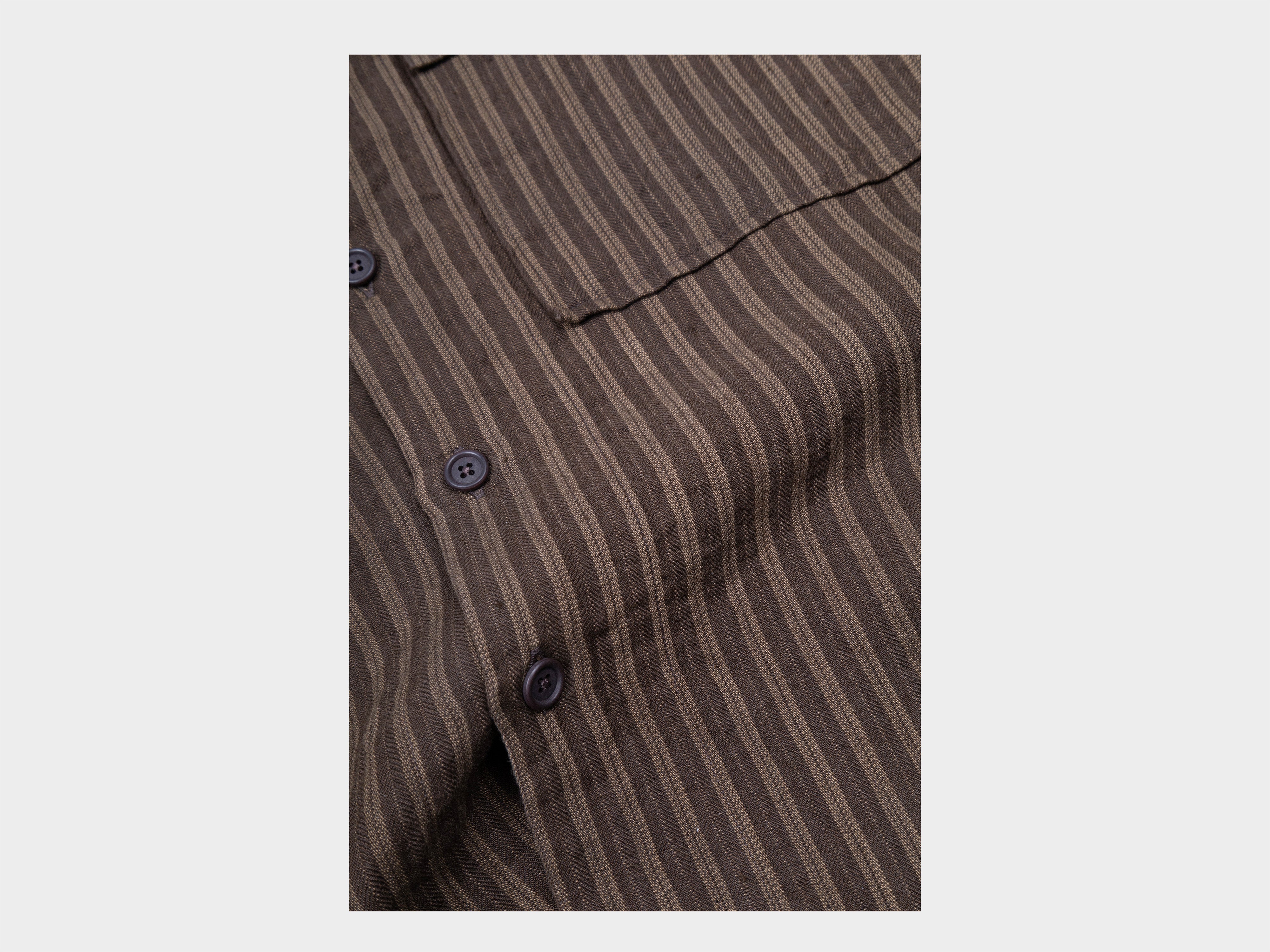 - Evan Kinori Big Shirt Linen Herringbone Stripe Brown
