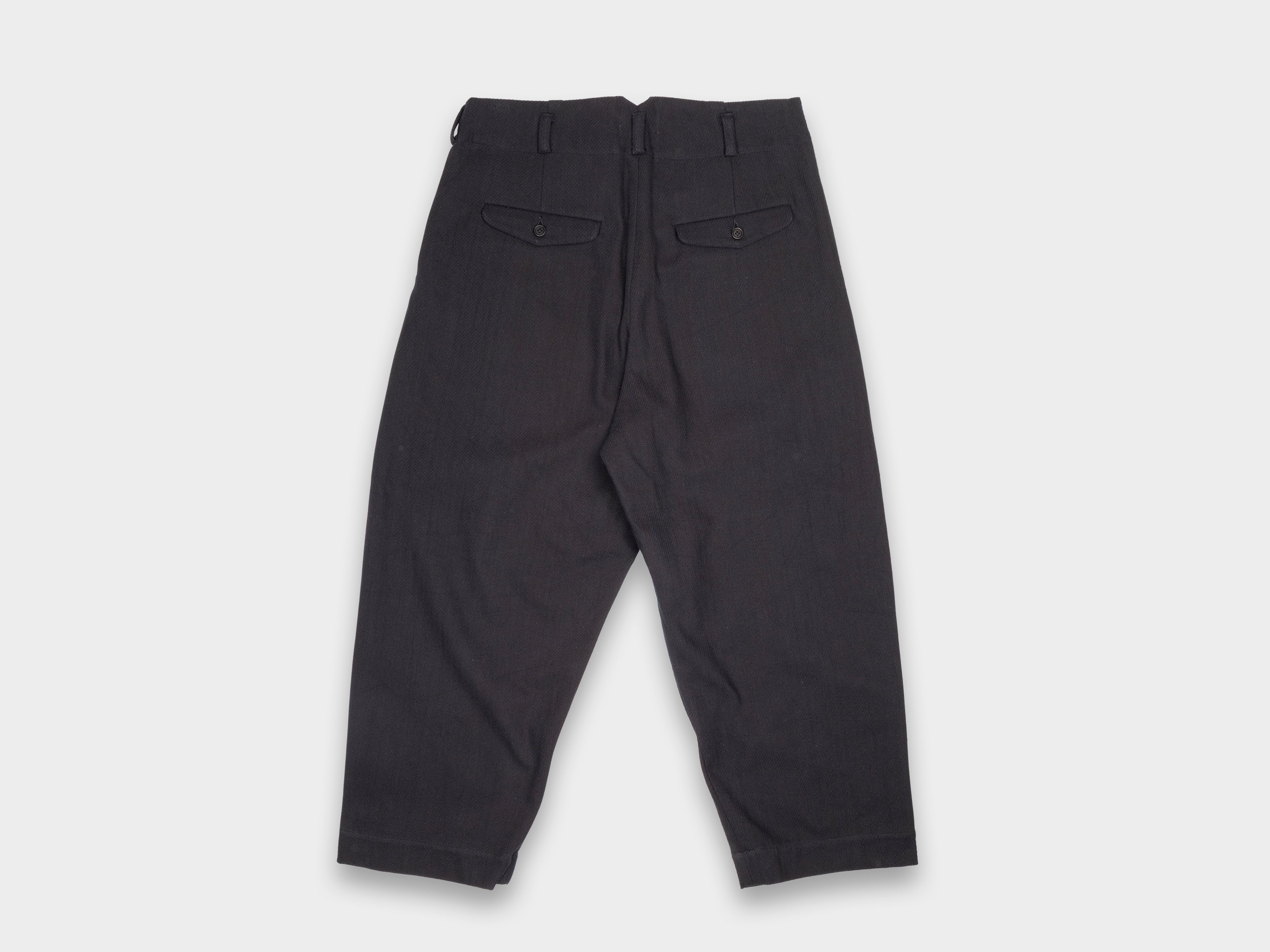 +“Two Pleat Pant” has a generous, loose fitting silhouette with a slight taper, front slash pockets, back welt pockets and a back split waistband for easy wear. Made in Japan.
