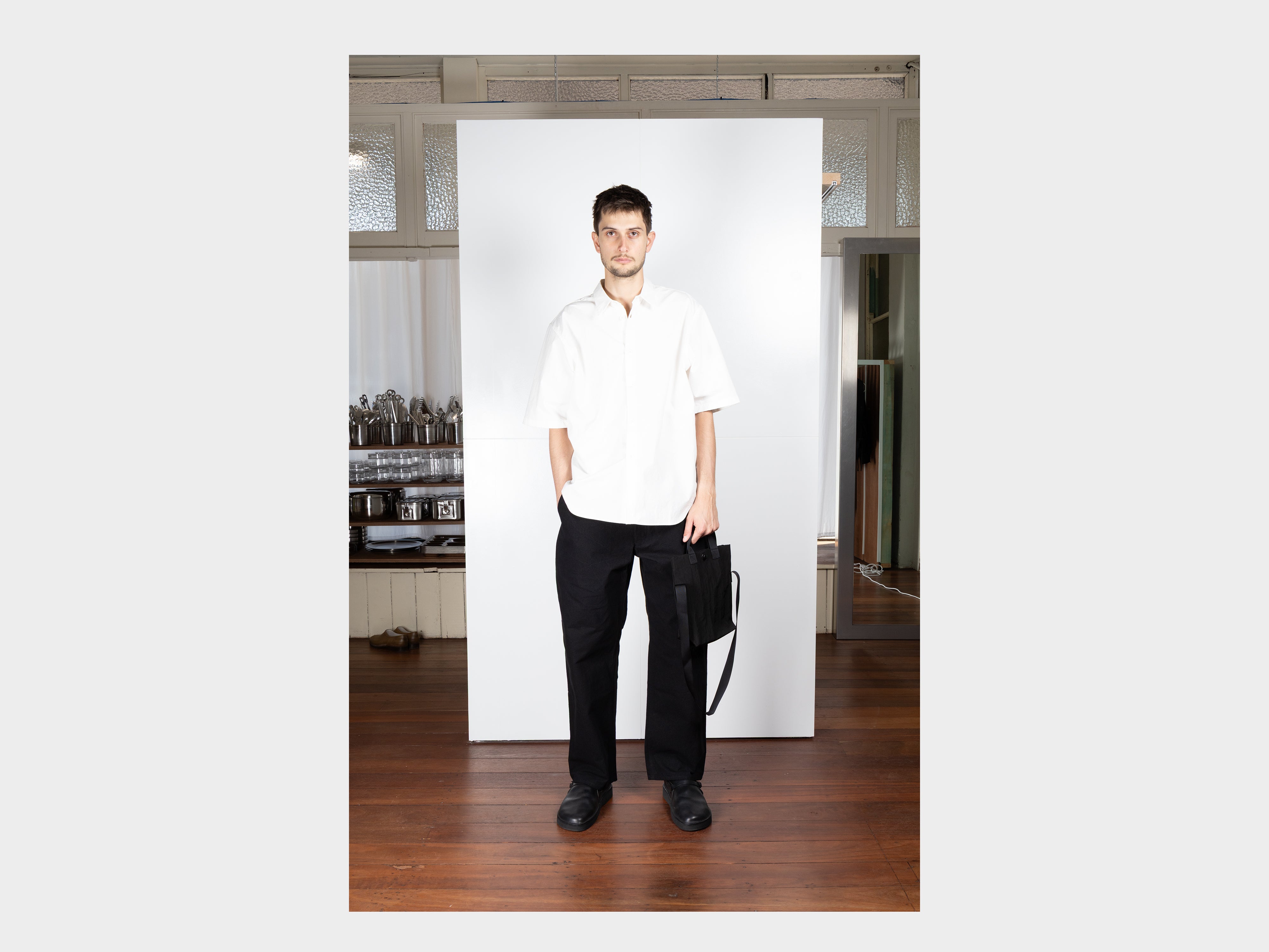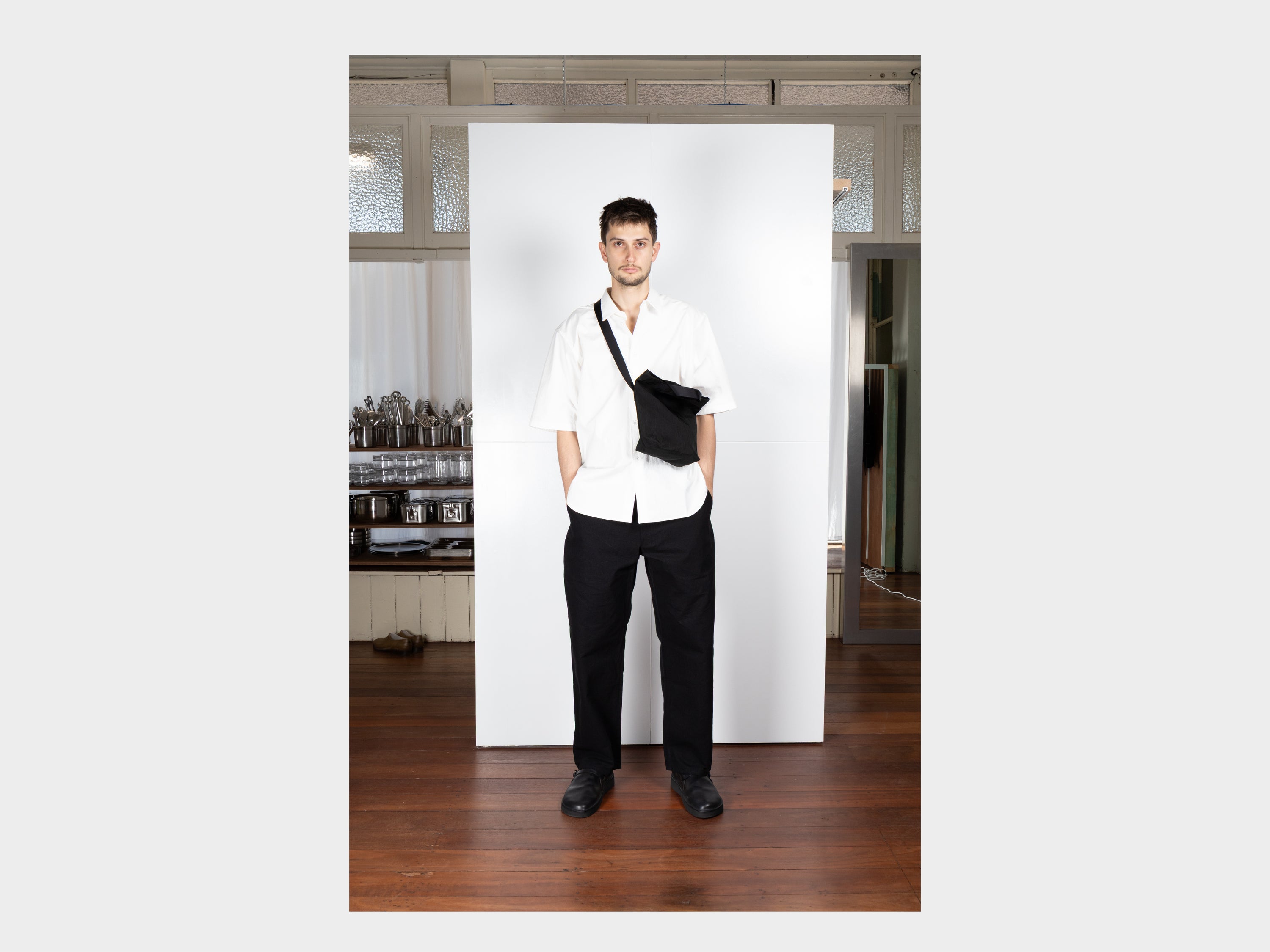 +Half-size version of our original B1. Fold-over mini tote with snap hardware closure, two short handles, and single long shoulder strap designed to be worn crossbody. Made in Japan.