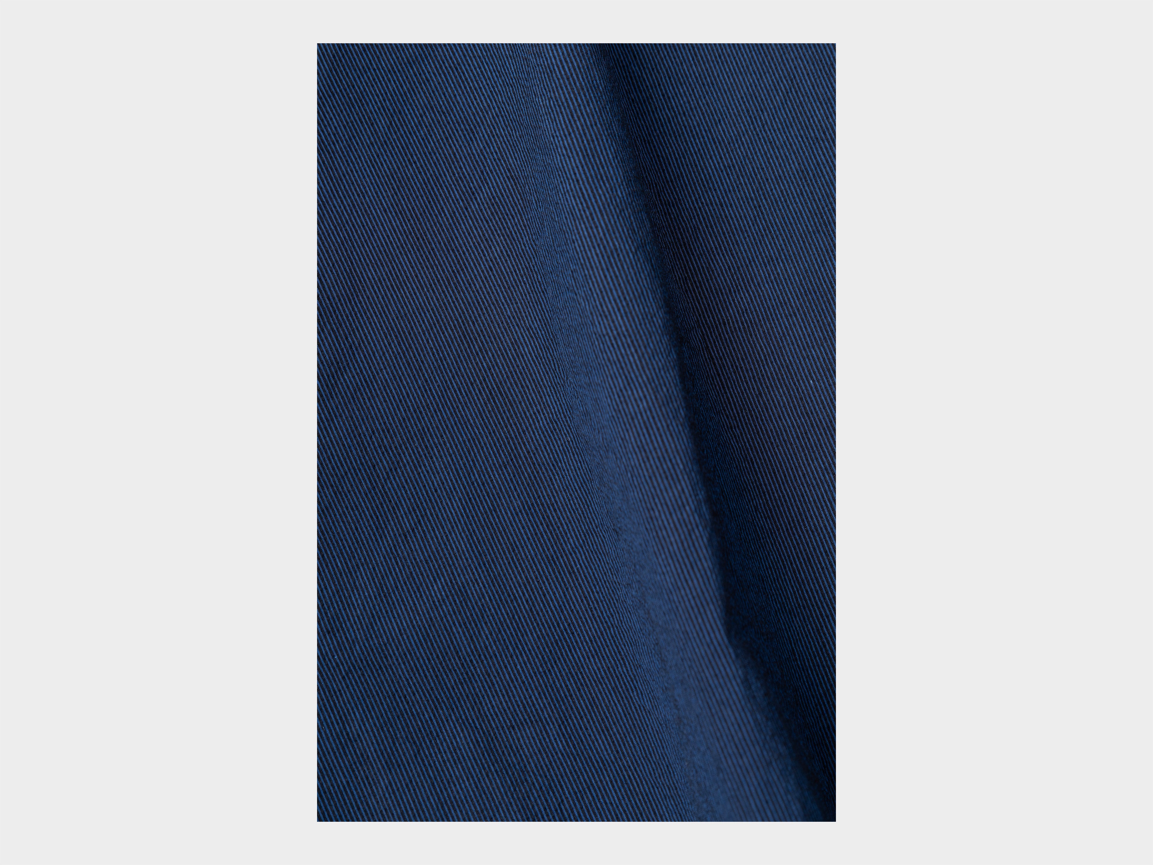 +100% cotton cordlane. Lightweight cloth woven with varied yarn thicknesses to create textural wales. With washing and wear this cloth will become lighter and papery. Made for MAN-TLE on a wooden shuttle loom in Shizuoka, Japan.