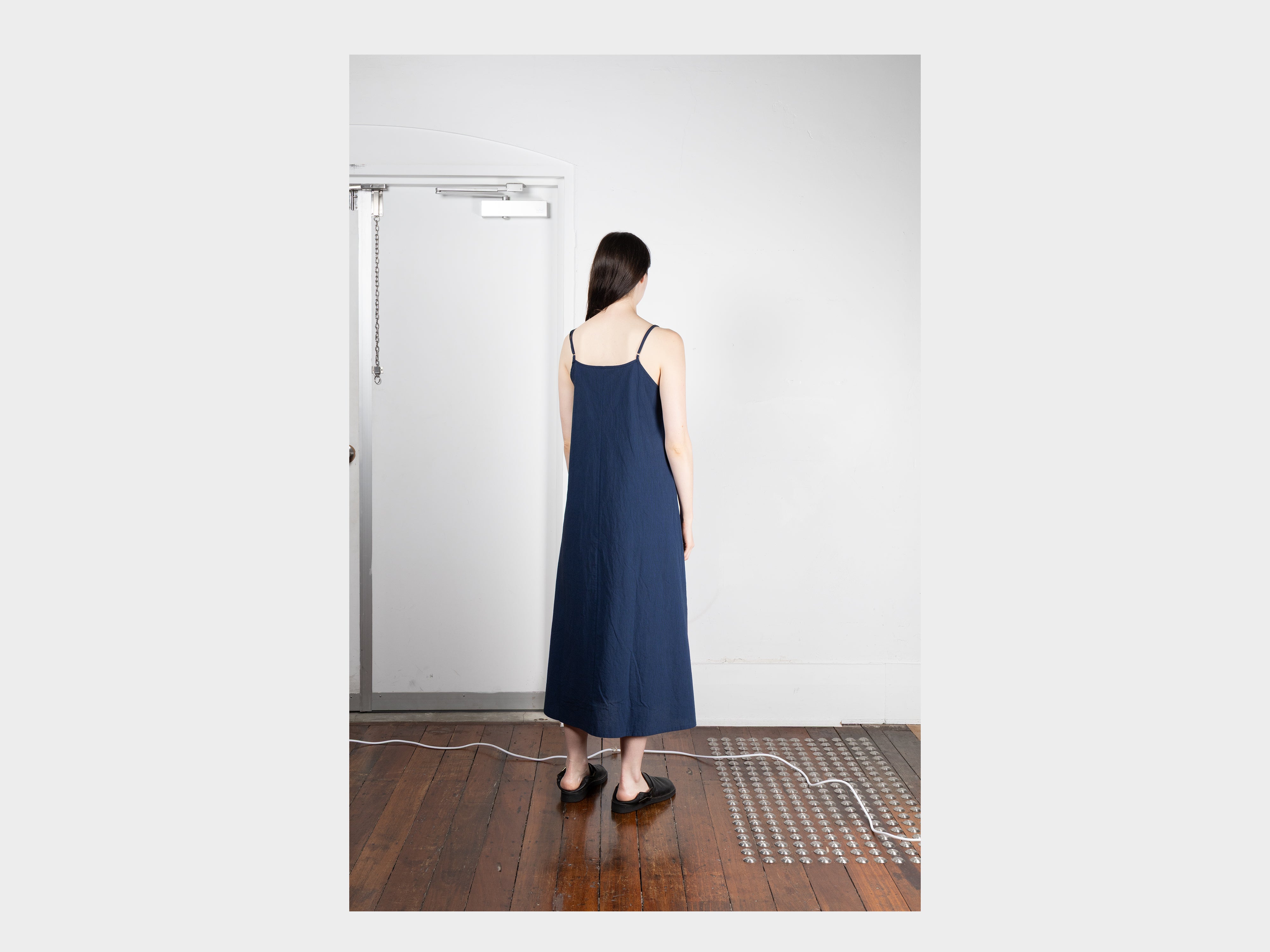 +Relaxed a-line slip dress. Centre back and centre front seams, fine adjustable straps. Made in Japan.