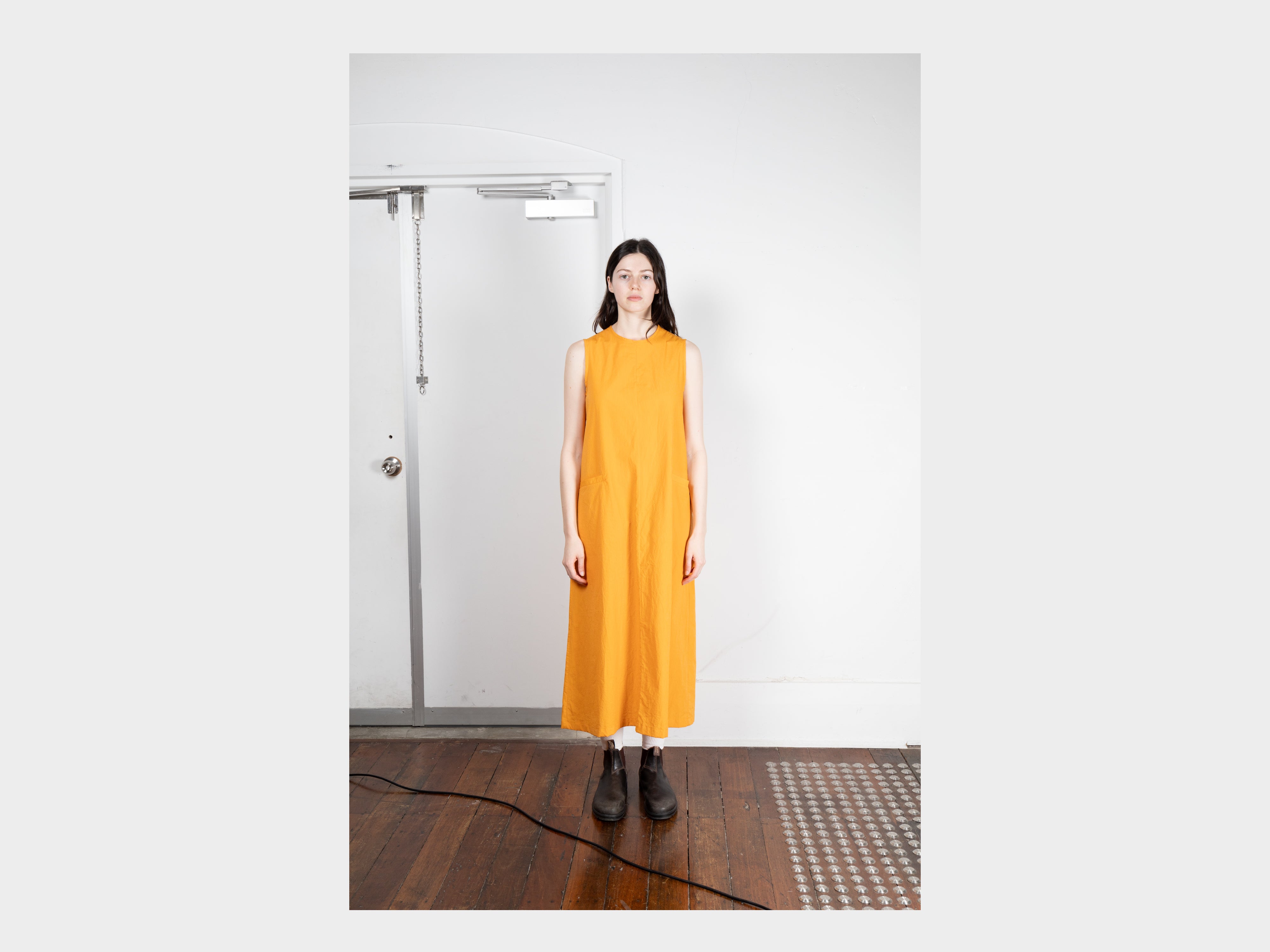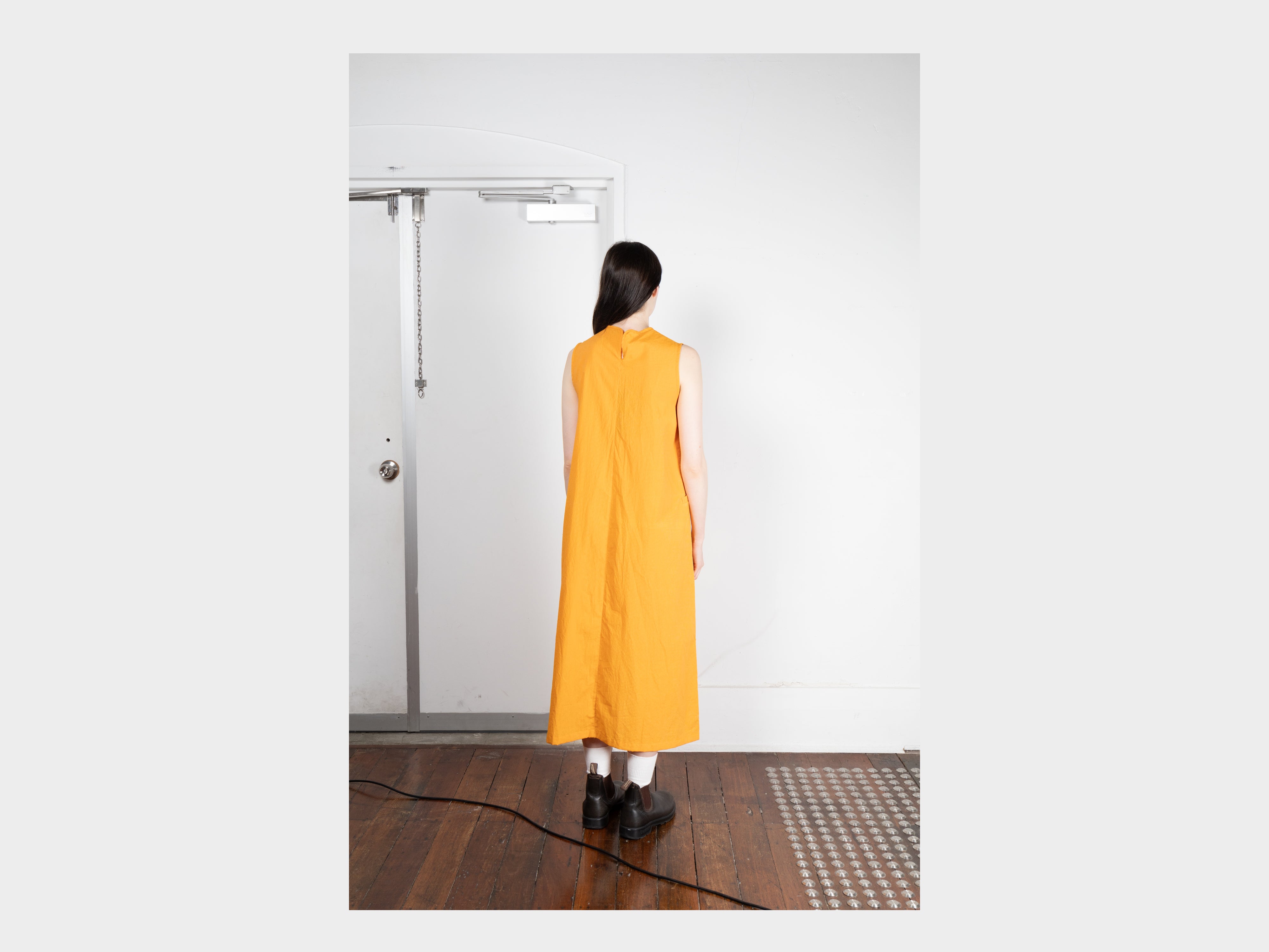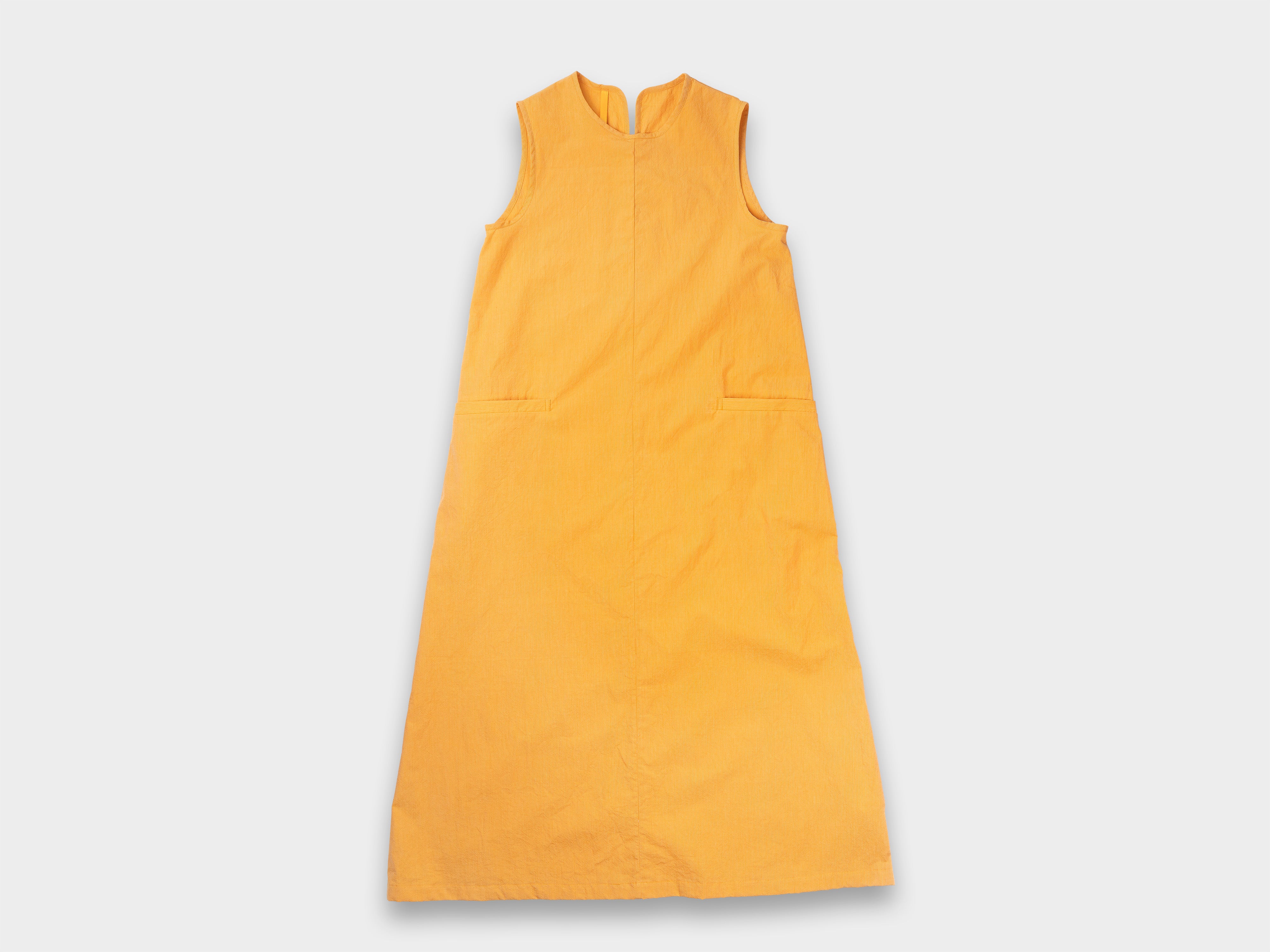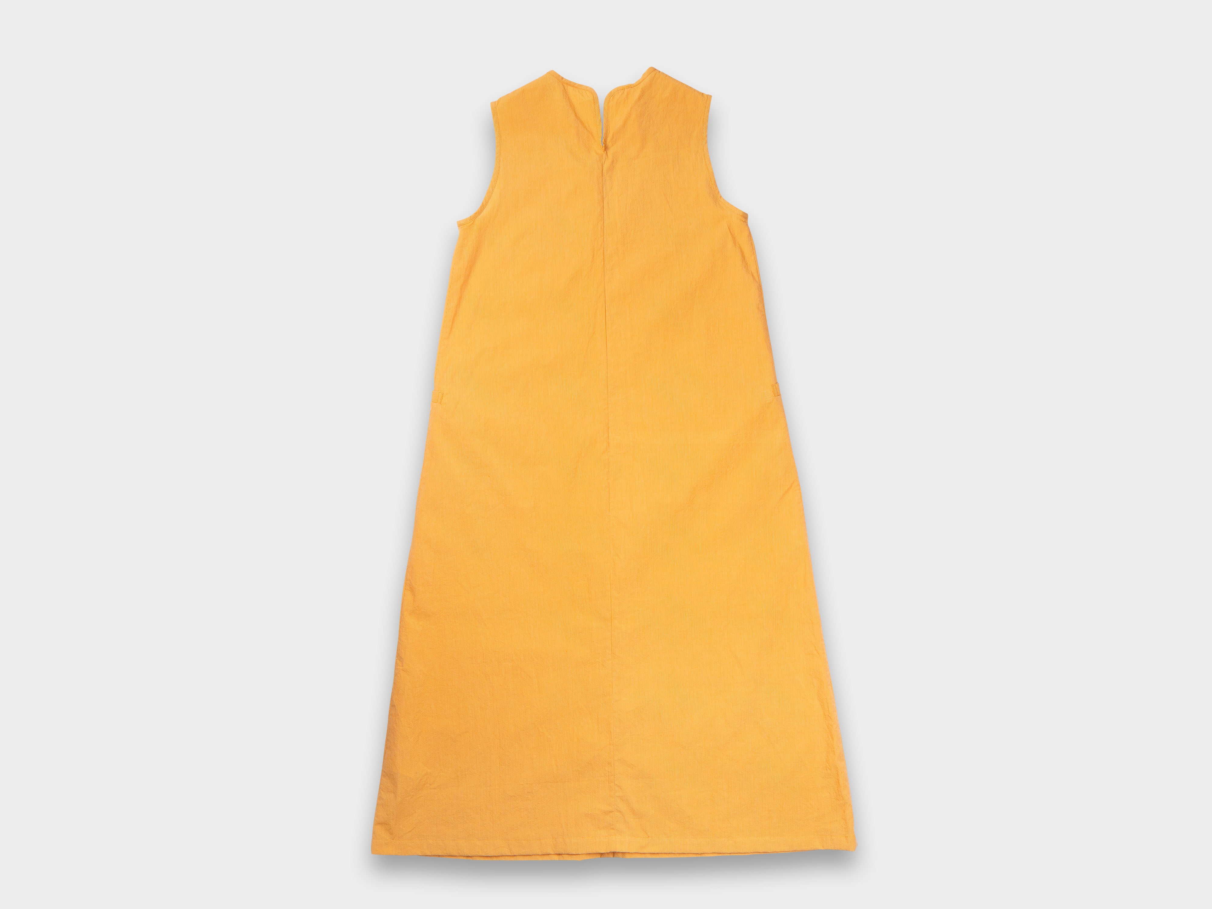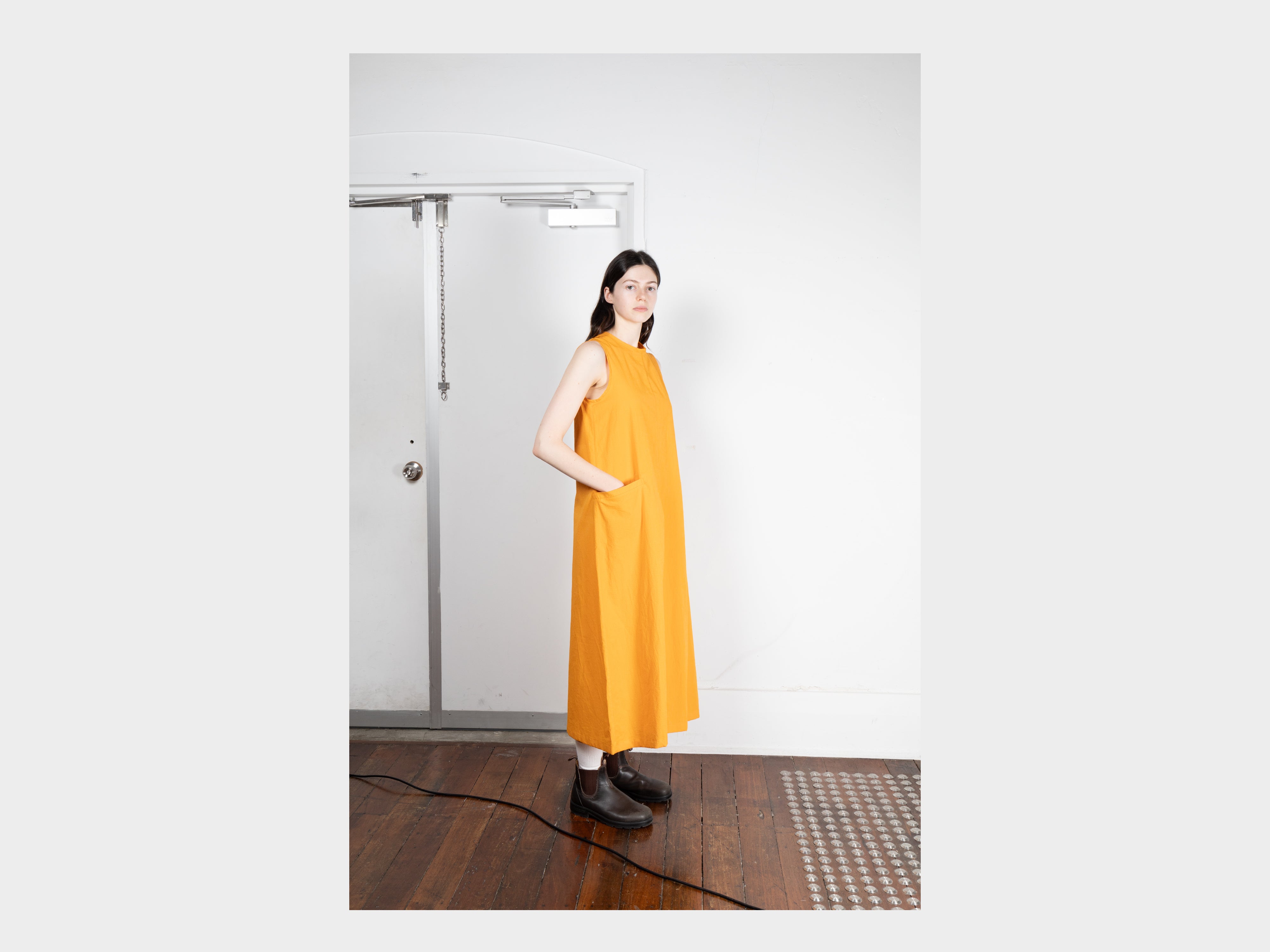 +A-line dress with a v-neckline. This special release is cut from archival fabric in our Perth studio, and exclusive to MAN–TLE. Two welted pockets at front-hip, keyhole opening at the back neckline. Made in Australia.