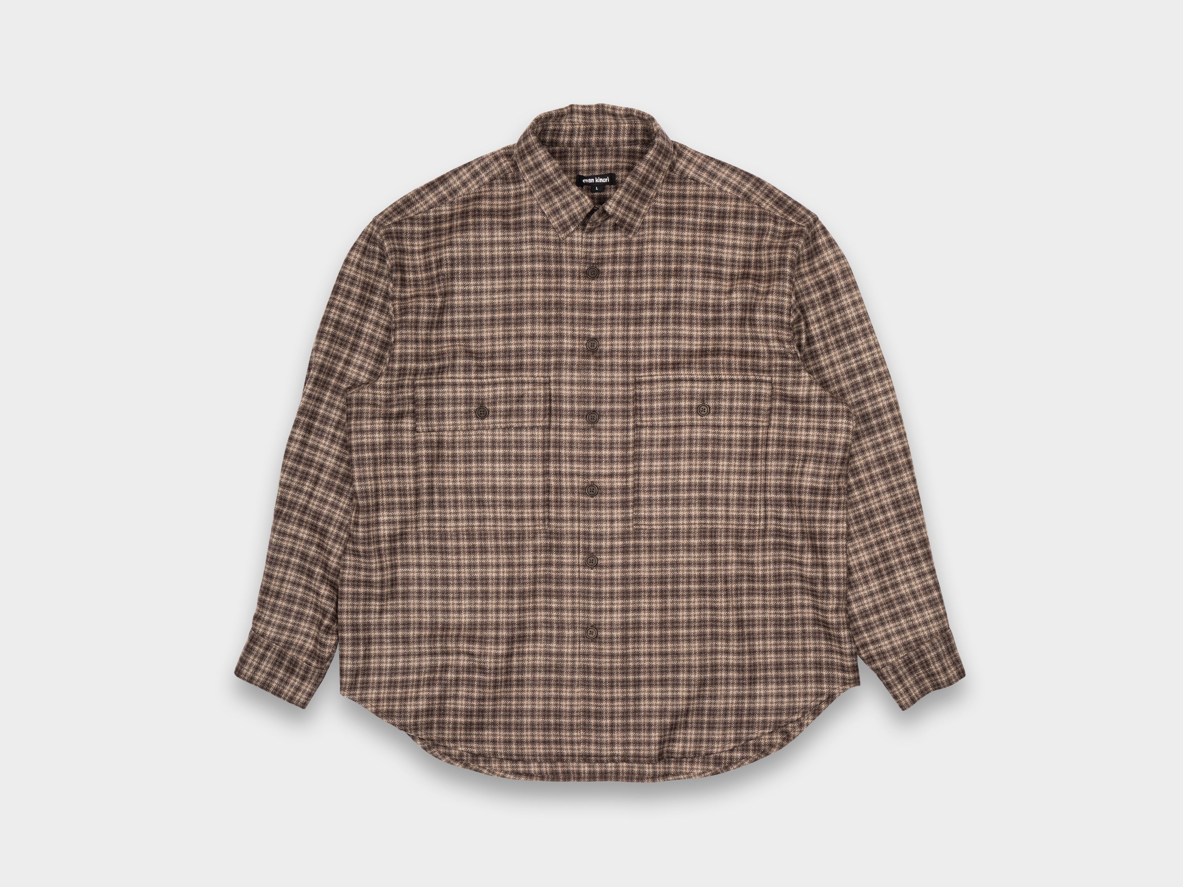• Evan Kinori Big Shirt Irish Wool Flannel Brown / Beige