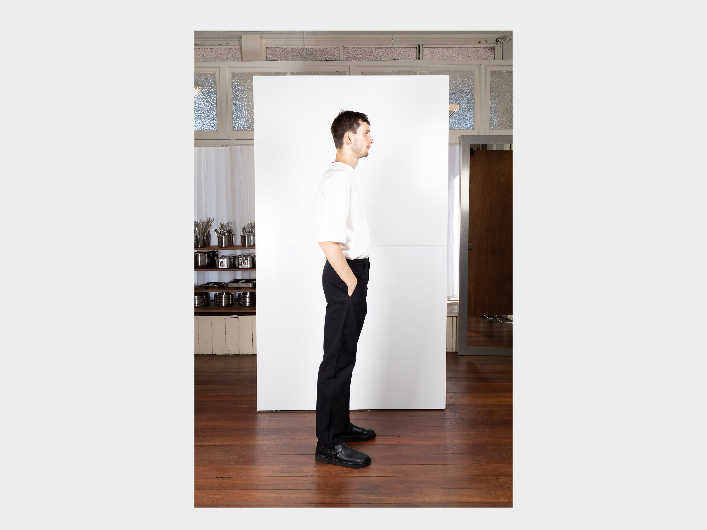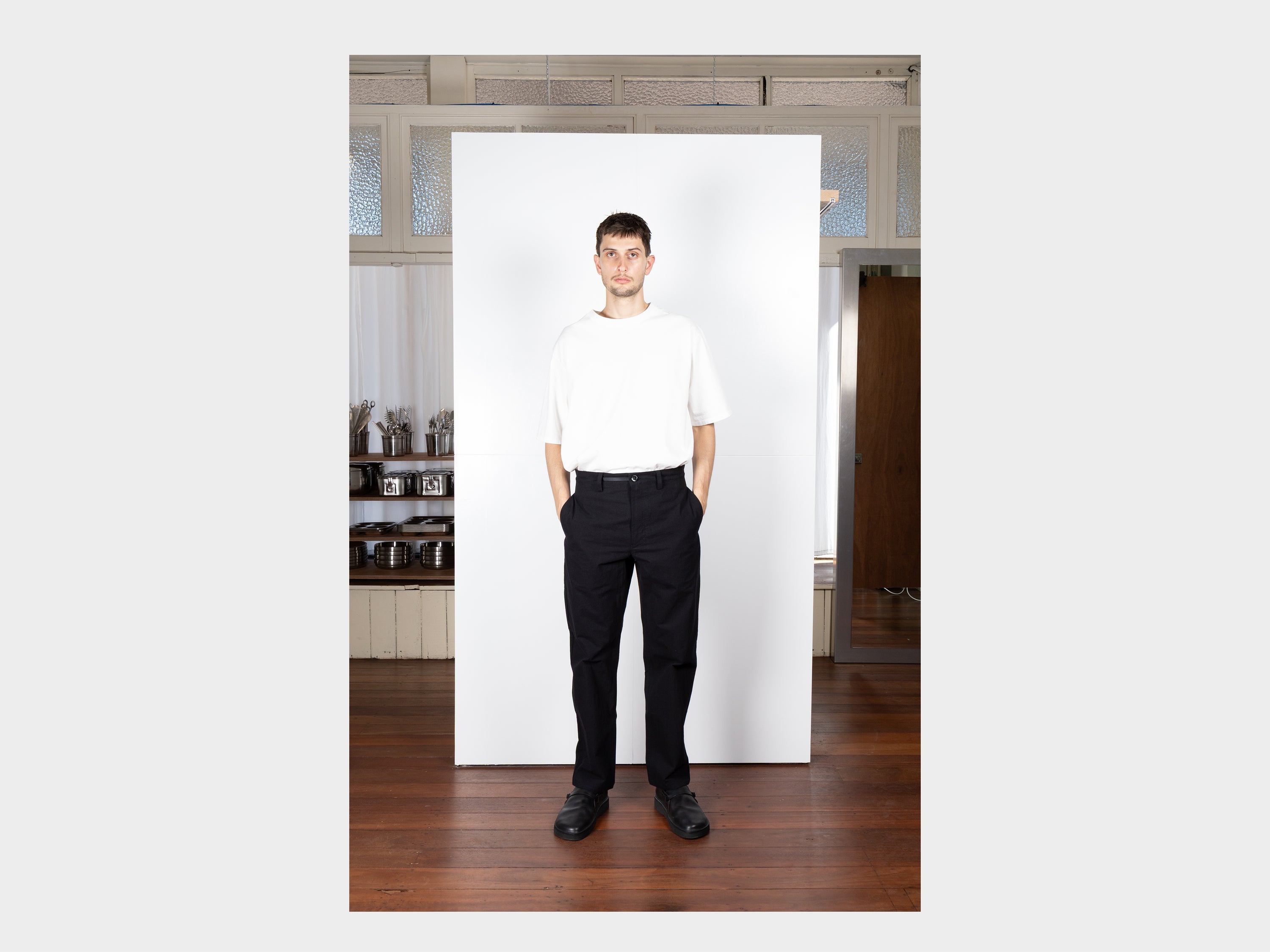 100% cotton. High-density, yarn-dyed and finished with an enzyme wash. This cloth is designed to change with time and use — with washing and wear it will evolve, becoming lighter and papery in texture. Woven in Shizuoka, Japan.