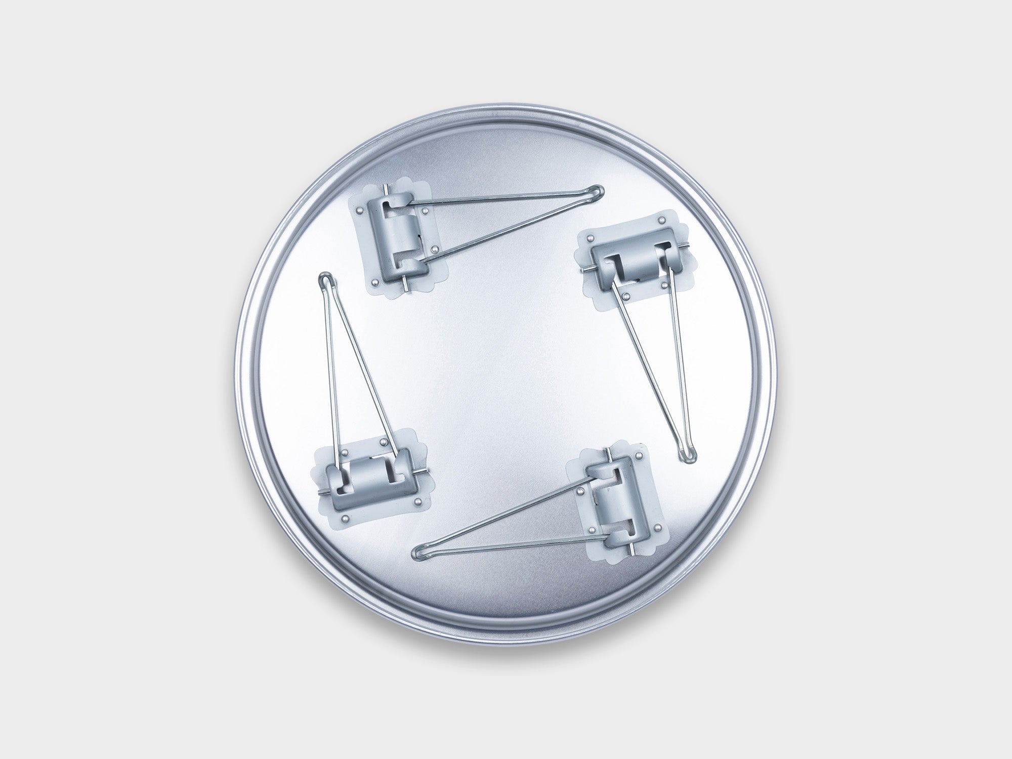 430mm dia / 195mm h [with legs extended] / 35mm h [legs folded]