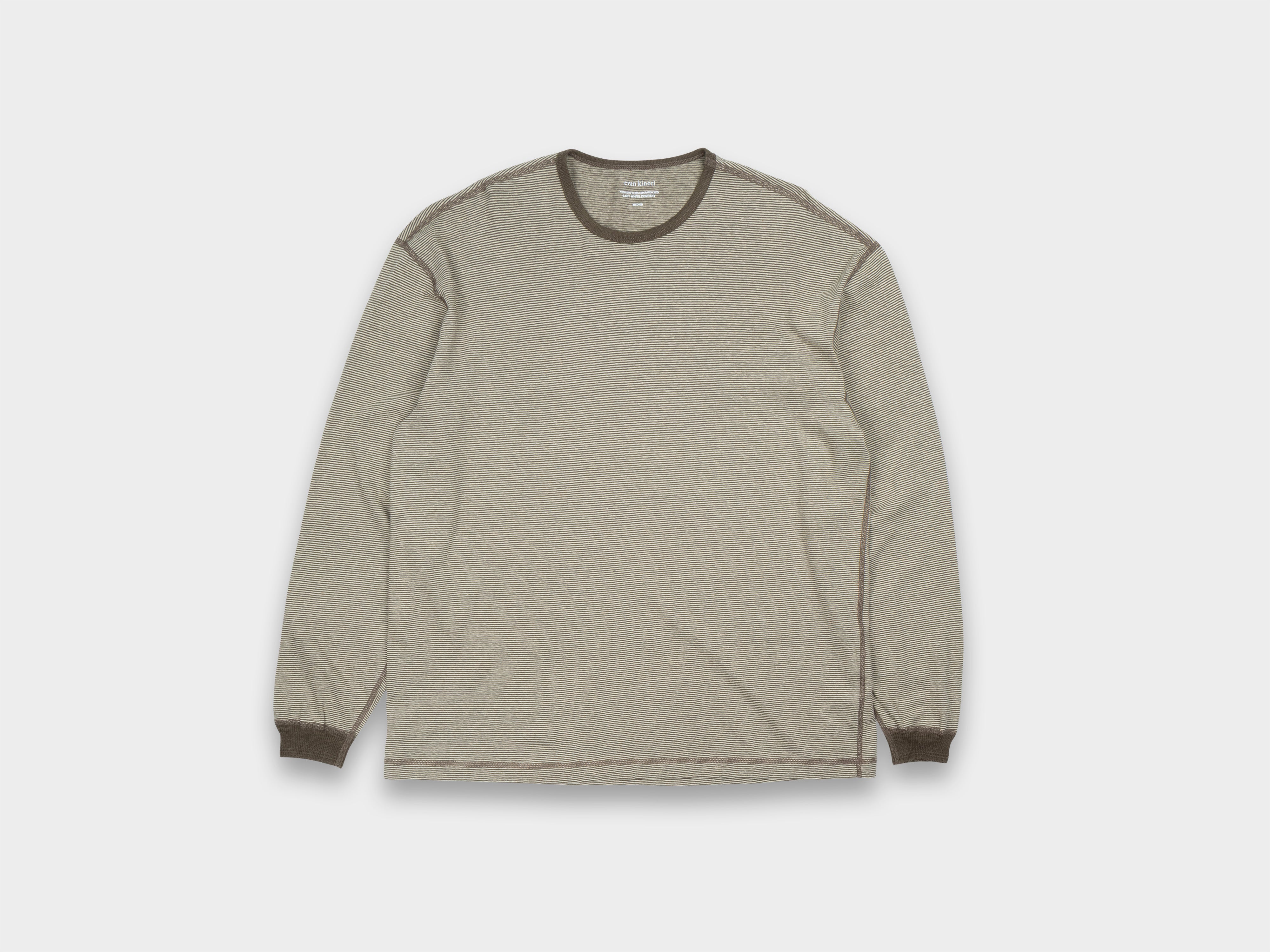 - Evan Kinori Long Sleeve Tee Striped Taupe/Natural