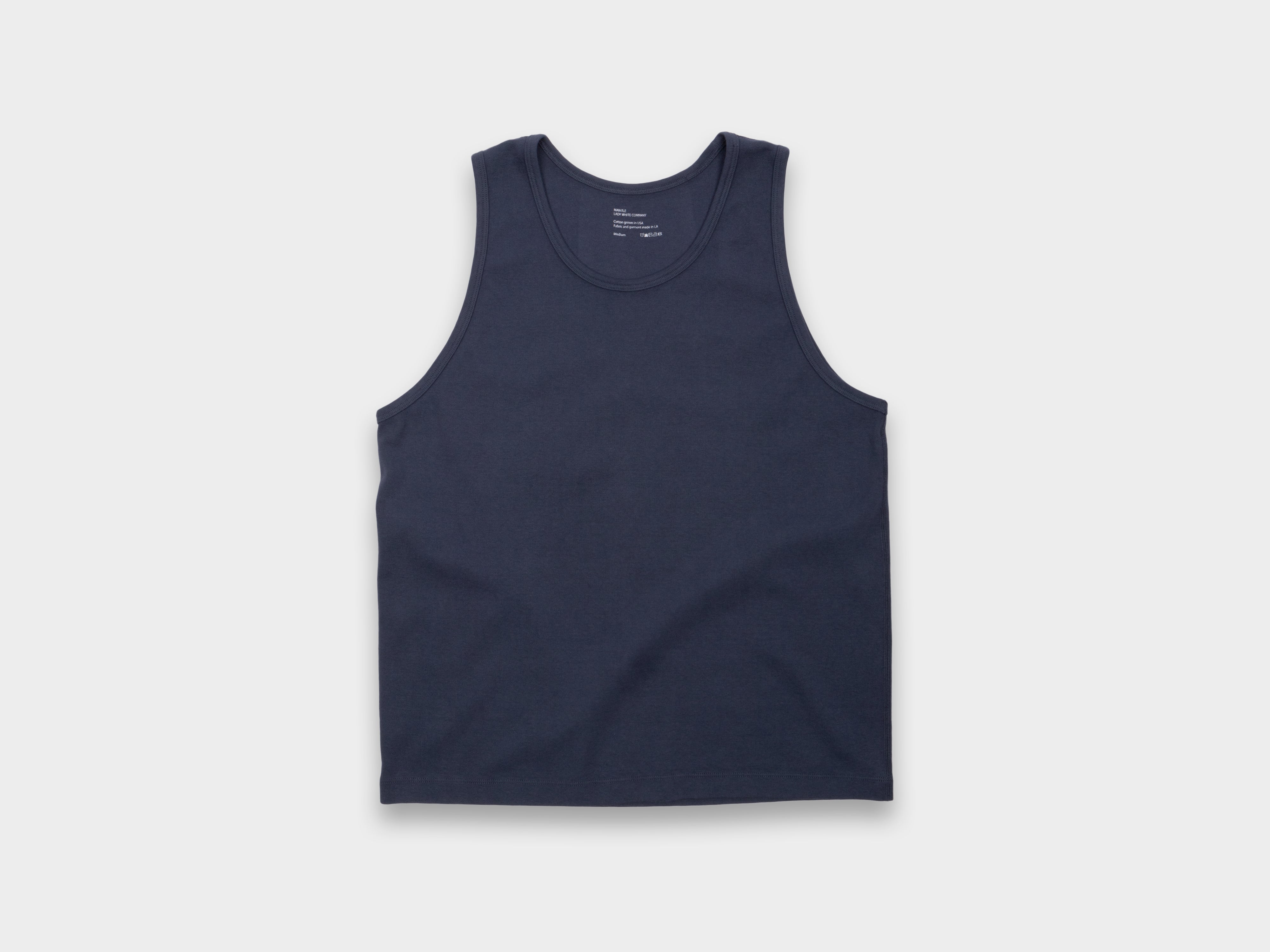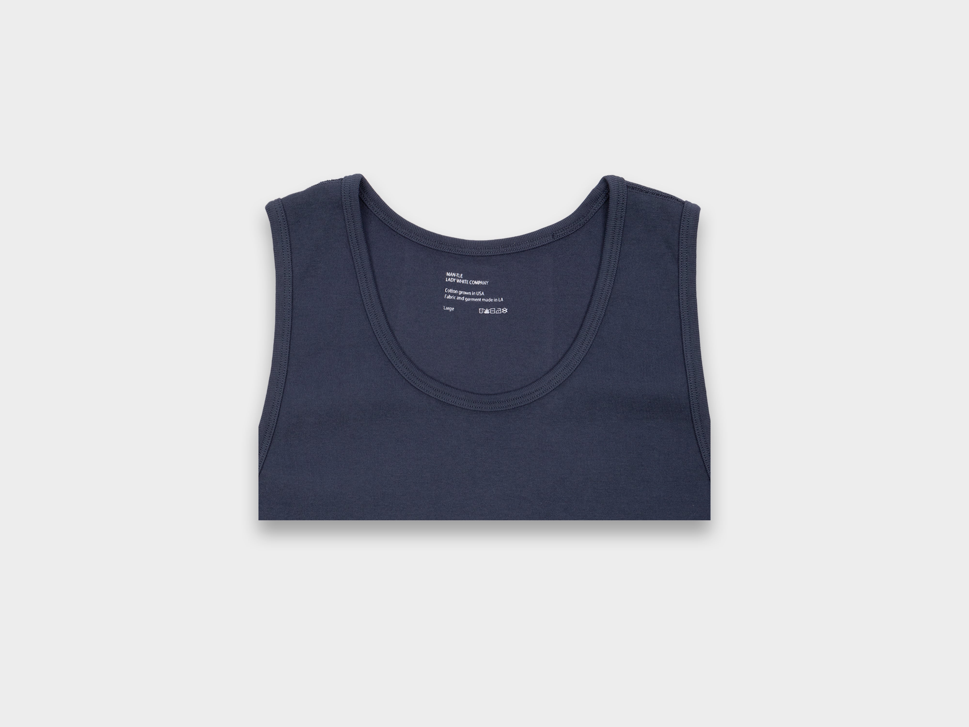 +Collaboration with Lady White Co — original, sanforized cotton-rib singlets. Reverse flatlock seams, butterfly-bound finish on the neckline. Comfortably layered with MAN-TLE shirts and outerwear. Dyed and knitted in Los Angeles using combed, ring-spun American cotton yarn.