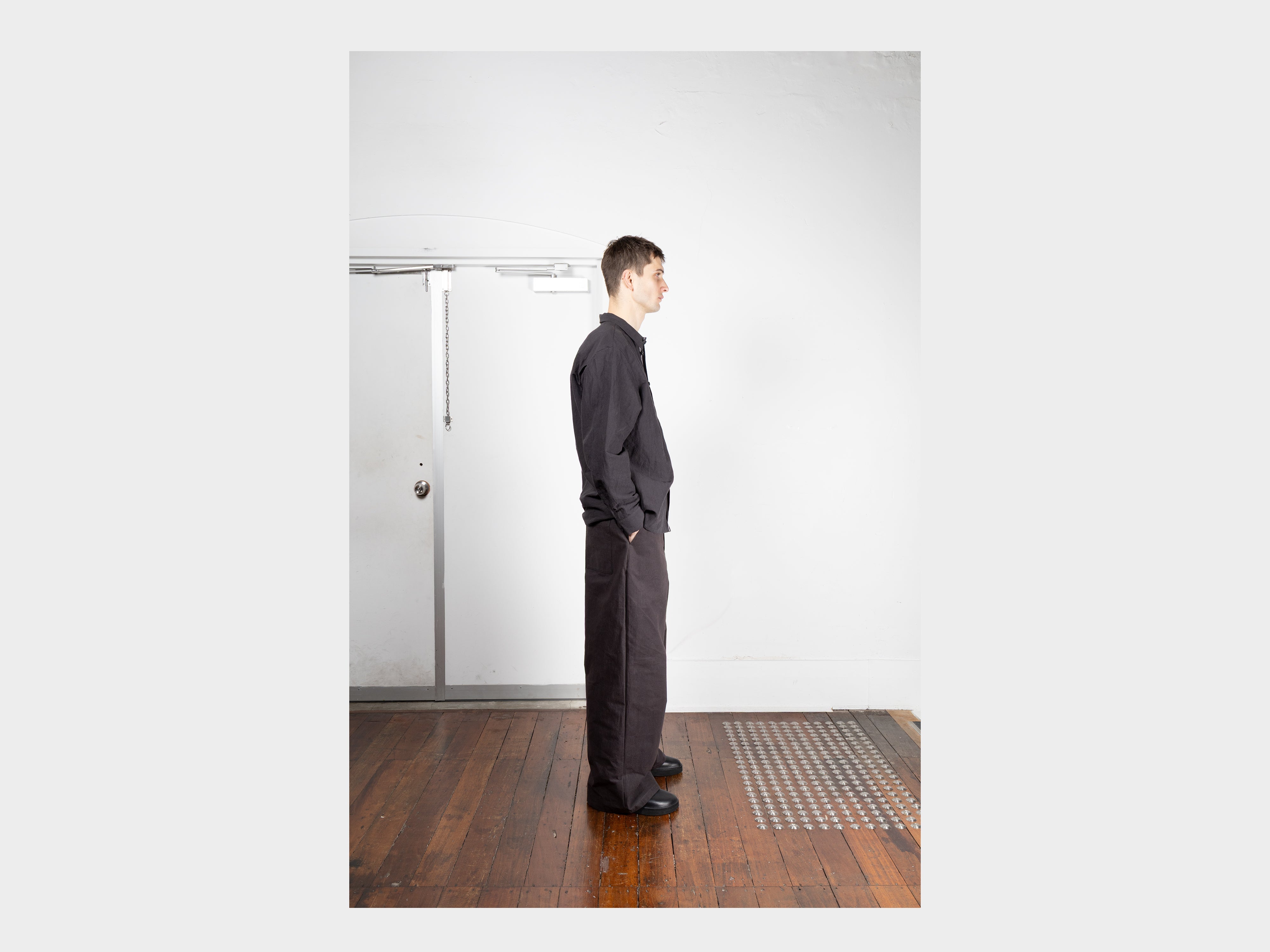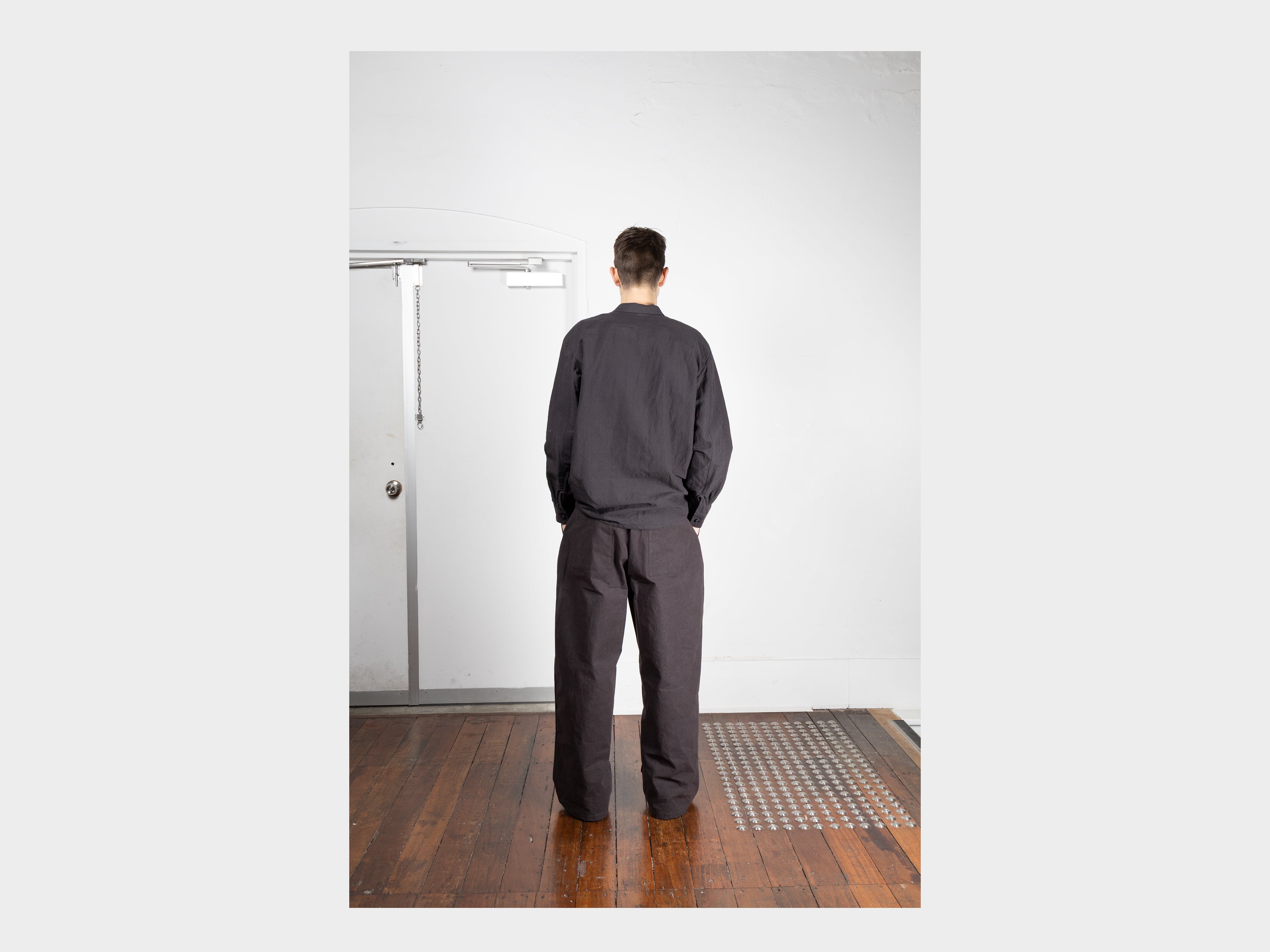 +60% cotton / 40% linen. Cotton grown in the USA, flax grown and spun into high-twist linen in China. High-density and midweight with a dry handle, this cloth is naturally stiff and lifts from the skin, allowing breathability. With washing and wear it becomes softer and lighter, suitable for year-round wear and best enjoyed in the warmer months. Woven for MAN–TLE in Shizuoka, Japan.