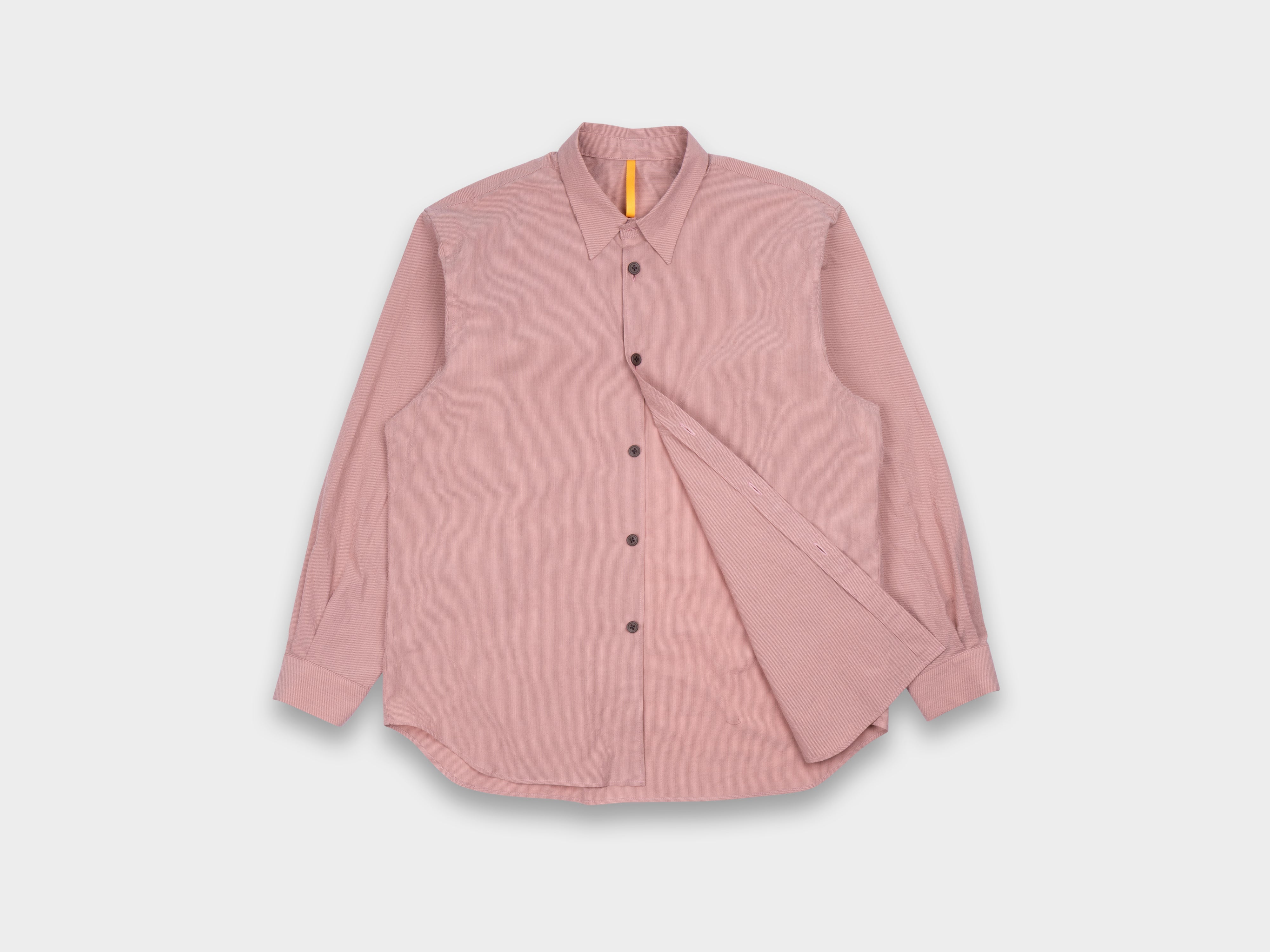 +100% cotton. Yarn-dyed and woven at high density with varied yarn thicknesses to create fine, ribbed wales. Lightweight with a dry handle, the cloth develops a crisp, papery texture with washing and wear. Naturally stiff, it lifts from the skin to allow breathability, and is best enjoyed in the summer months. Woven for MAN–TLE in Shizouka, Japan.