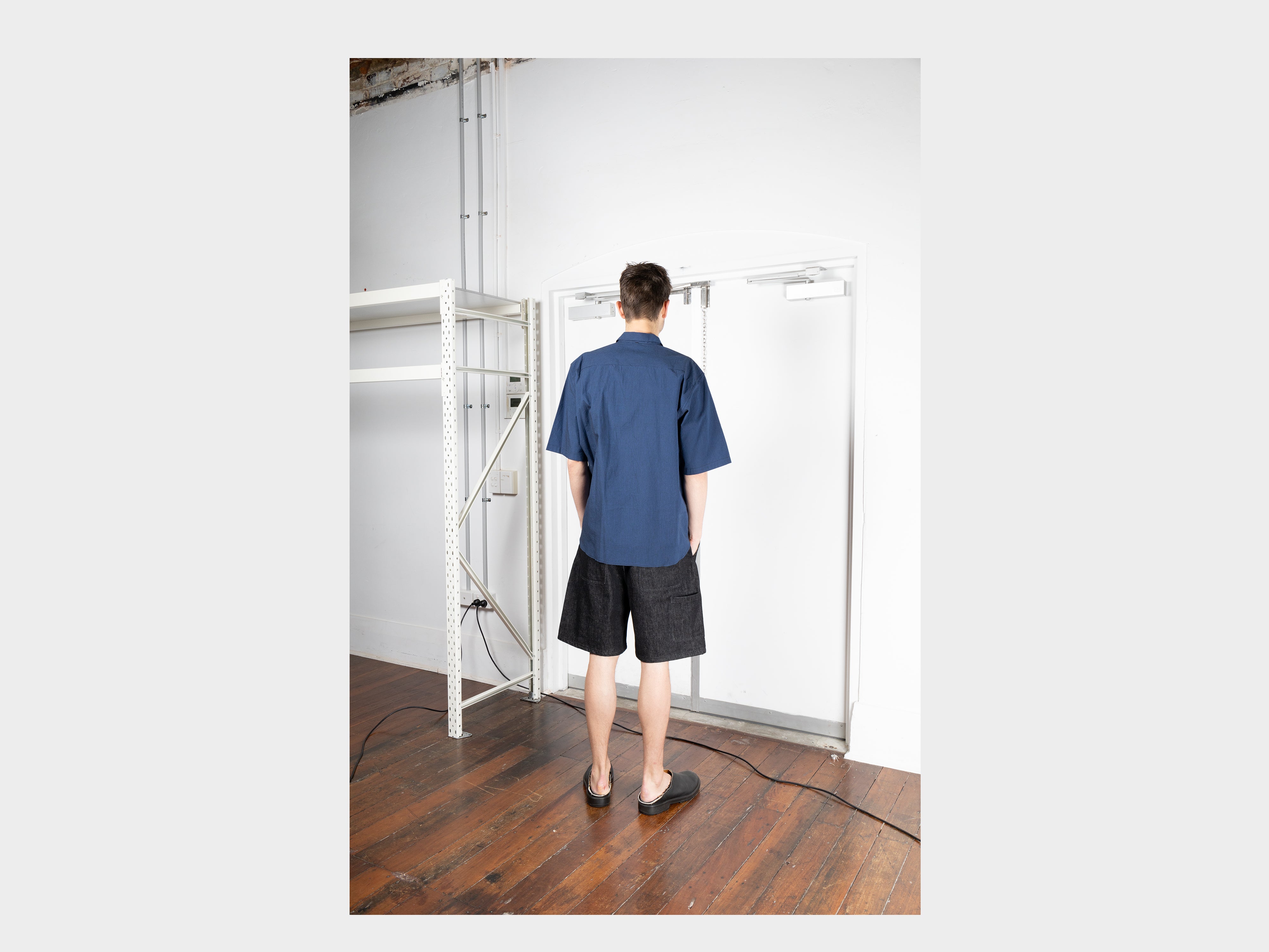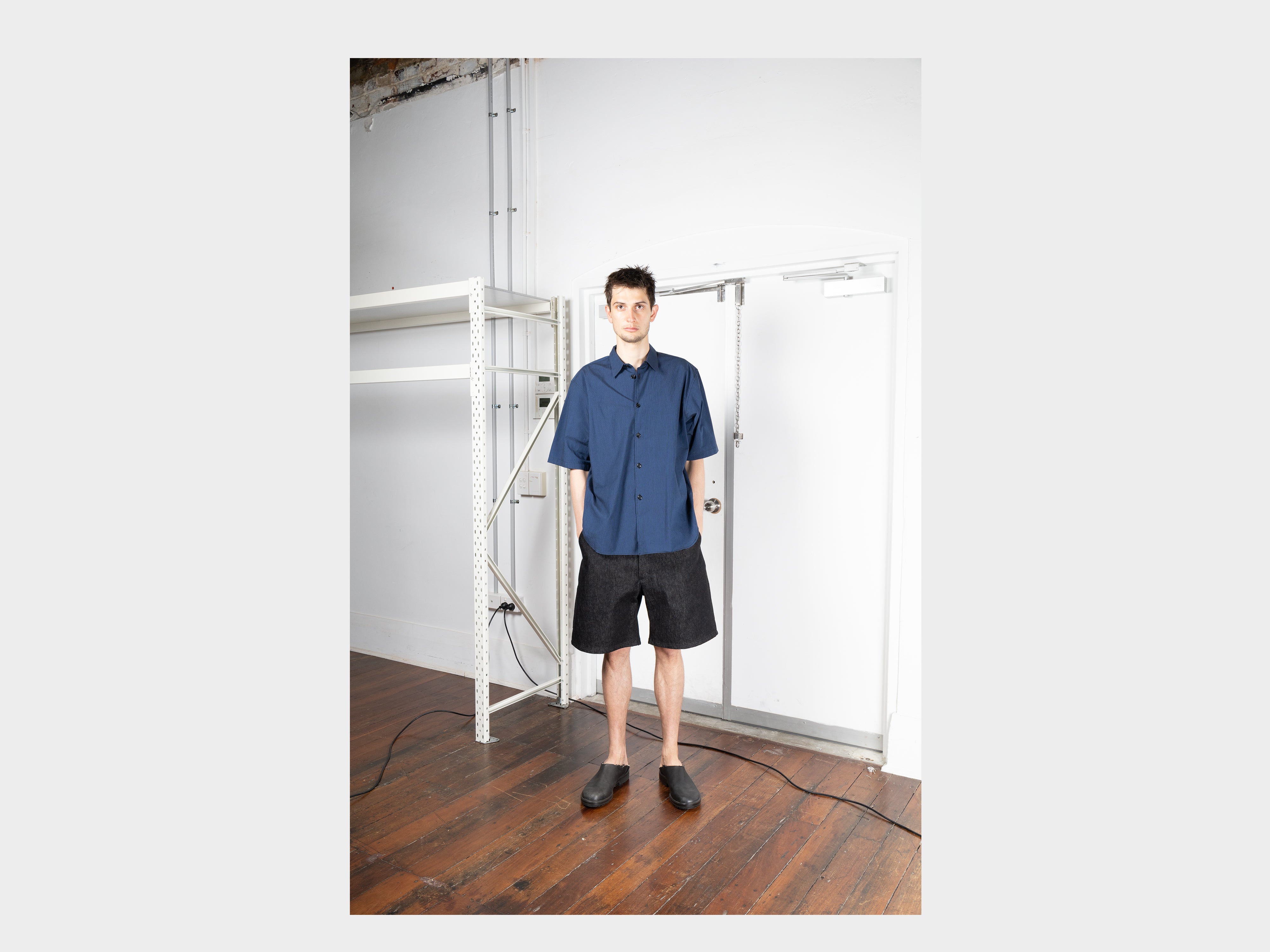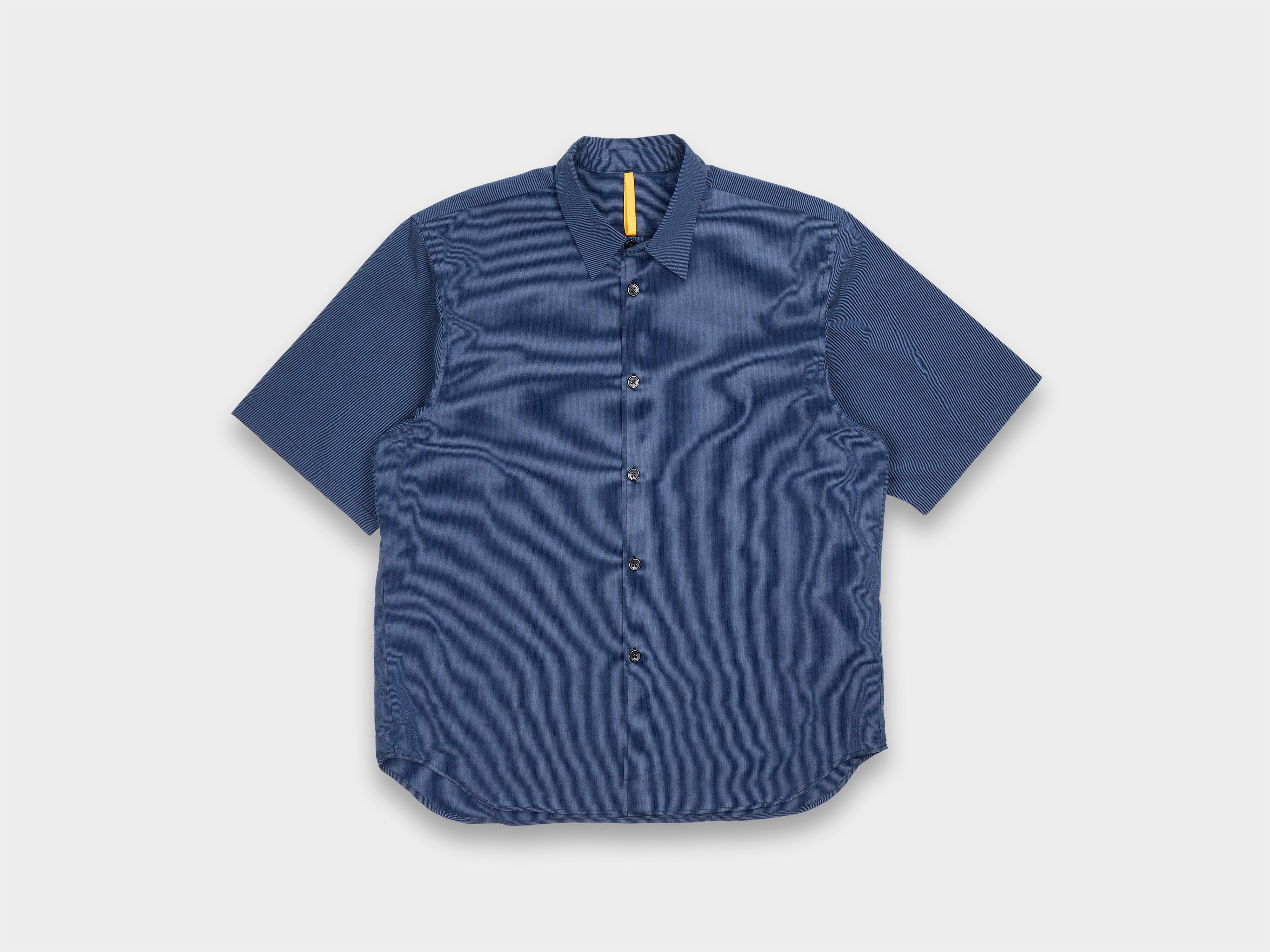 +Loose-fitting short sleeve shirt. Slightly dropped shoulders, relaxed sleeves, pointed collar, button front, curved hem. This special release is cut from archival fabric and exclusive to MAN–TLE. Made in Japan.