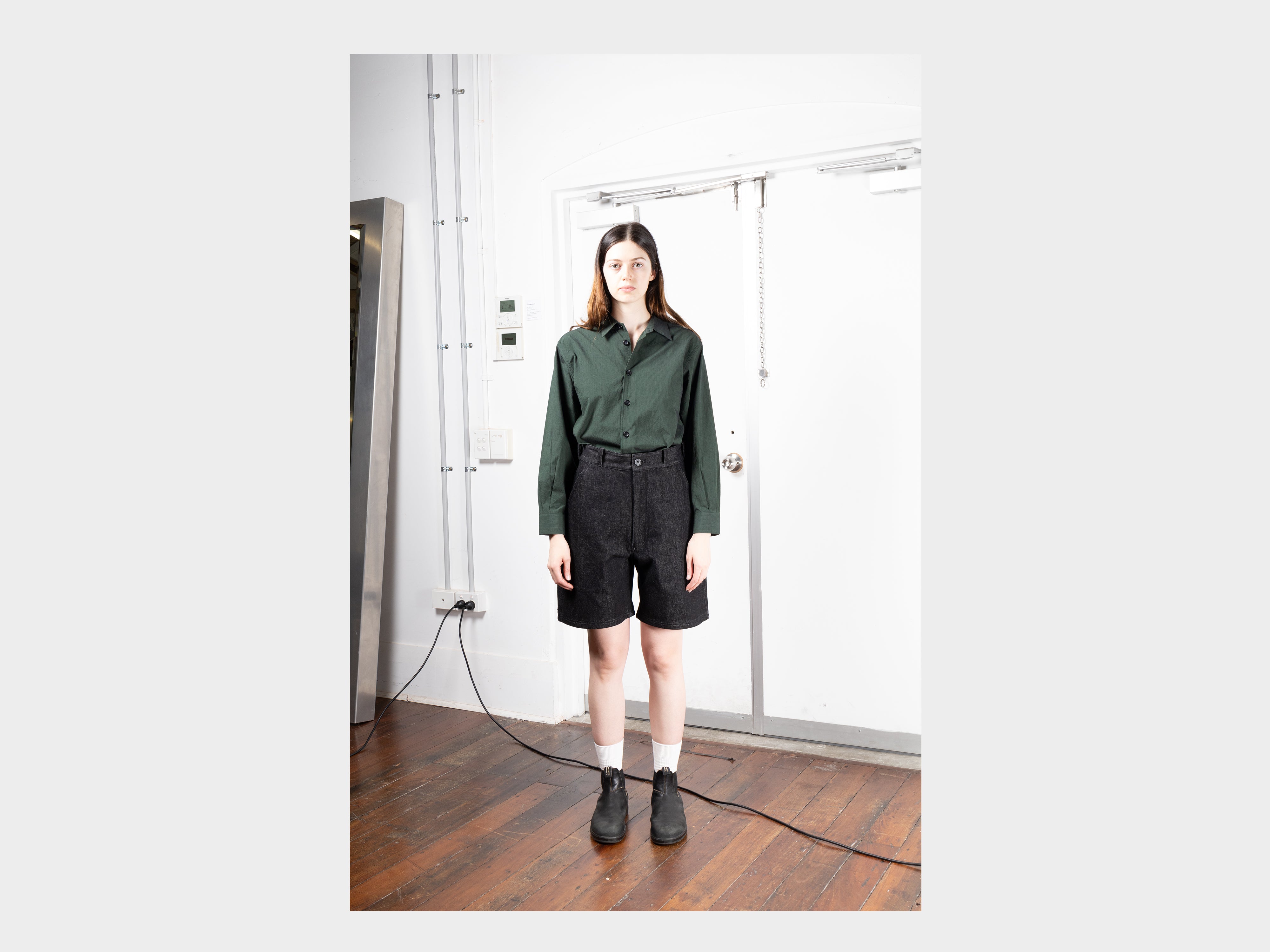 +Work shorts suitable for industry. Wide cut with generous room in the crotch and thigh for ease of movement. Deep side-seam pockets, one with internal pocket. Large back patch pockets, single utility patch pocket at thigh. Double-stitch welted seams. Made in Japan.