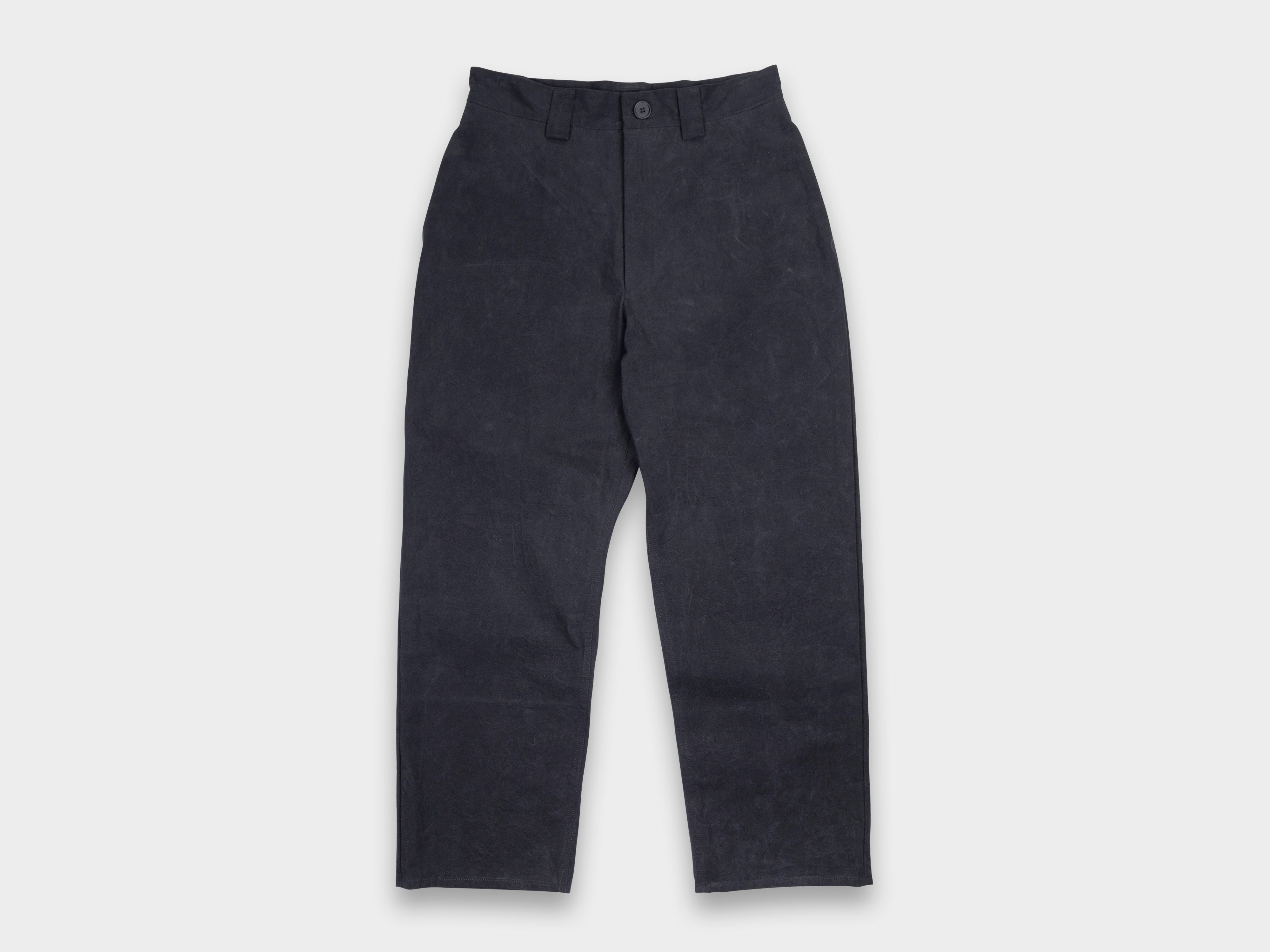 +100% cotton with a paraffin wax coating. Yarn-dyed, high-density and heavyweight, this cloth will develop character over time. With washing and wear it will fade, soften, and irregularities in the cloth may form. Woven for MAN-TLE in Shizuoka, Japan.
