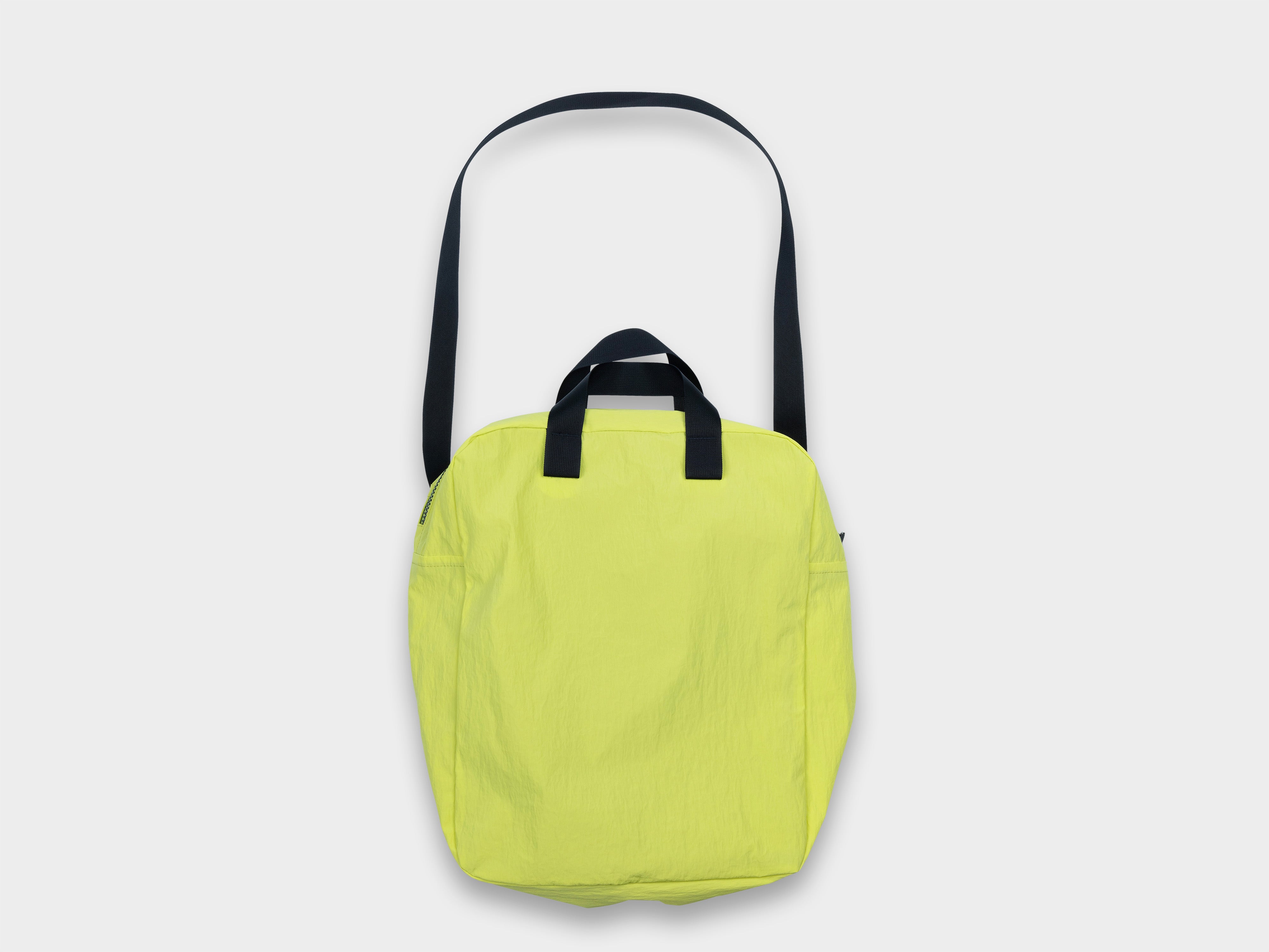 +Multi-handle tote with enlarged zip closure. Long shoulder strap designed to be worn crossbody. Made in Japan.