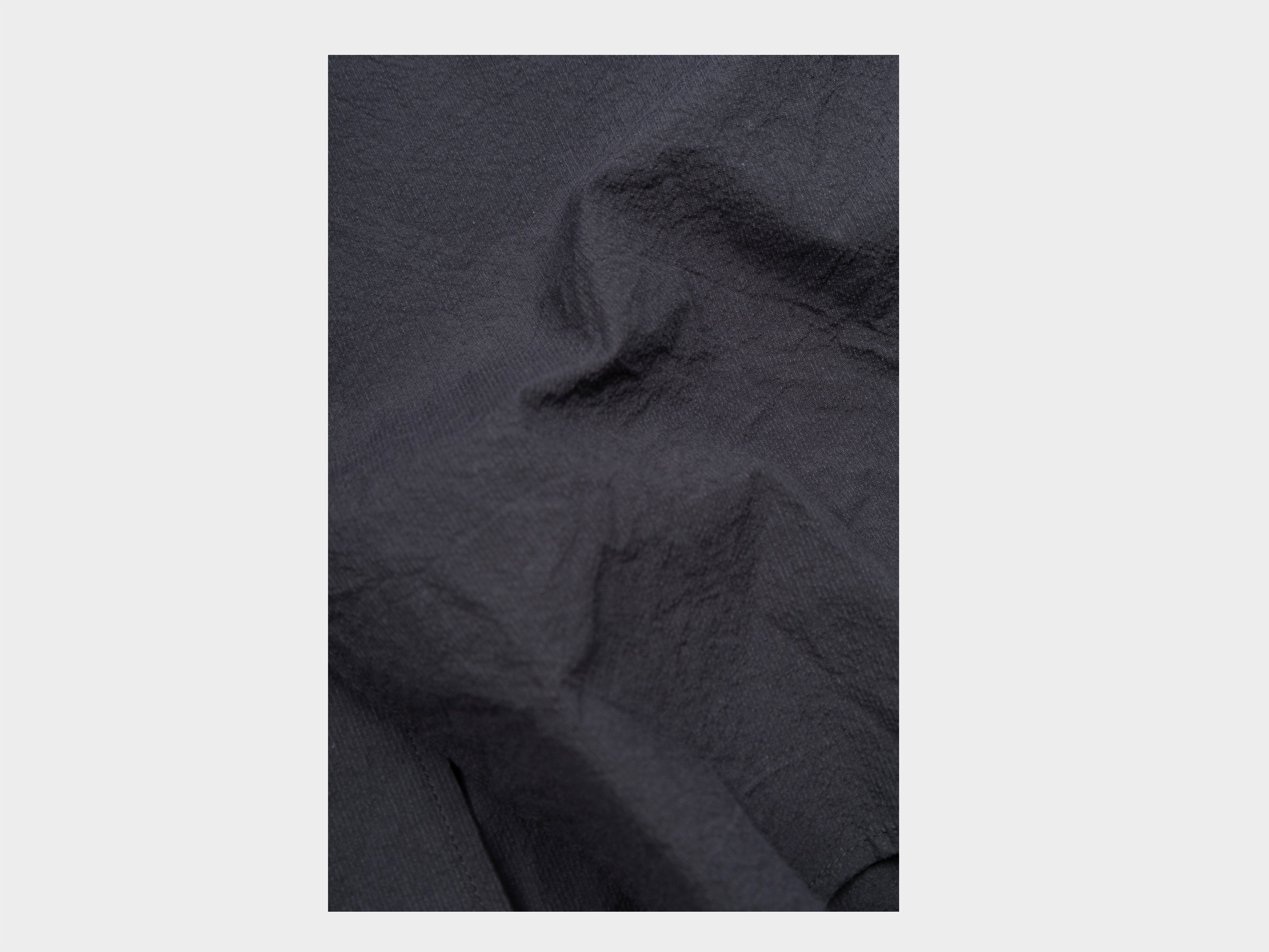 +100% cotton cordlane. Lightweight cloth woven with varied yarn thicknesses to create textural wales. With washing and wear this cloth will become lighter and papery. Made for MAN-TLE on a wooden shuttle loom in Shizuoka, Japan.