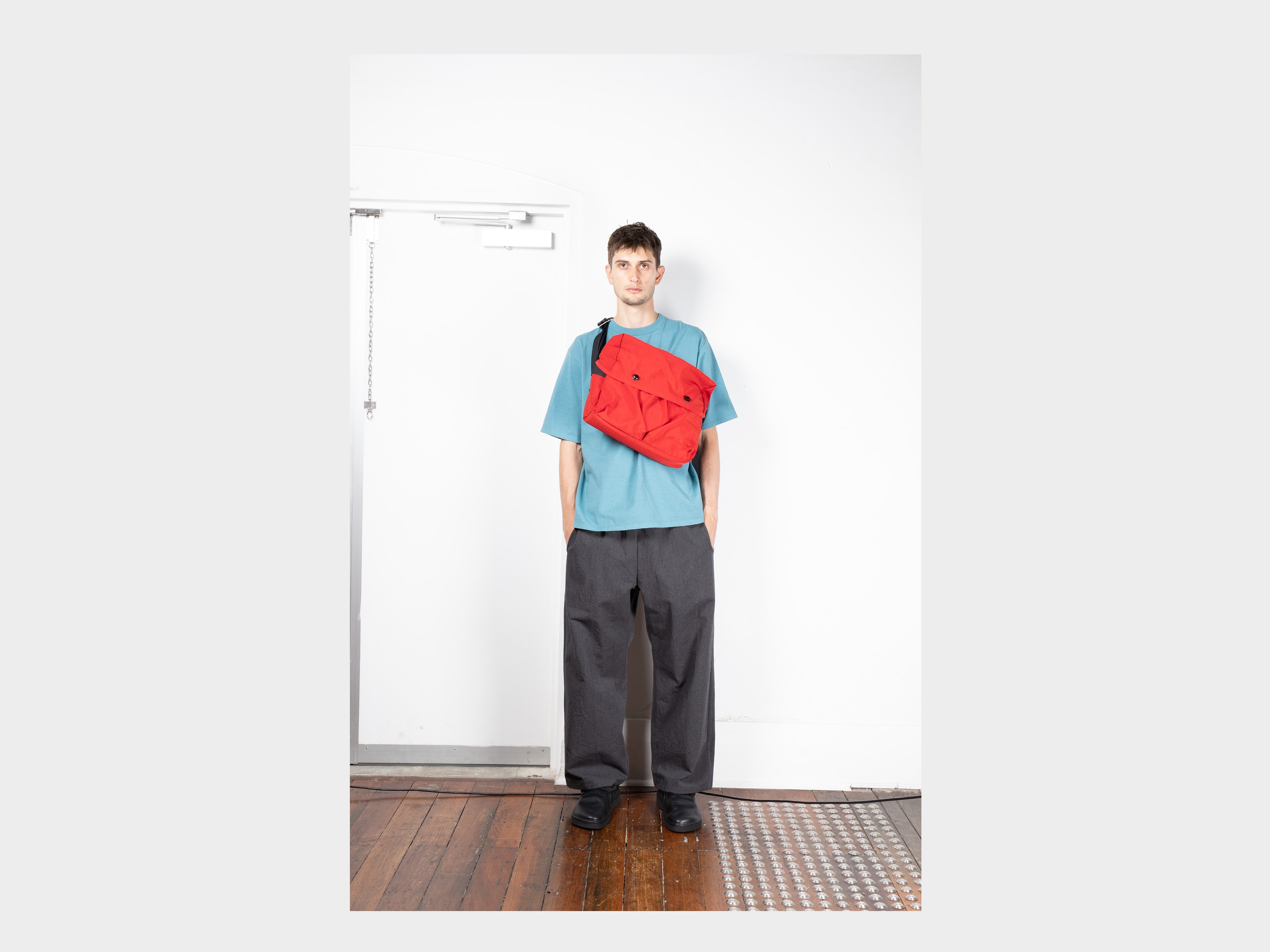 Compact version of our G2 Messenger, designed at half the size. Made in collaboration with designer Rikiya Matsumura, based on a Royal Mail delivery bag. Spacious main compartment with internal padded laptop sleeve, front bellow pockets, and a high-density strap with a shoulder pad. Features MAN–TLE signature hardware — coated brass snap closure made for MAN–TLE in Germany, and a Jotun powder-coated aluminum strap slider, laser-cut for MAN–TLE in Australia. Bag made in Japan.
