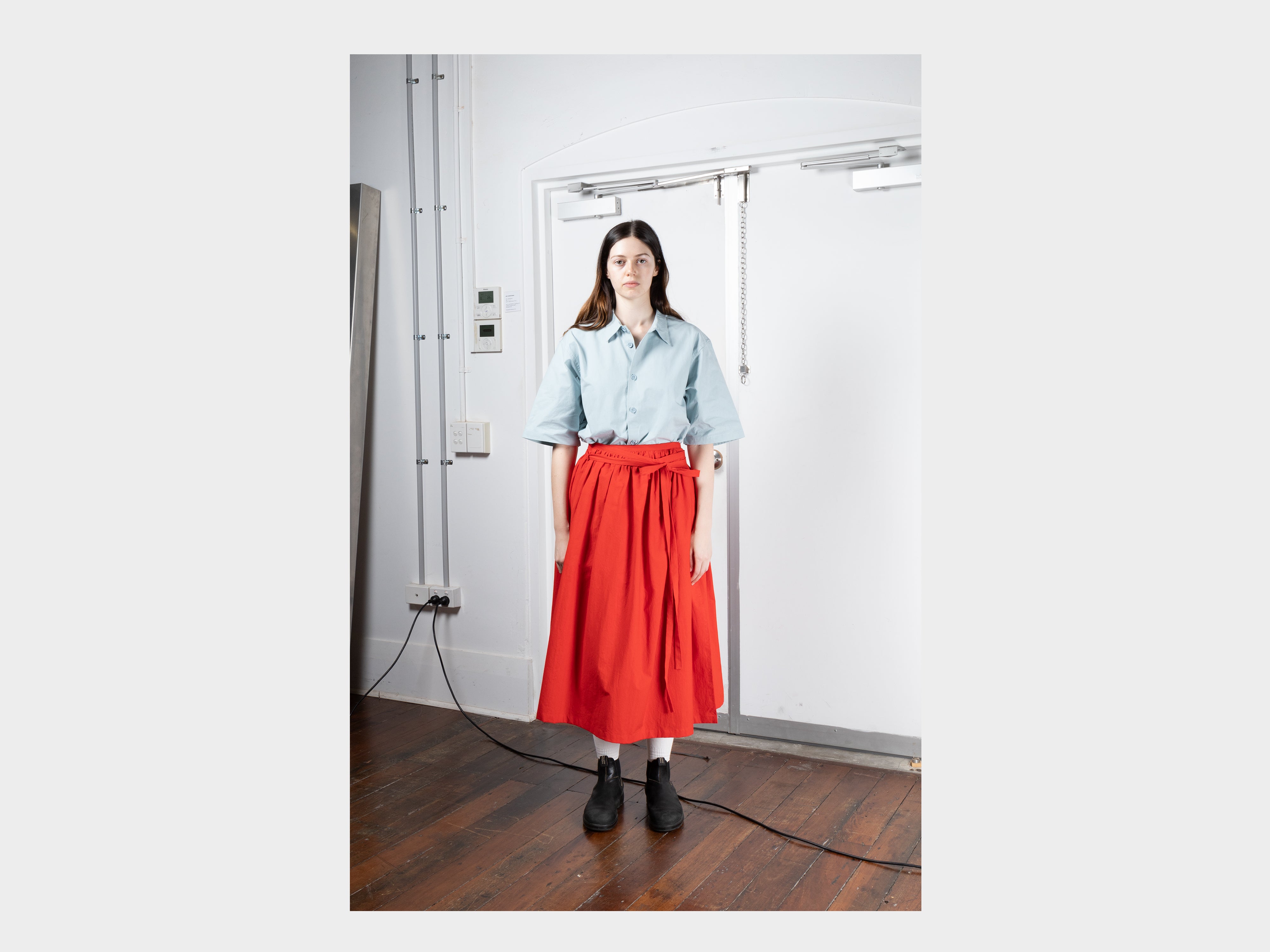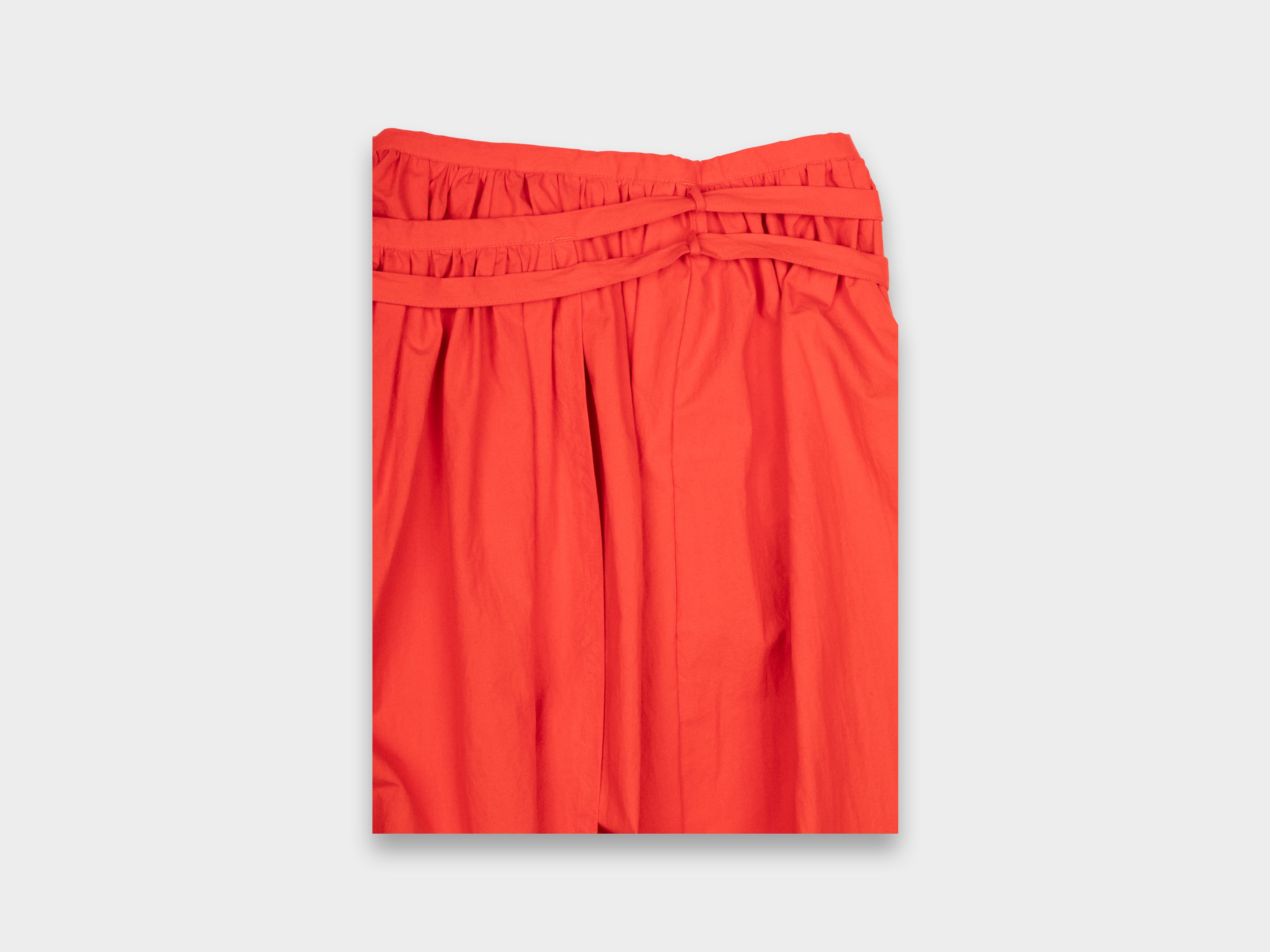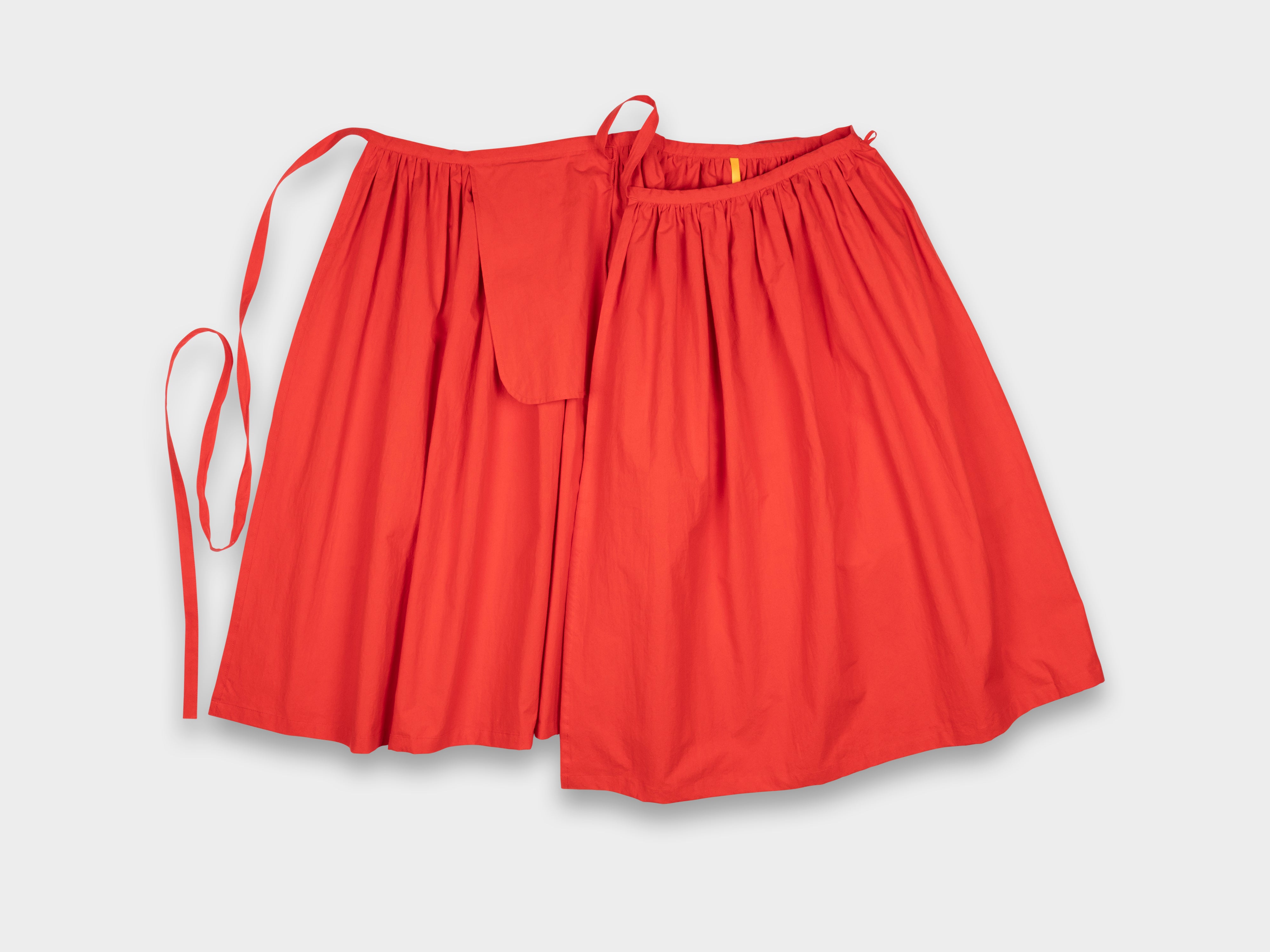 +Voluminous gathered wrap skirt. This special release is cut from archival fabric and exclusive to MAN–TLE. Single side-seam pocket, belt loops, long ties that can be worn multiple ways. Based on a traditional Korean Hanbok skirt. Made in Japan.
