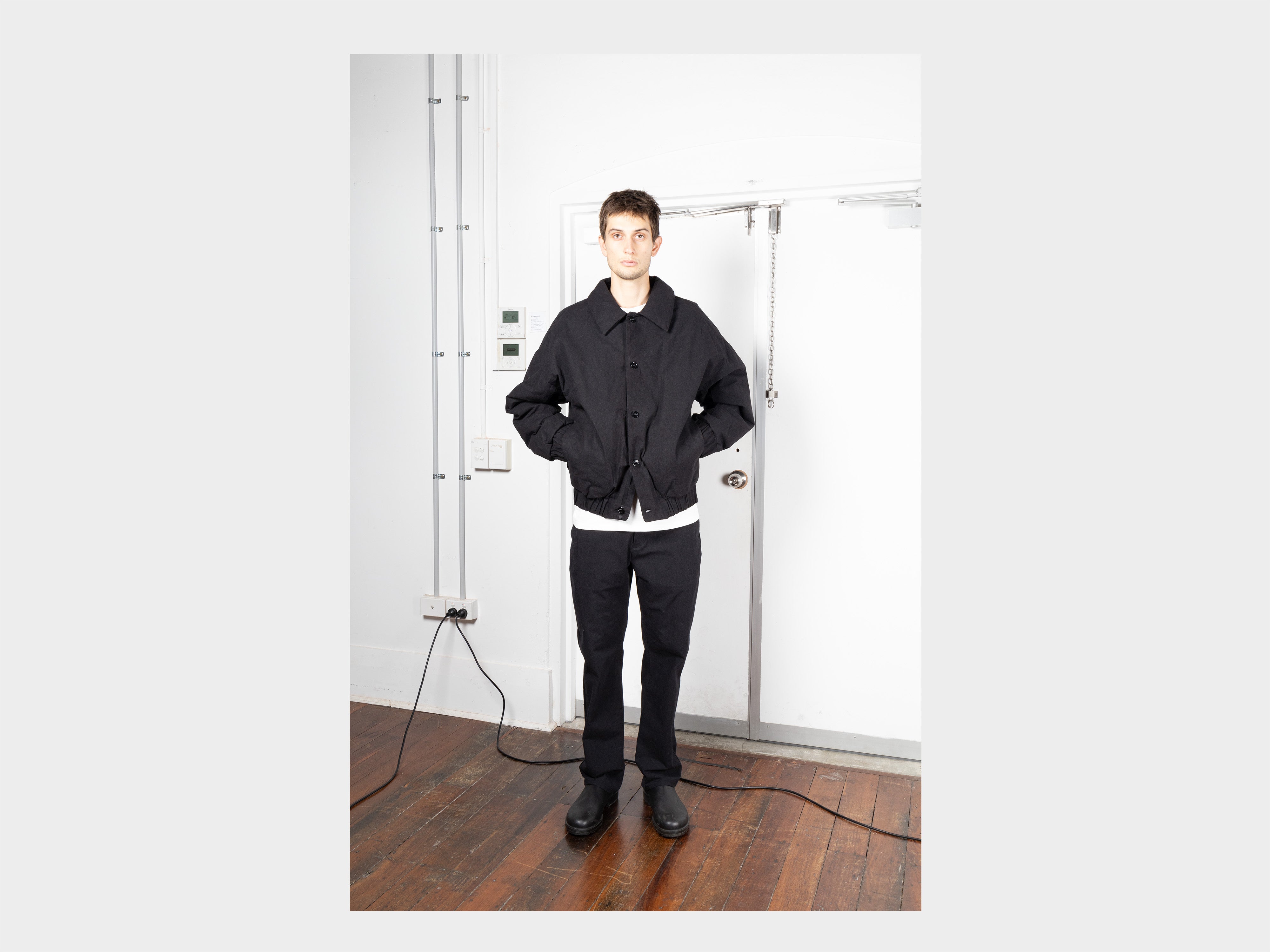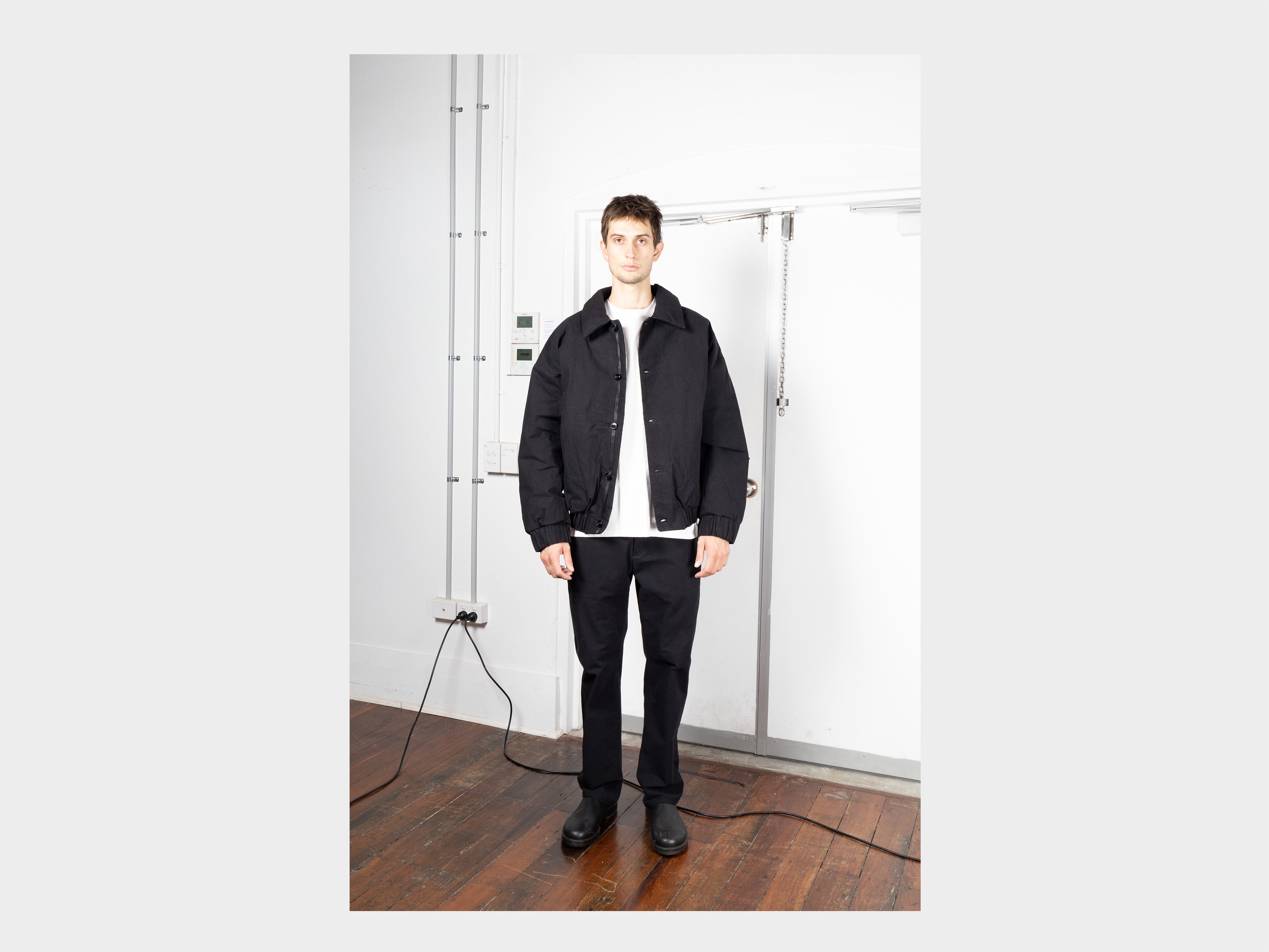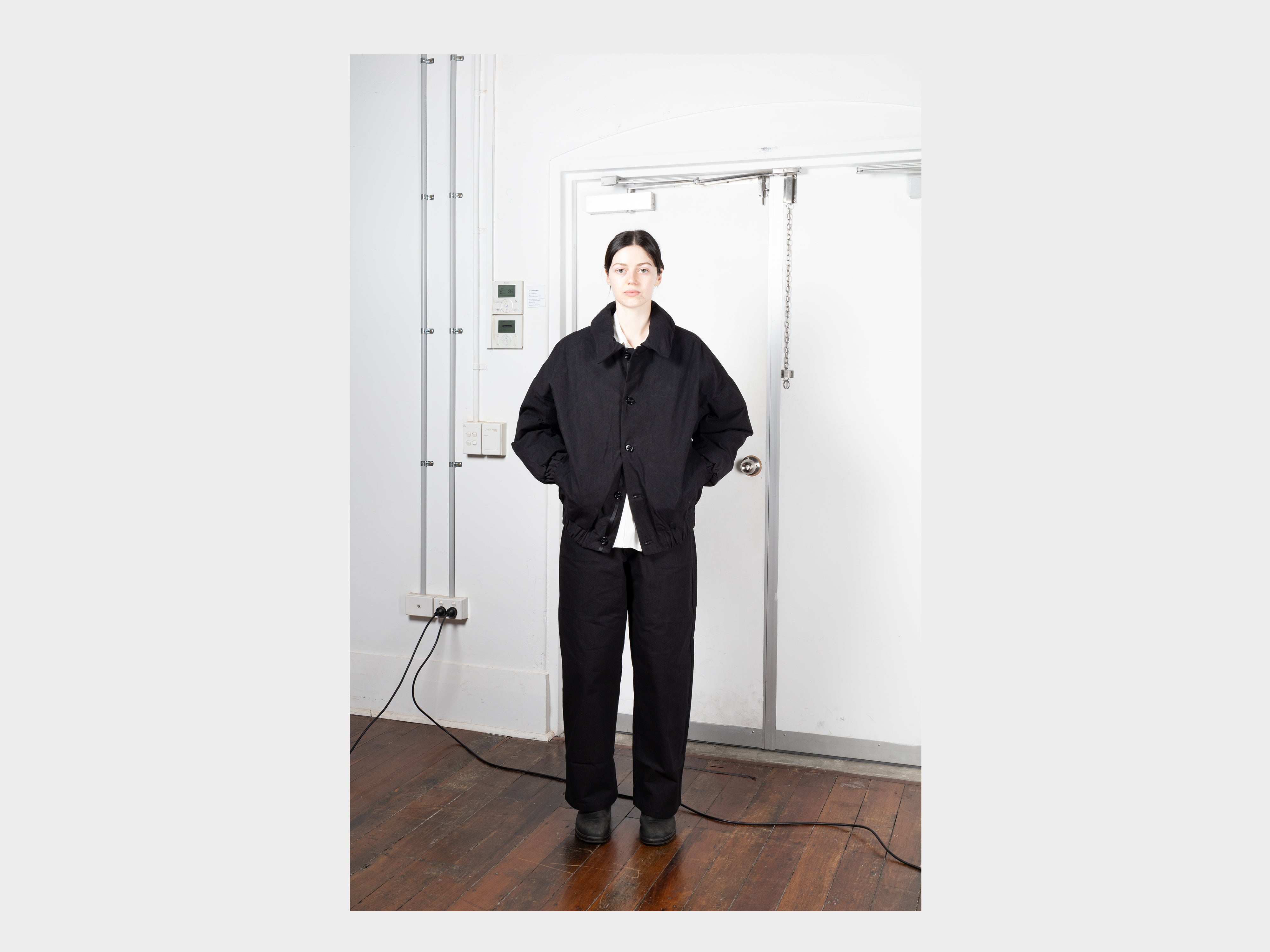 Oversized down-filled blouson. Features ethically farmed European silver goose down, cleaned and processed in Japan by Kawada Feather. This down retains its original mottled colour, as no bleach is used. To showcase its unique tone, the garment is lined with a transparent 100% nylon micro-ripstop developed by Toray. Comprising 90% down and 10% feather to reduce clumping, this product has a fill-power rating of 850. Slot buttons threaded onto seat belt tape, dropped shoulders, elastic cuffs and hem, generous sleeve and body. Read our Kawada Feather story here. Made in Japan.