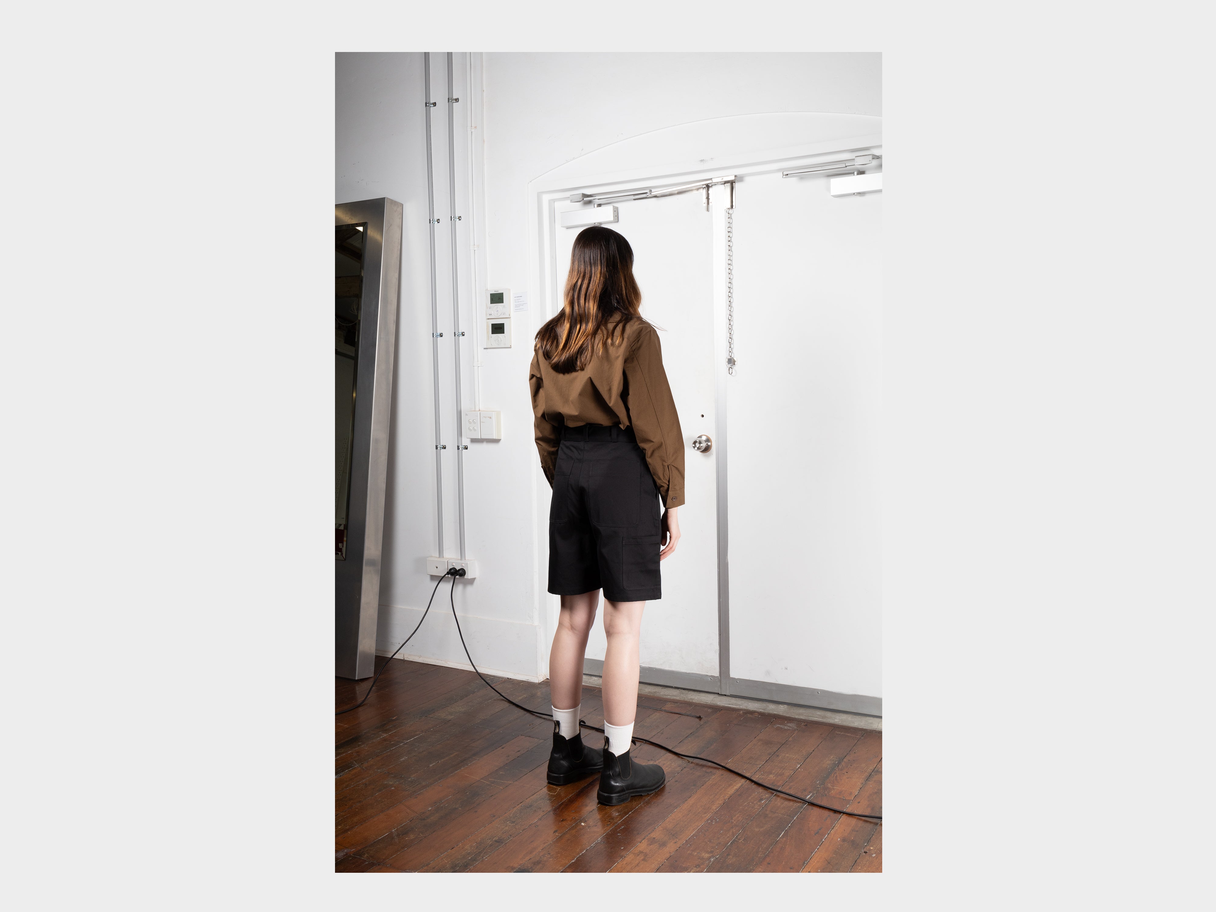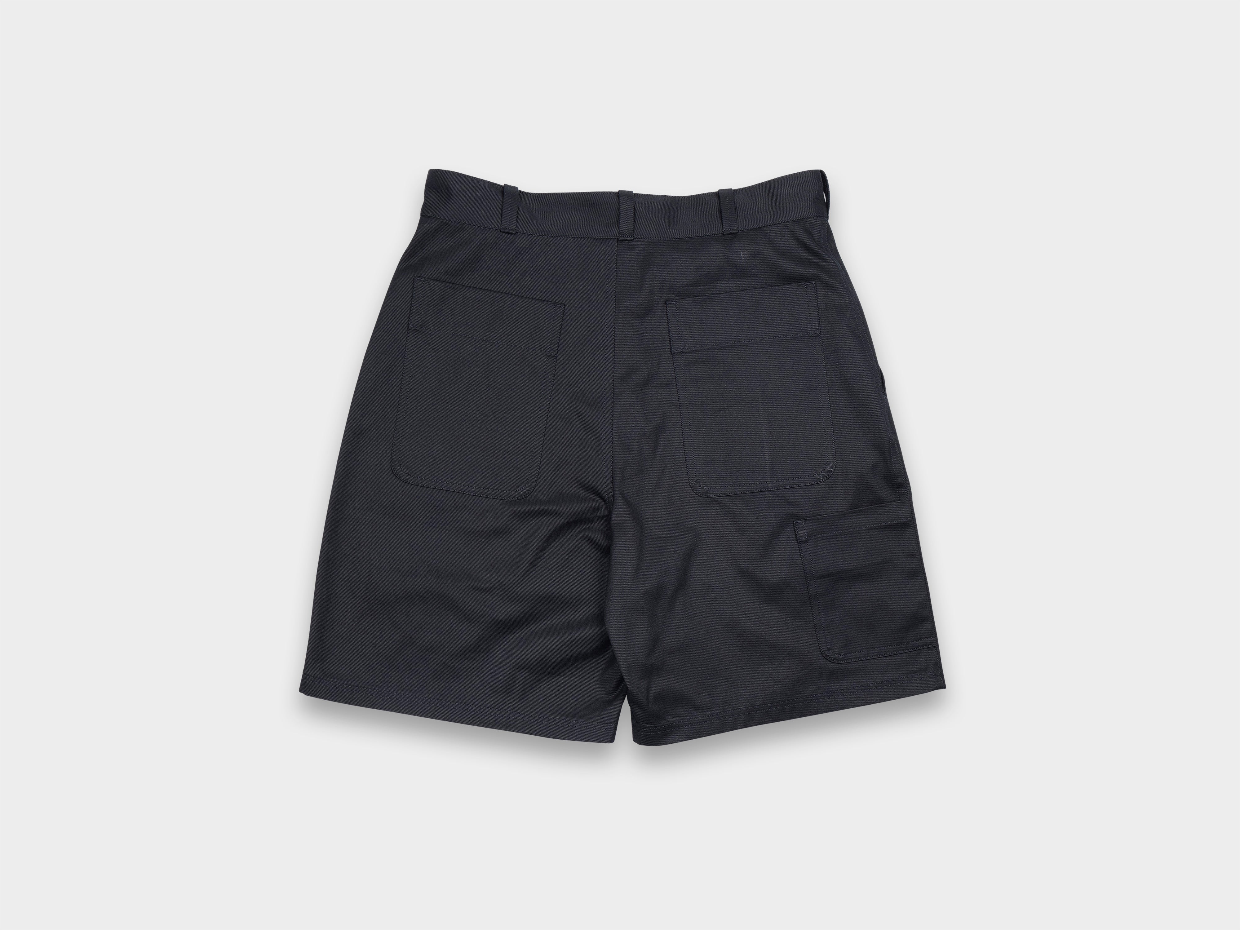 +Work shorts suitable for industry. Wide cut with generous room in the crotch and thigh for ease of movement. Deep side-seam pockets, one with internal pocket. Large back patch pockets, single utility patch pocket at thigh. Double-stitched welted seams. Made in Japan.