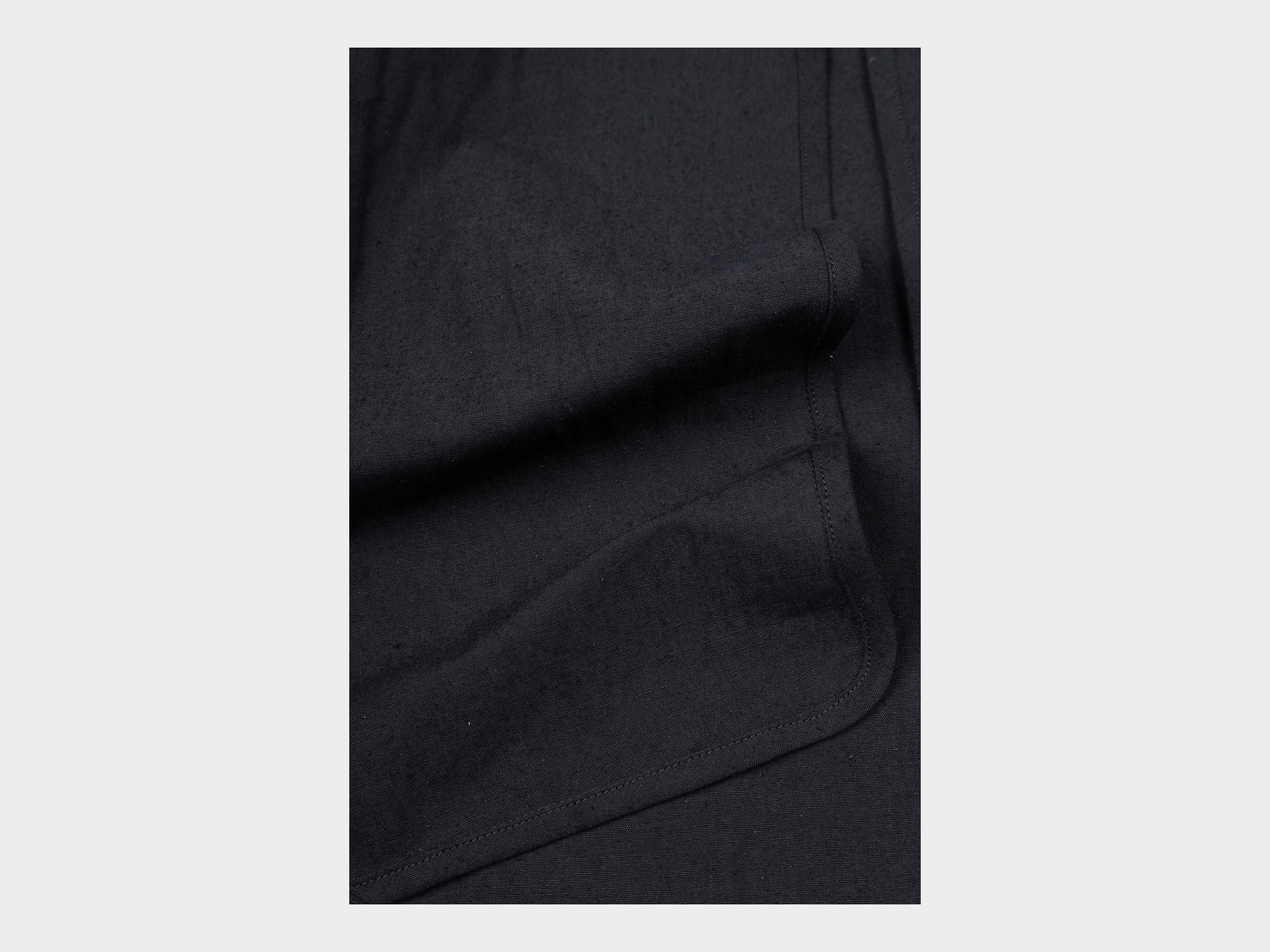 +53% linen / 33% cotton / 14% bamboo. Midweight buff cloth with dry, textural hand feel. Woven on a wooden shuttle loom in Shizuoka, Japan.