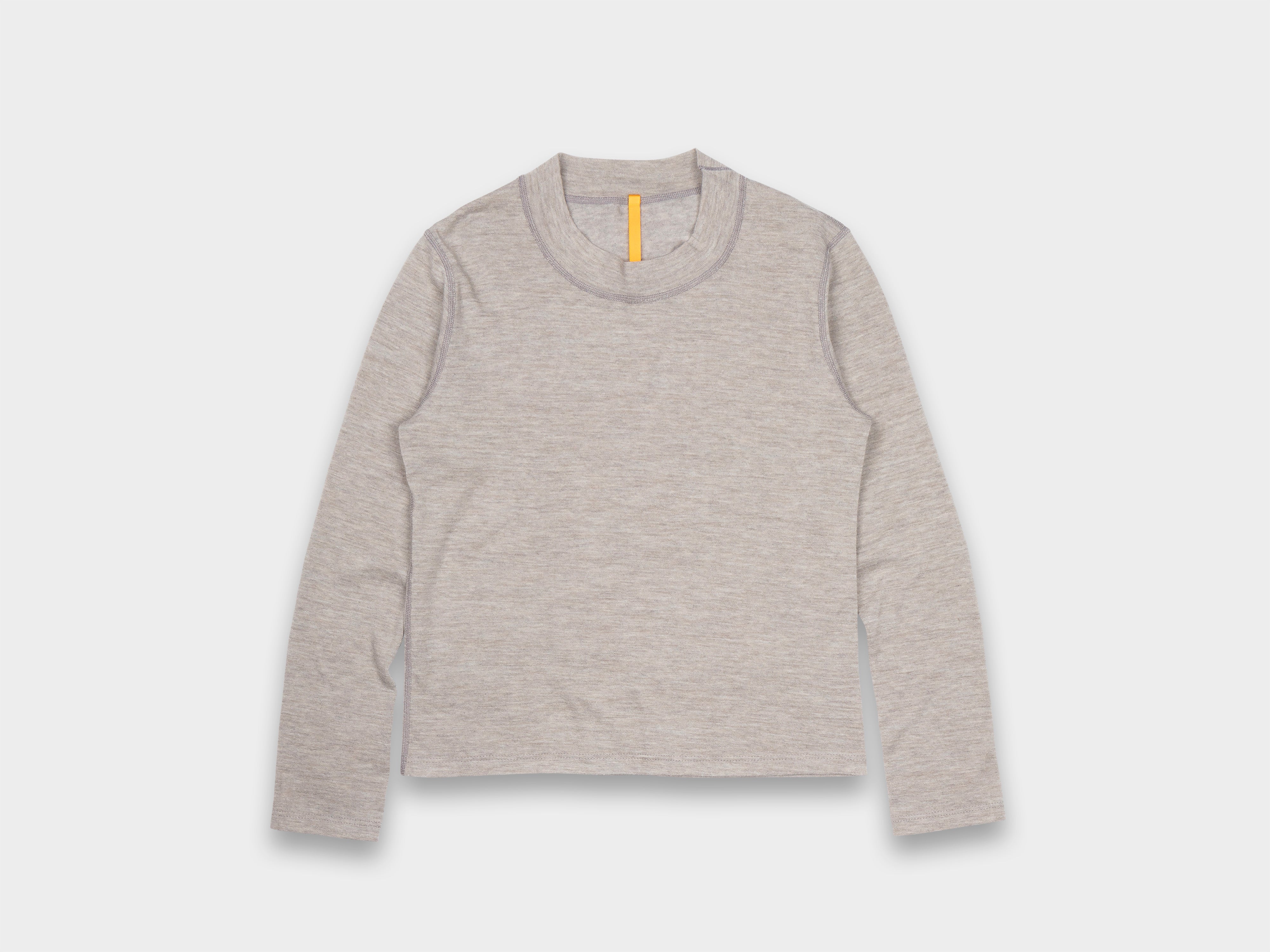 +Long-sleeve t-shirt with mock-neck and flat-stitched seams throughout. Made in Japan.