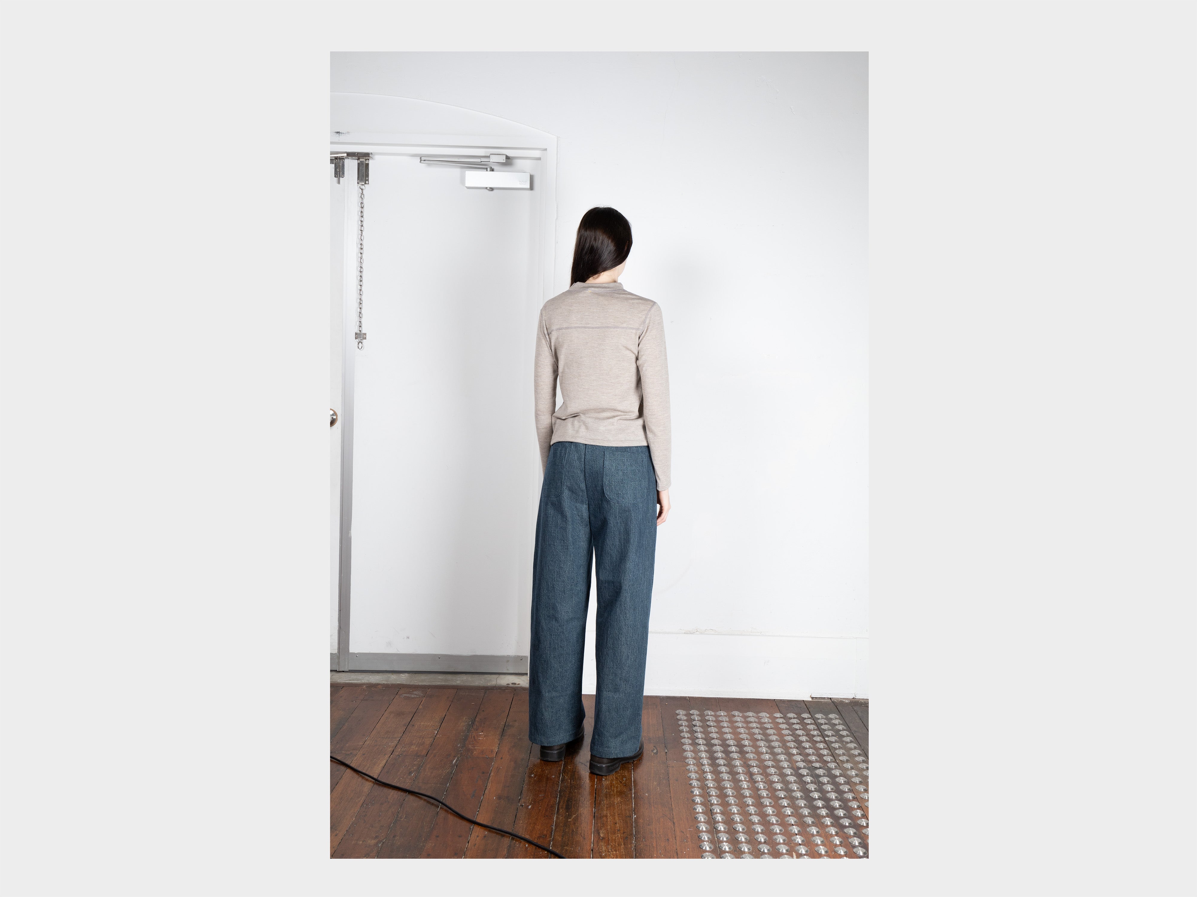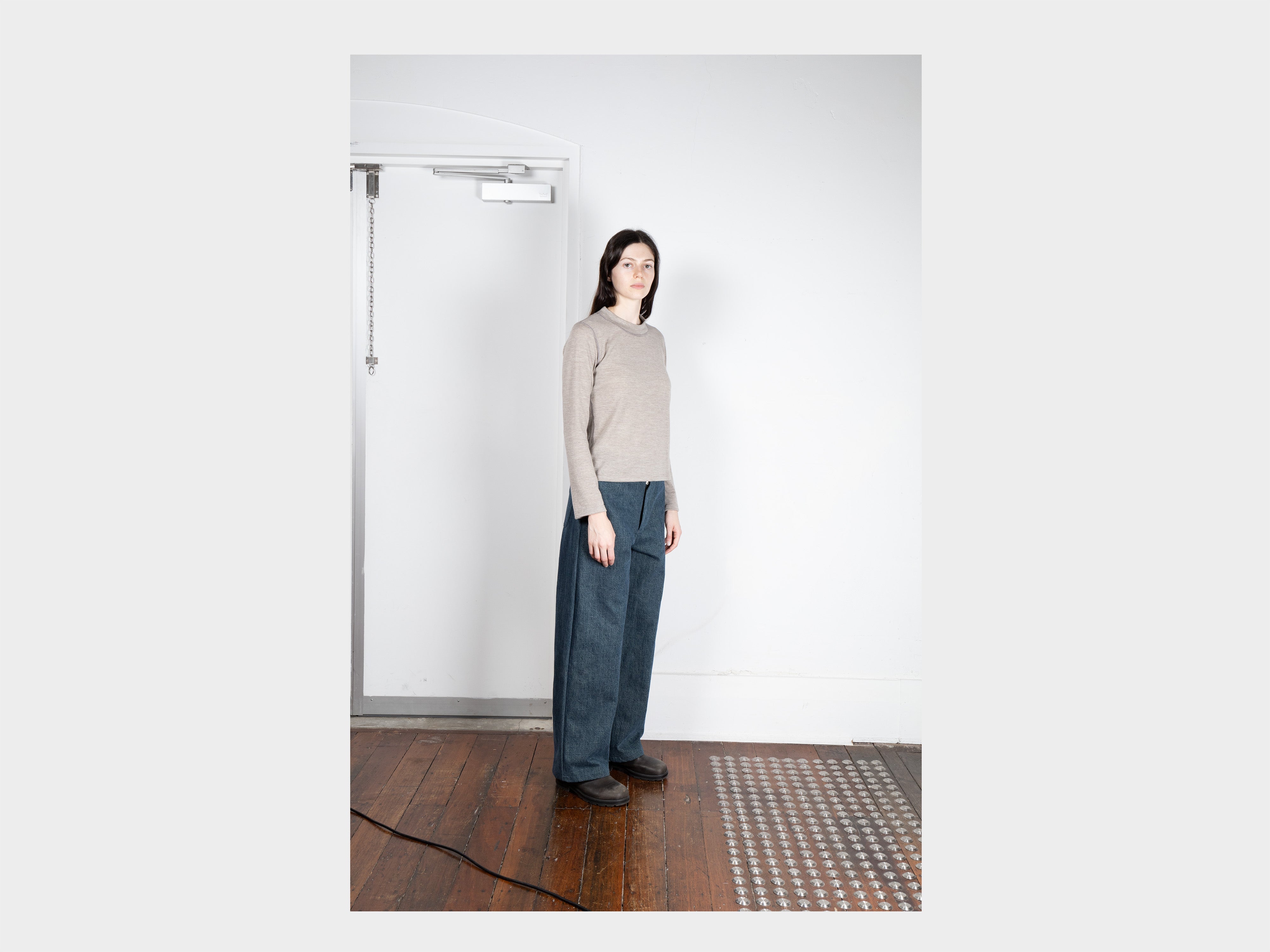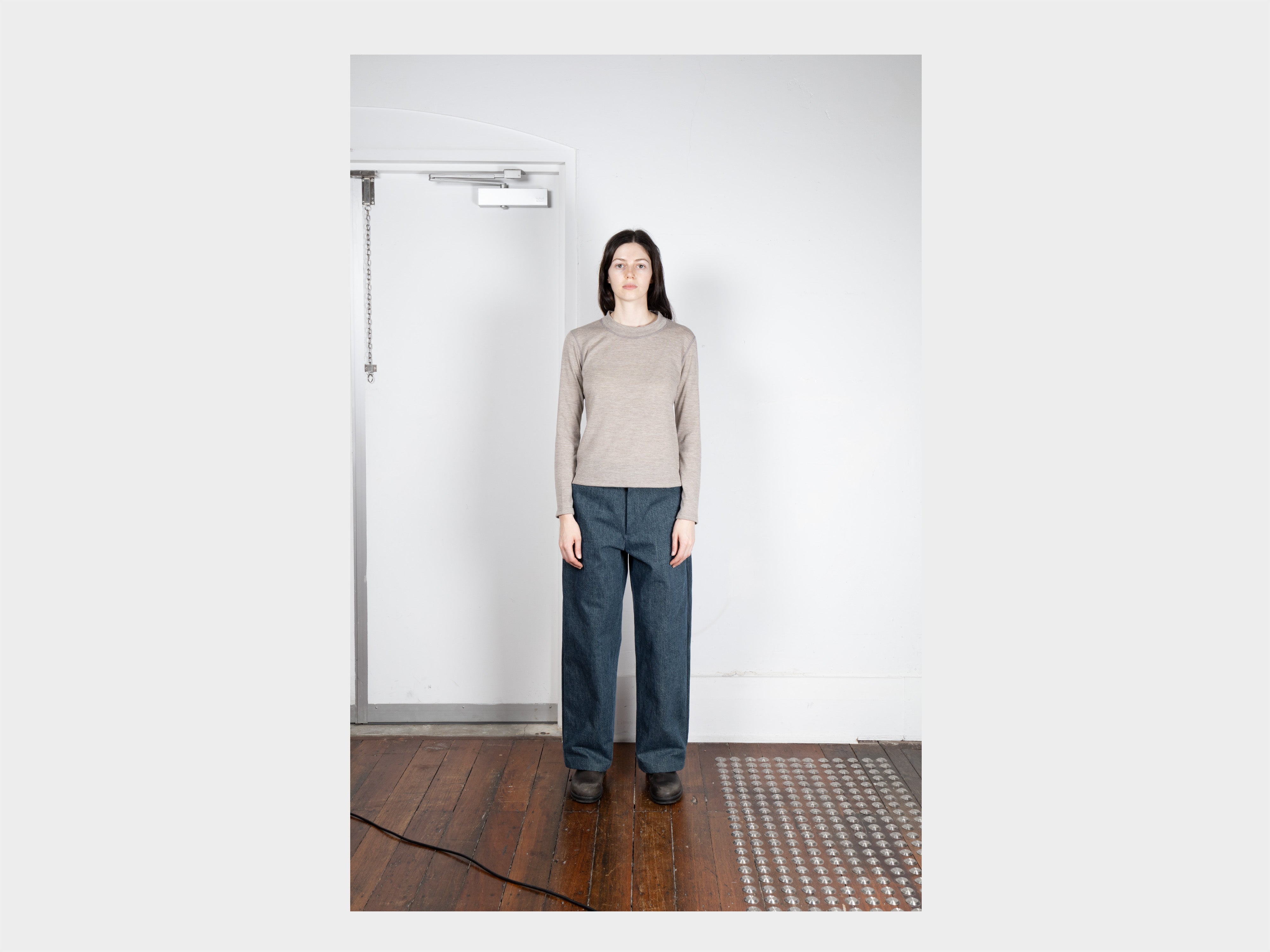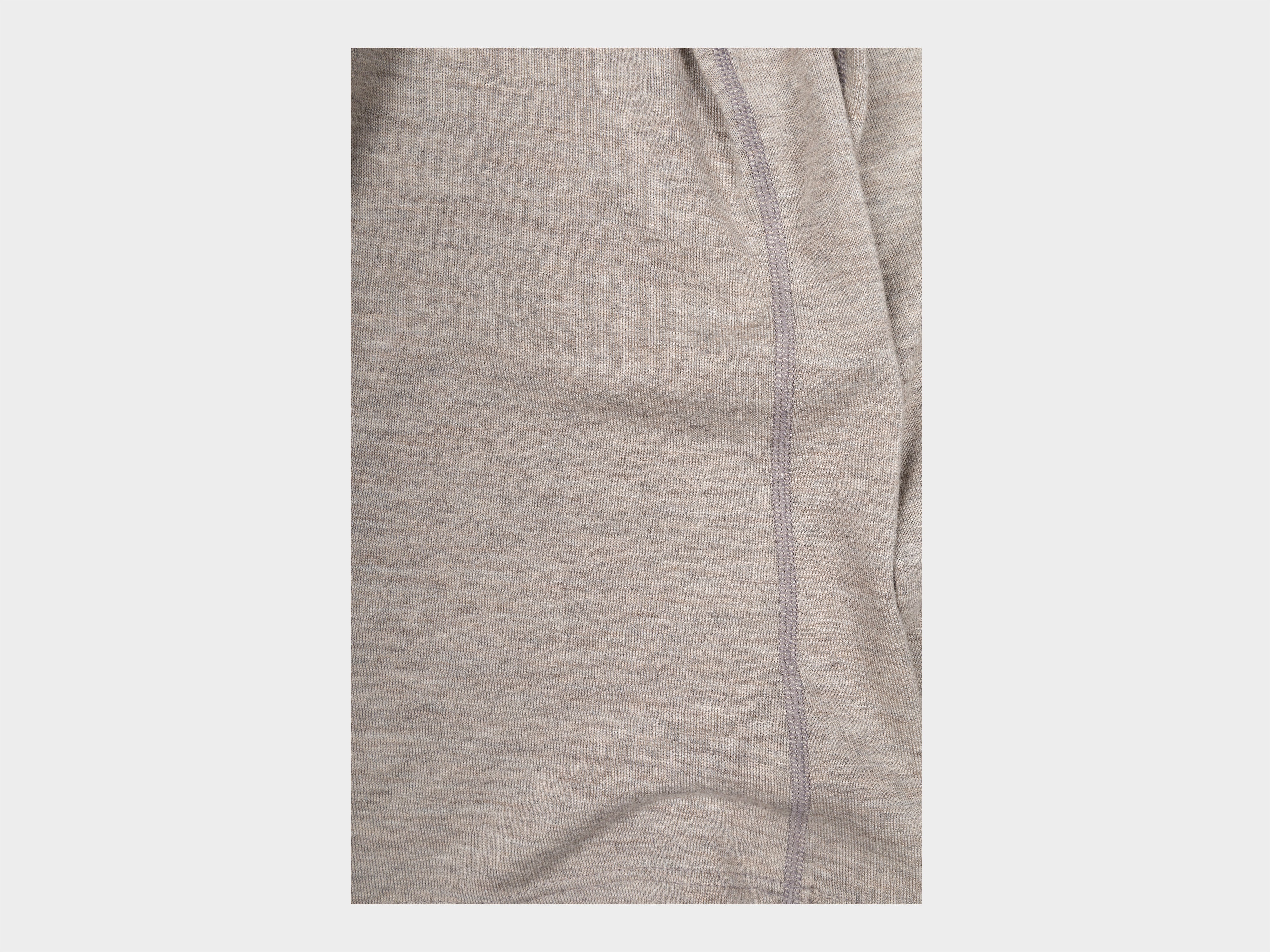 +57% wool / 43% cotton knitted with high-twist "Tenjiku" yarn. Natural colours of yarn have been retained.