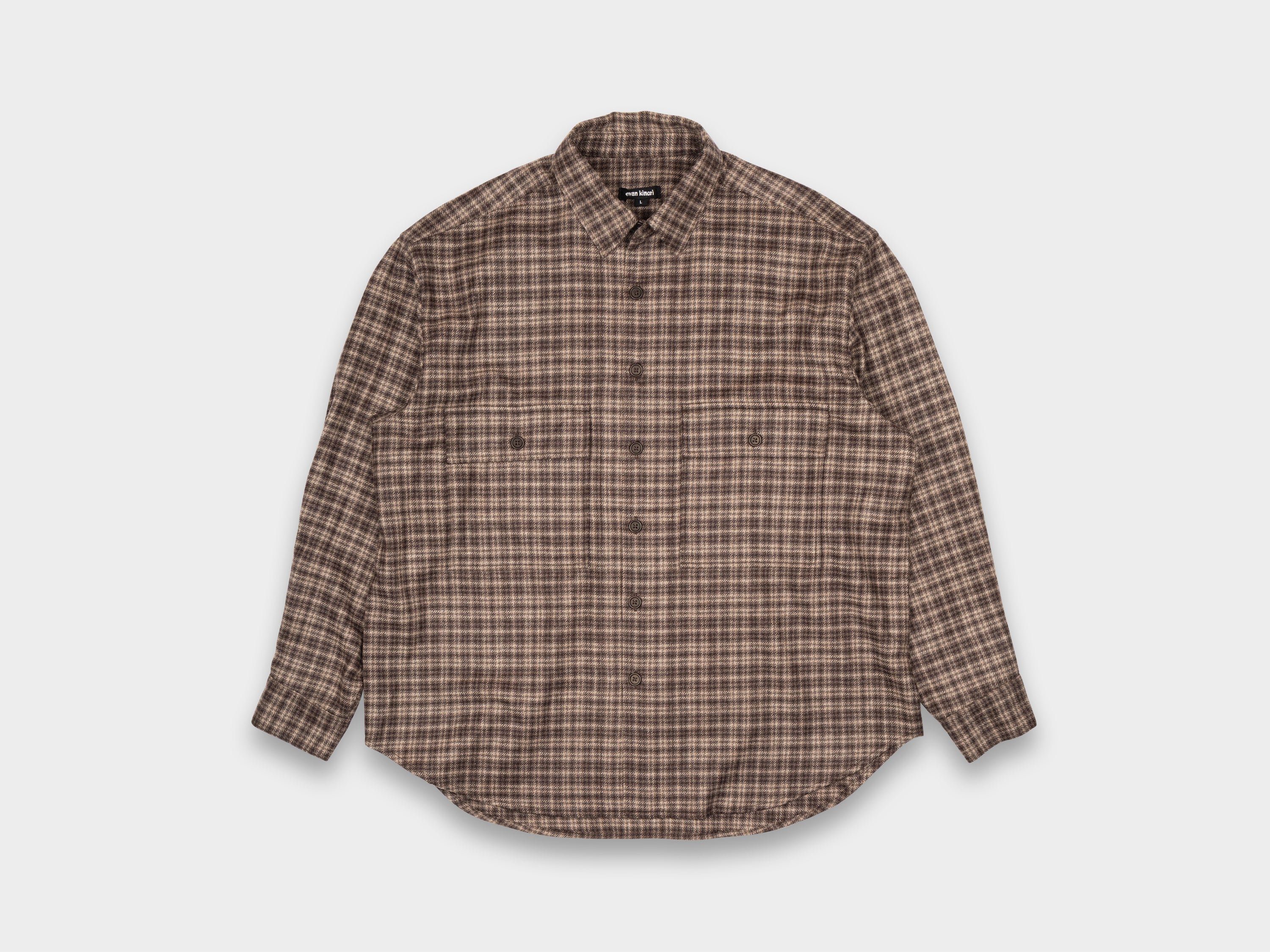 Evan Kinori Big Shirt Irish Wool Flannel Brown / Beige