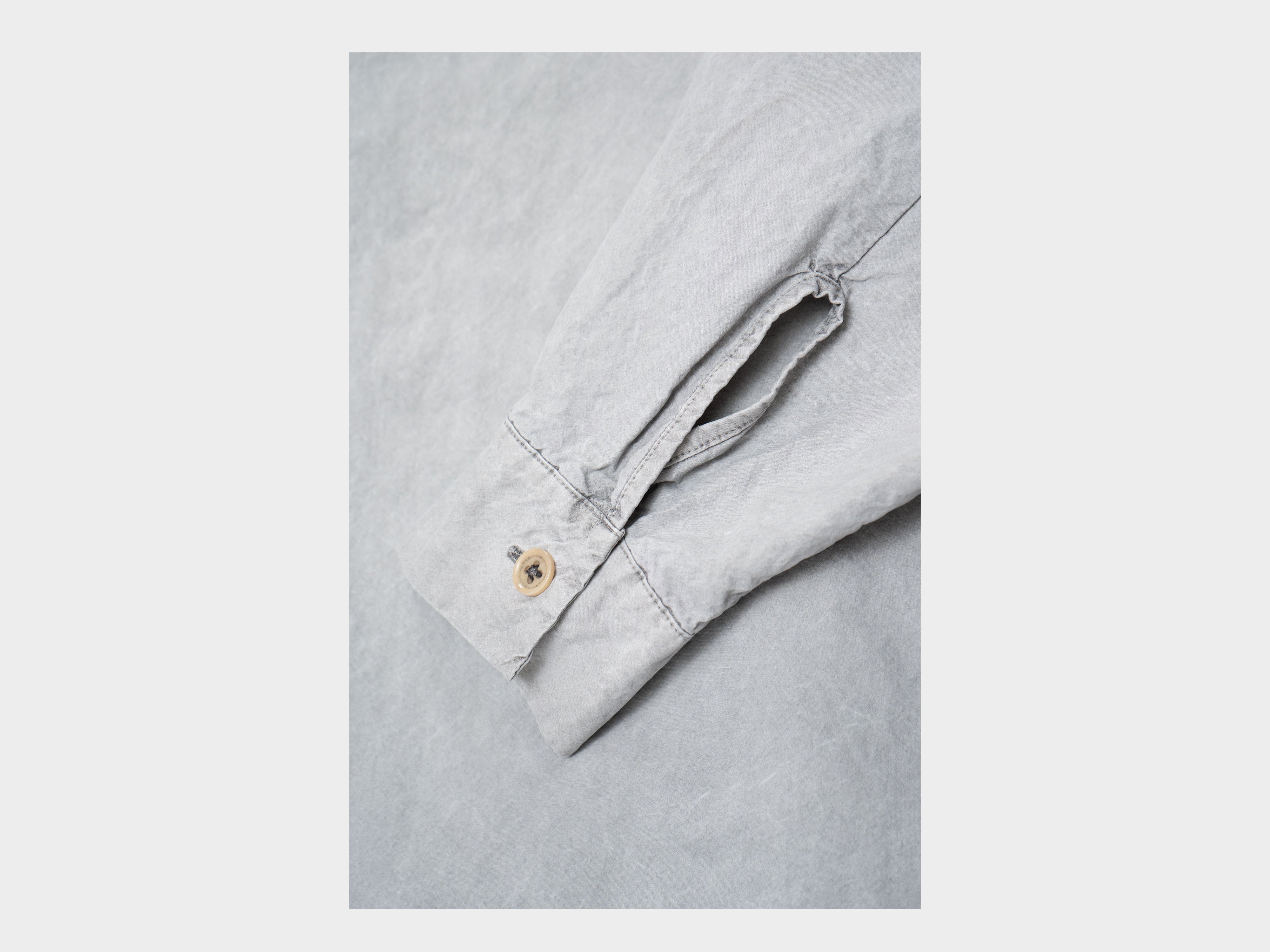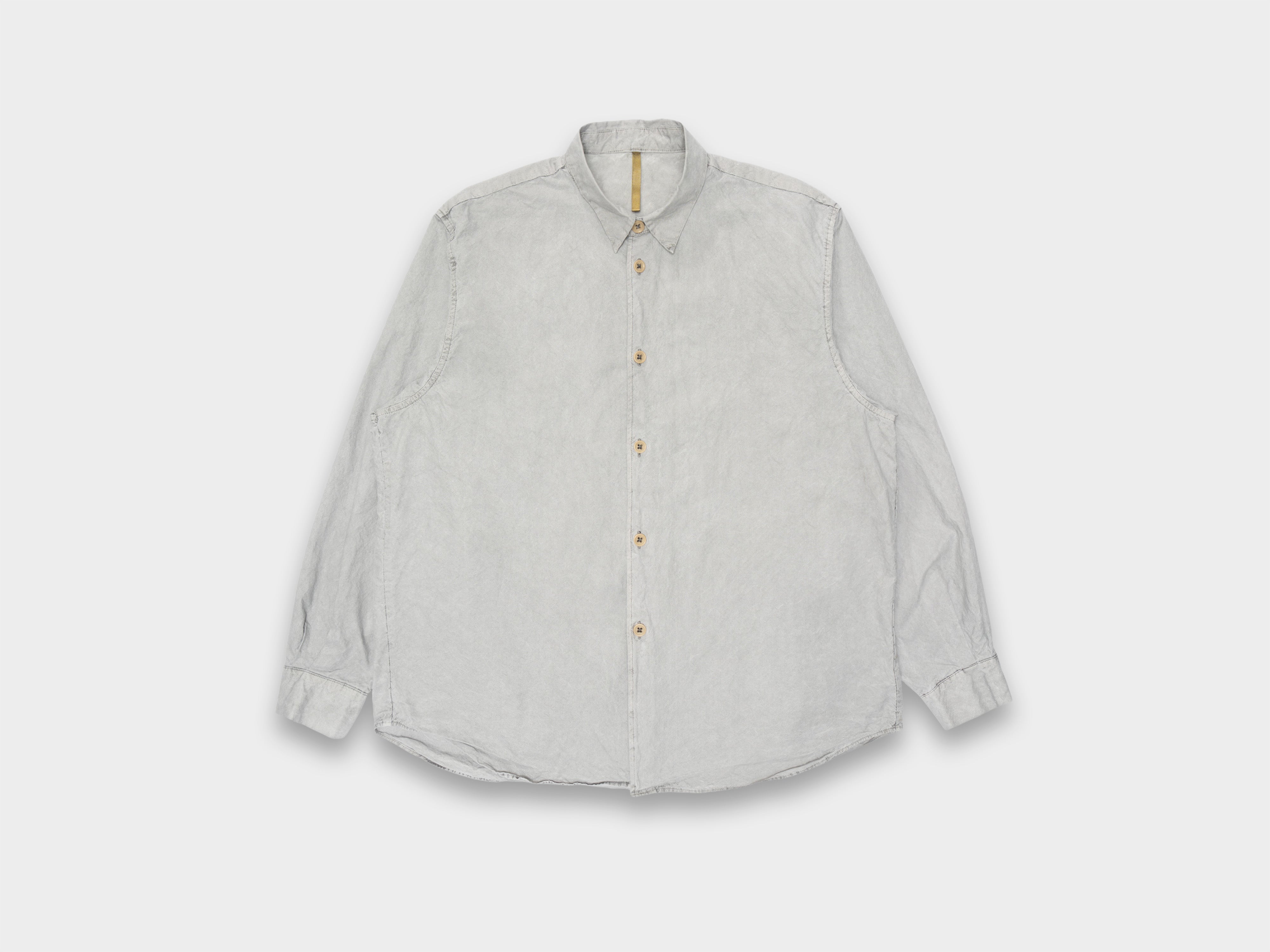 Loose–fitting shirt. This special release has been pigment over–dyed by Lady White Co. in Los Angeles, and is available exclusively through LWC and MAN–TLE. Slightly dropped shoulders, relaxed sleeves, pleated cuffs with single–button closure, pointed collar, button front, curved hem. Made in Japan.
