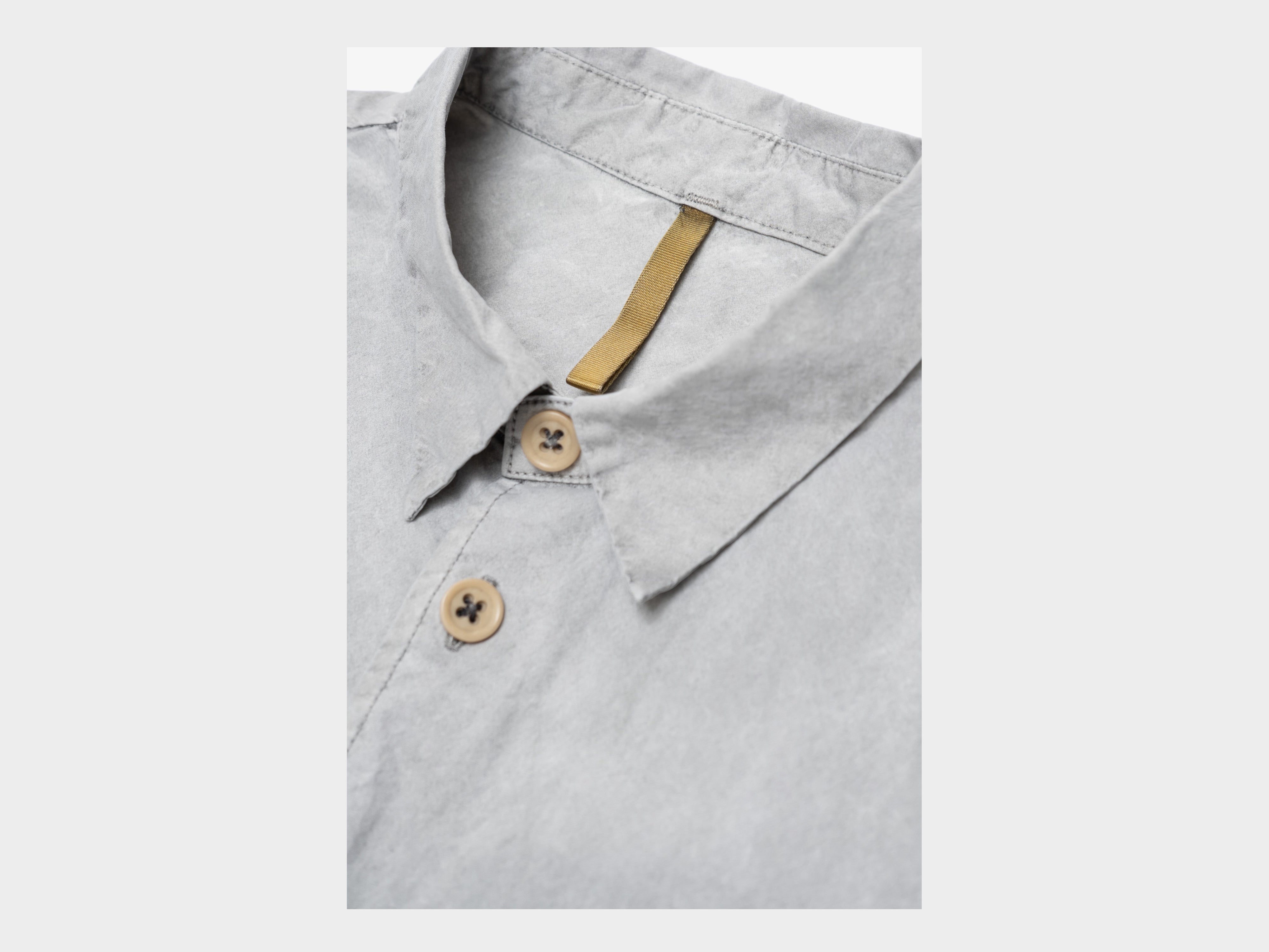 +100% cotton. High–density, washed, plain weave shirting. With washing and wear this cloth will evolve, becoming lighter and papery in texture. Woven in Shizuoka, Japan and garment–dyed in Los Angeles by Lady White Co.