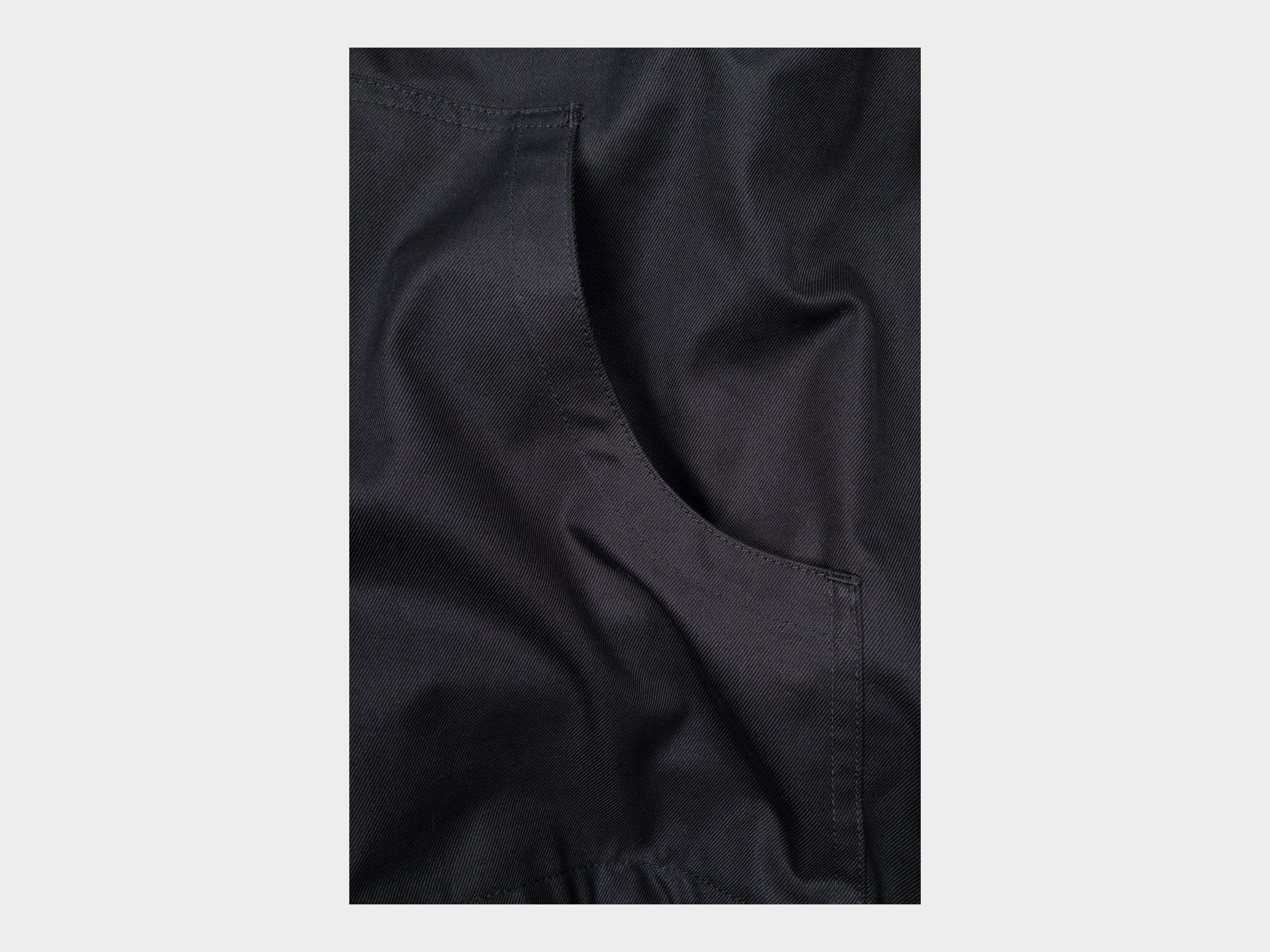 +100% cotton. Durable, naturally stiff, high density twill. With washing and wear the yarns will swell, resulting in a soft, smooth cloth and relaxed fit garment. Woven in Tokushima, Japan.