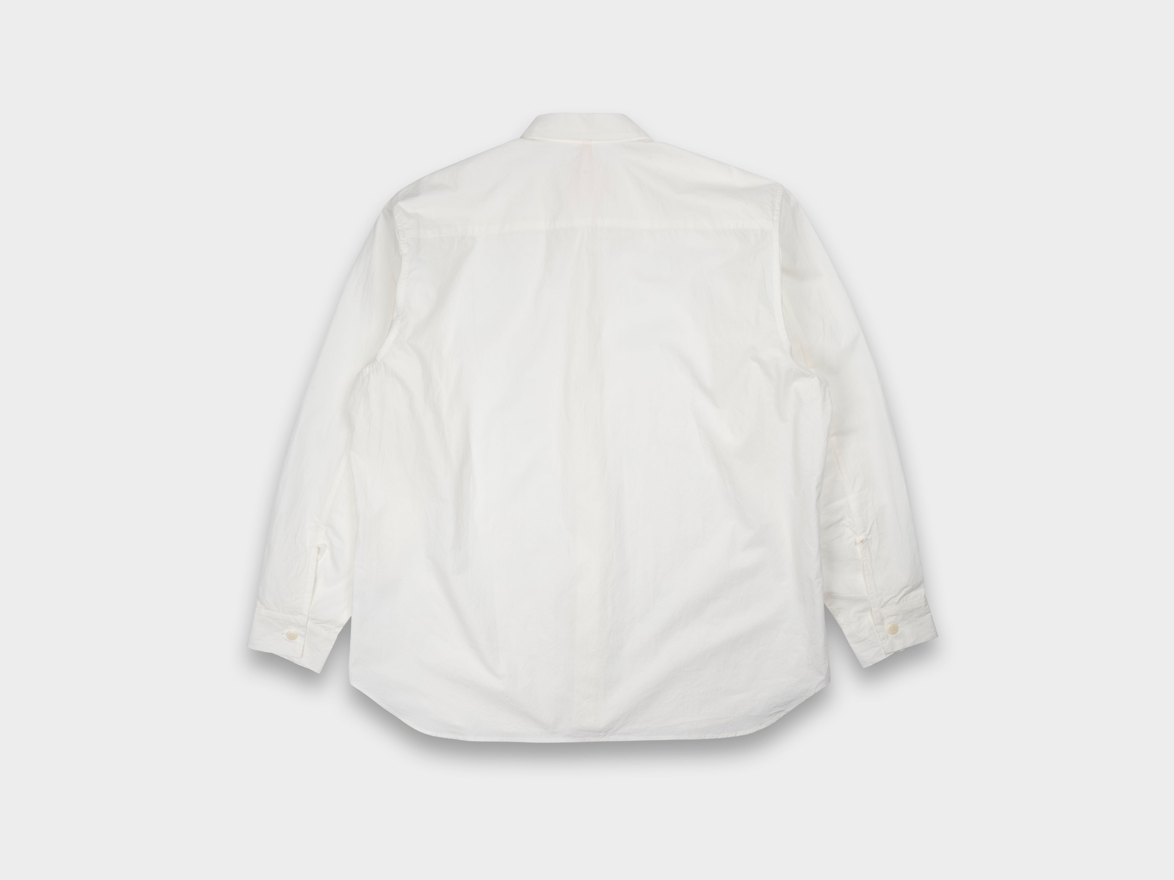 +100% Supima cotton, grown in the USA. This ultra-fine, high-density typewriter cloth represents a technical achievement by the new generation of an established, family-run textile mill in Hamamatsu, Japan. In pursuit of surpassing the industry benchmark for the finest, strongest, and smoothest typewriter cloth, it reaches a density of 358 yarns per square inch, outweaving the previous record of 340. With 160 yarns in the weft and 198 in the warp, this cloth is extremely difficult to produce and requires the use of an older wooden shuttle loom, chosen for its gentler handling. Supima cotton is selected for its extra-long staple fibres, which are spun into premium yarns that are fine, soft, and durable, essential for weaving at this calibre. The resulting cloth is ultra-lightweight and breathable, barely touching the skin, with a fine, papery texture. It rustles and crunches with movement, and despite its delicacy, the density of the weave makes it supremely strong. When cared for appropriately, this garment will retain its shape and quality through repeated wear. Woven for MAN–TLE in Shizouka, Japan.