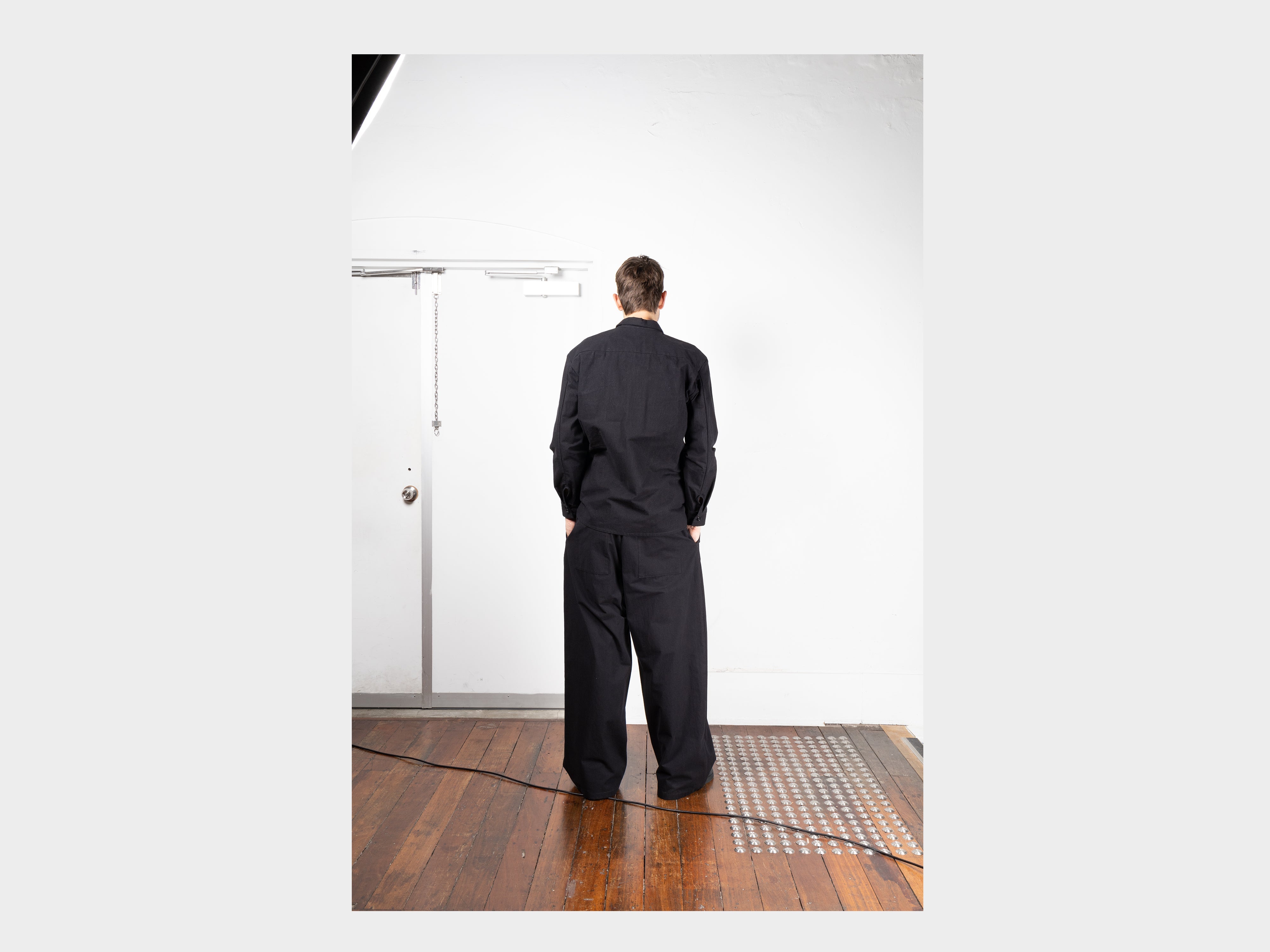 +100% cotton with a paraffin wax coating. Yarn spun and dyed in Japan using cotton grown in Australia and the USA. Woven in Shizouka, then coated and baked in paraffin wax in Fukui. This original MAN–TLE cloth, MT-Wax, is designed to reveal new sound, colour, and texture over time. At first heavyweight and naturally stiff, it softens, fades, and changes form with washing and wear, becoming personal to the body it covers. Woven for MAN–TLE in Shizuoka, Japan.