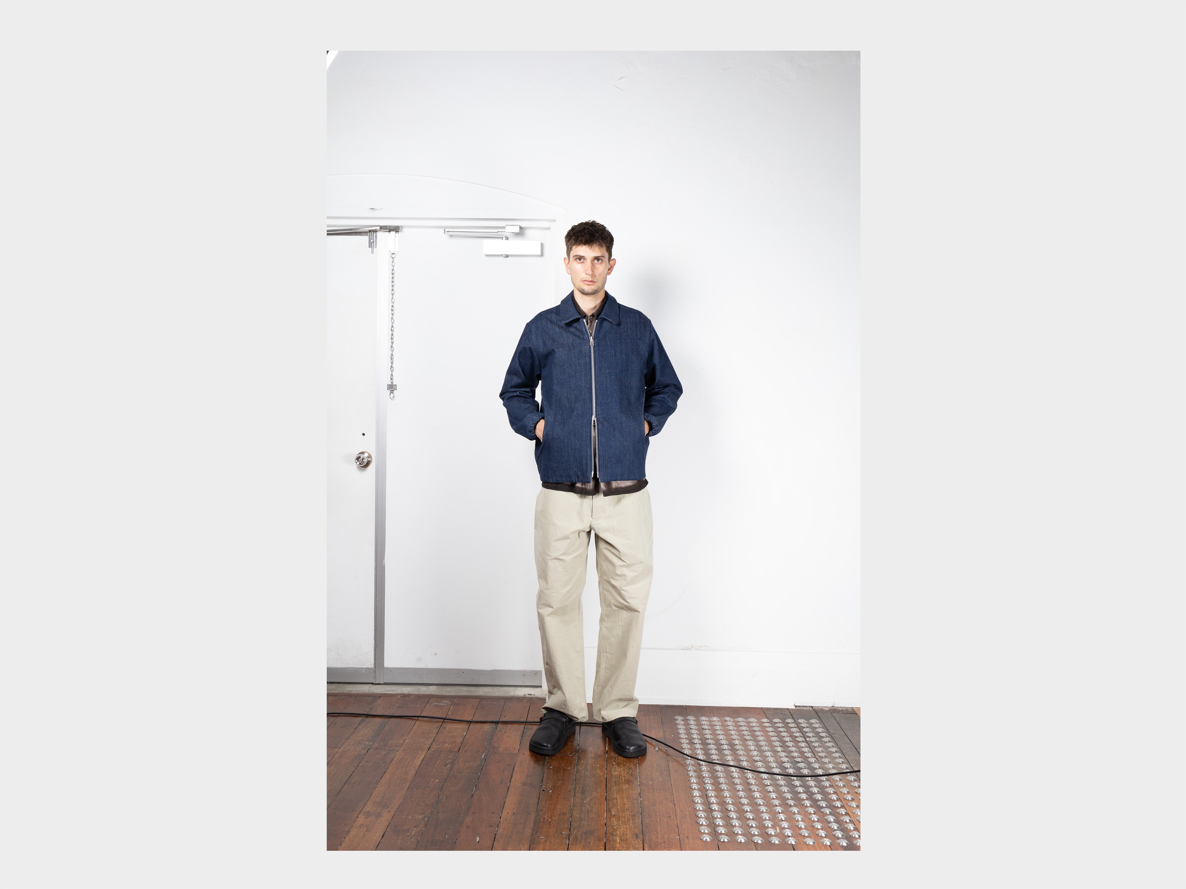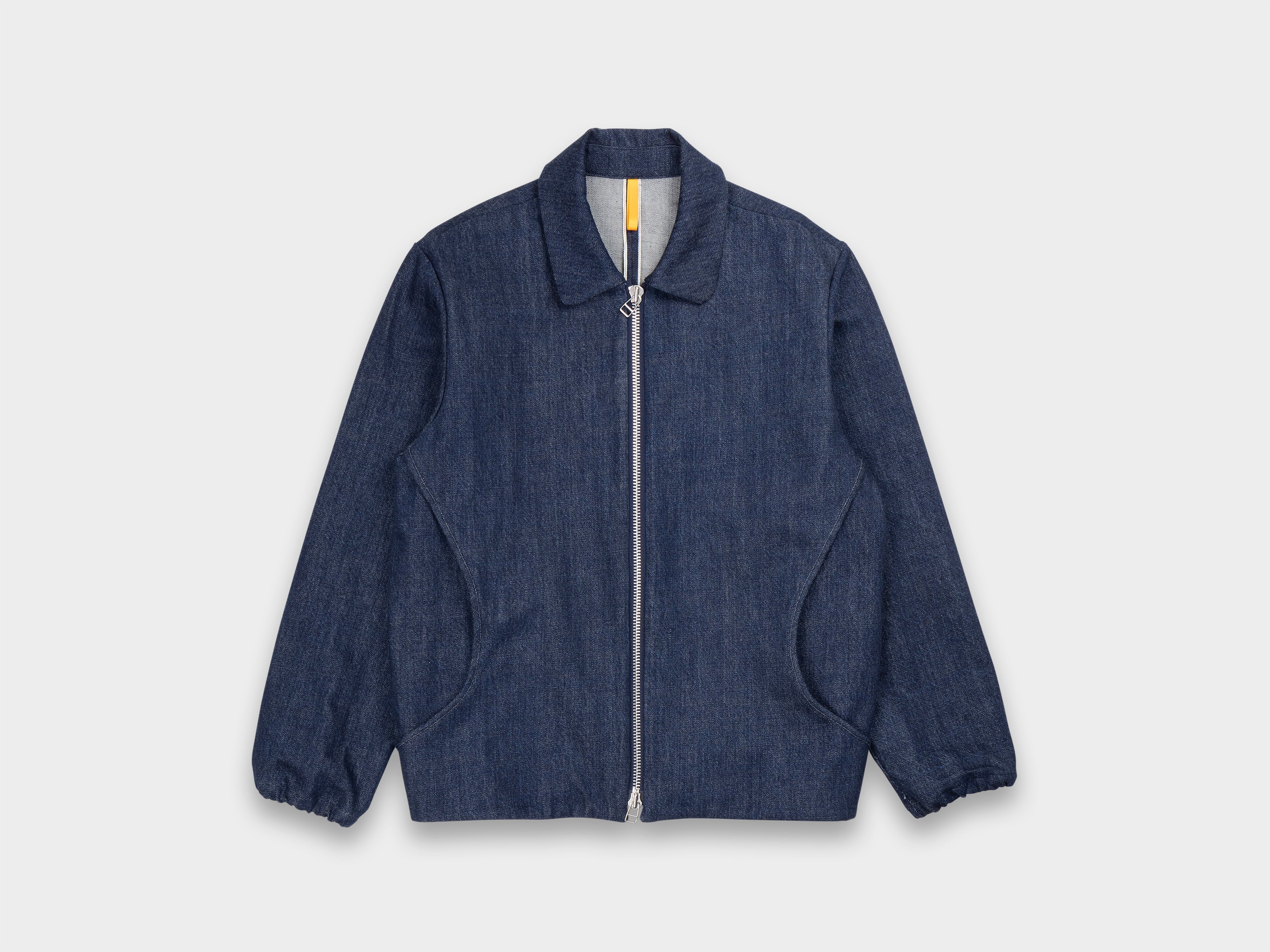 +Straight-cut jacket with large scoop pockets. Self-lined front, pointed collar with hidden stand, wide YKK zip, elasticated cuffs and back hem. Made in Japan.