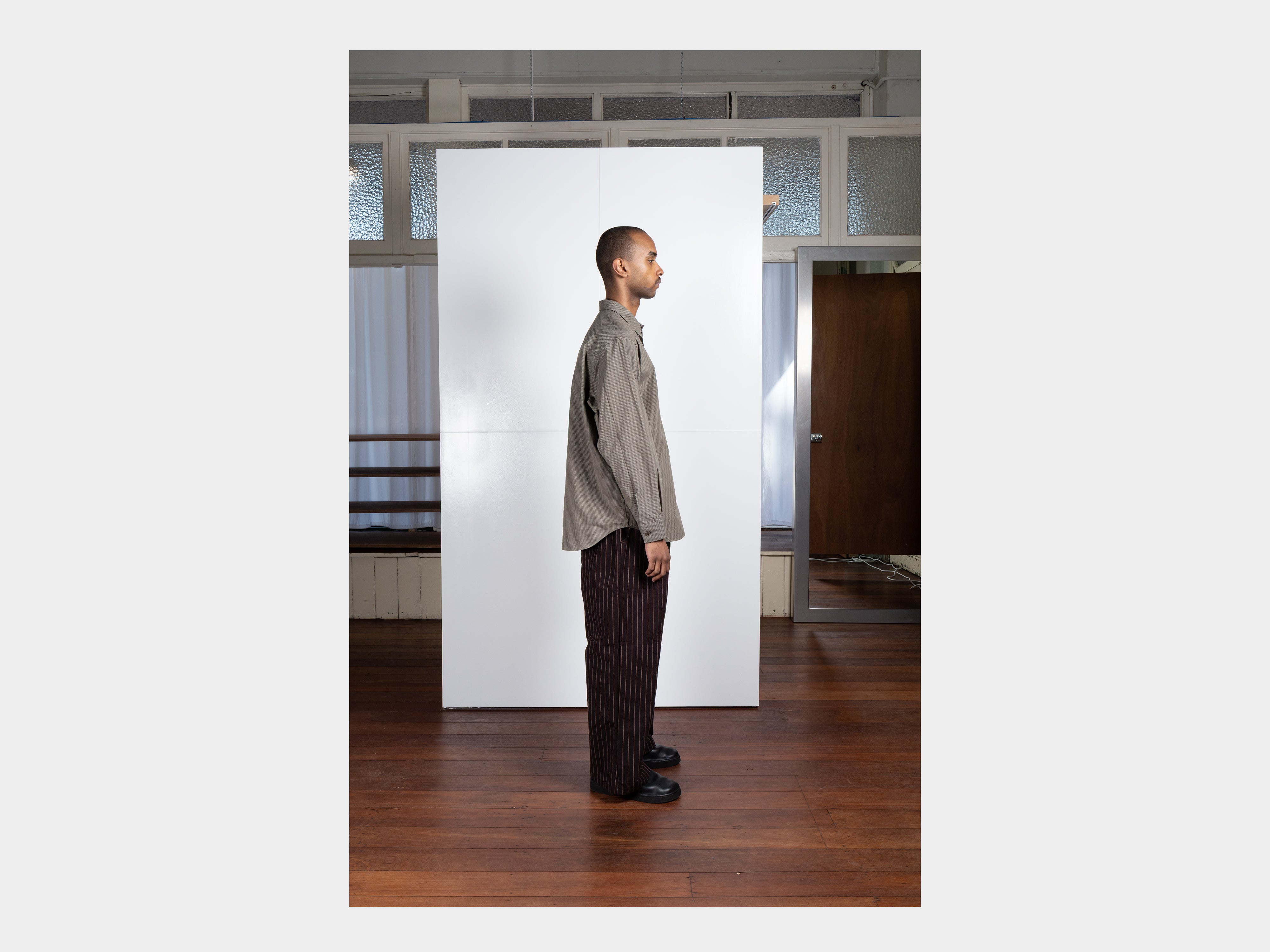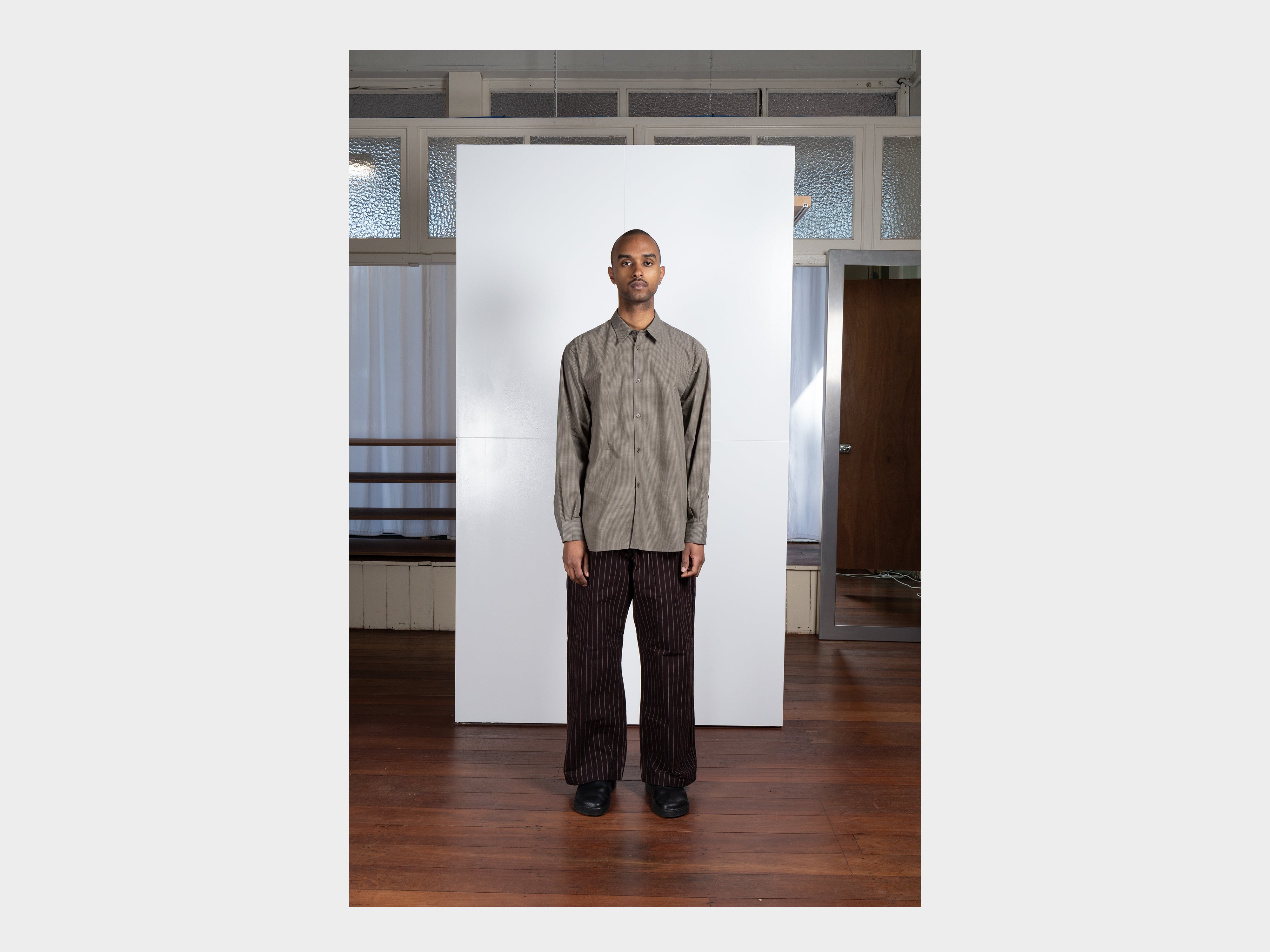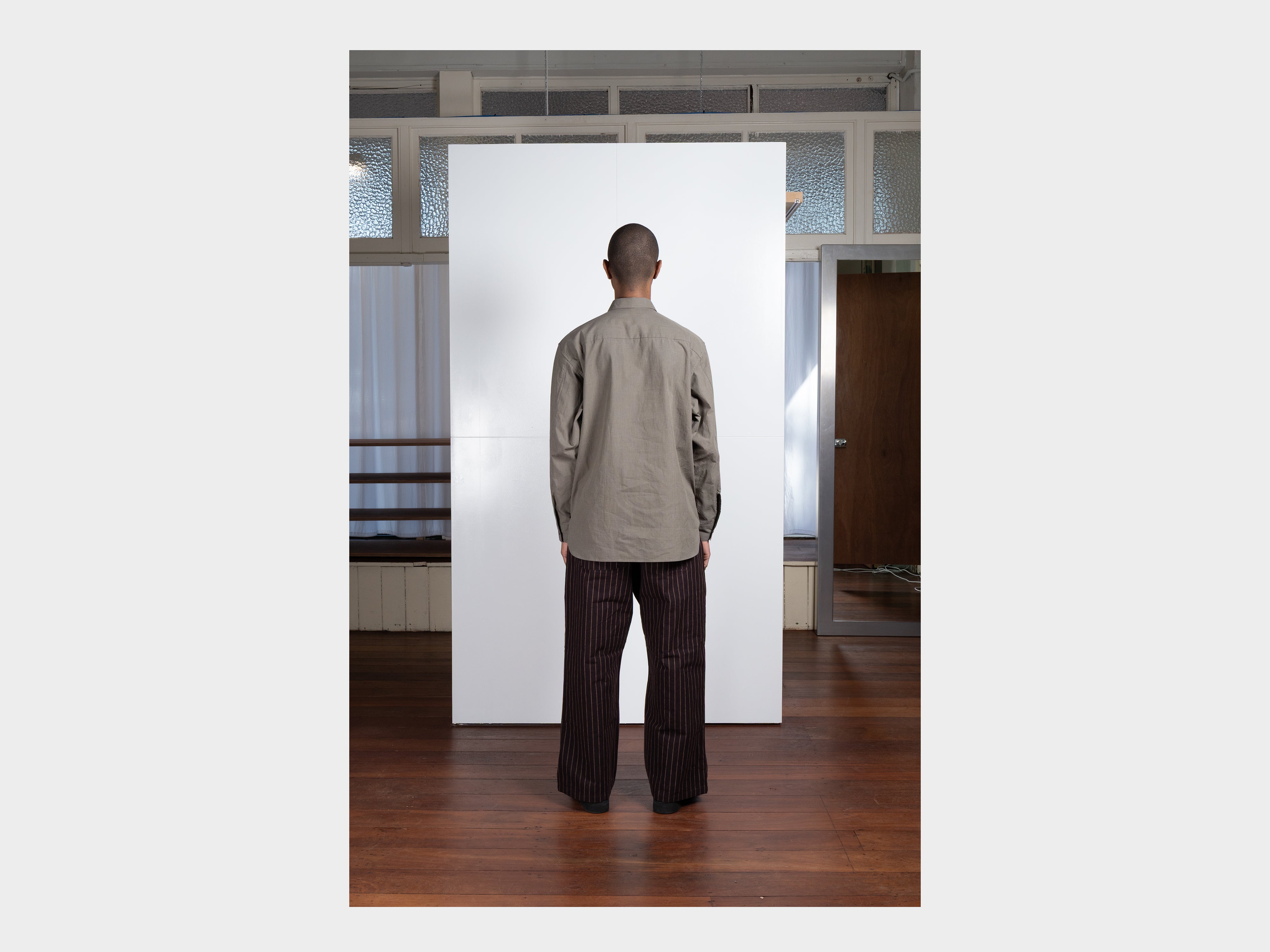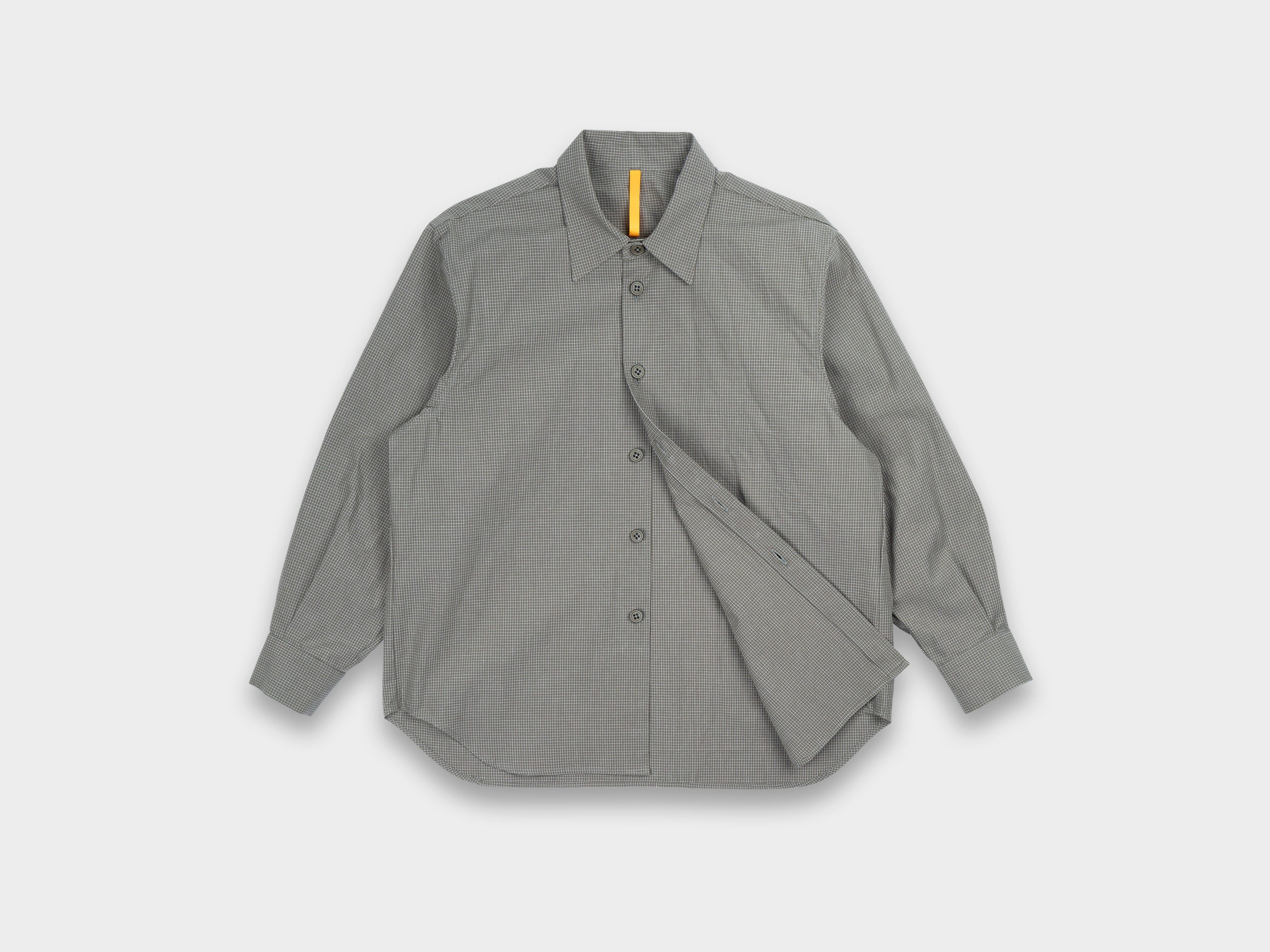 +Yard-dyed 100% cotton broadcloth with fine square grid motif. Using multiple finishings, a dry, papery texture has been achieved. Woven in Hyogo, Japan.