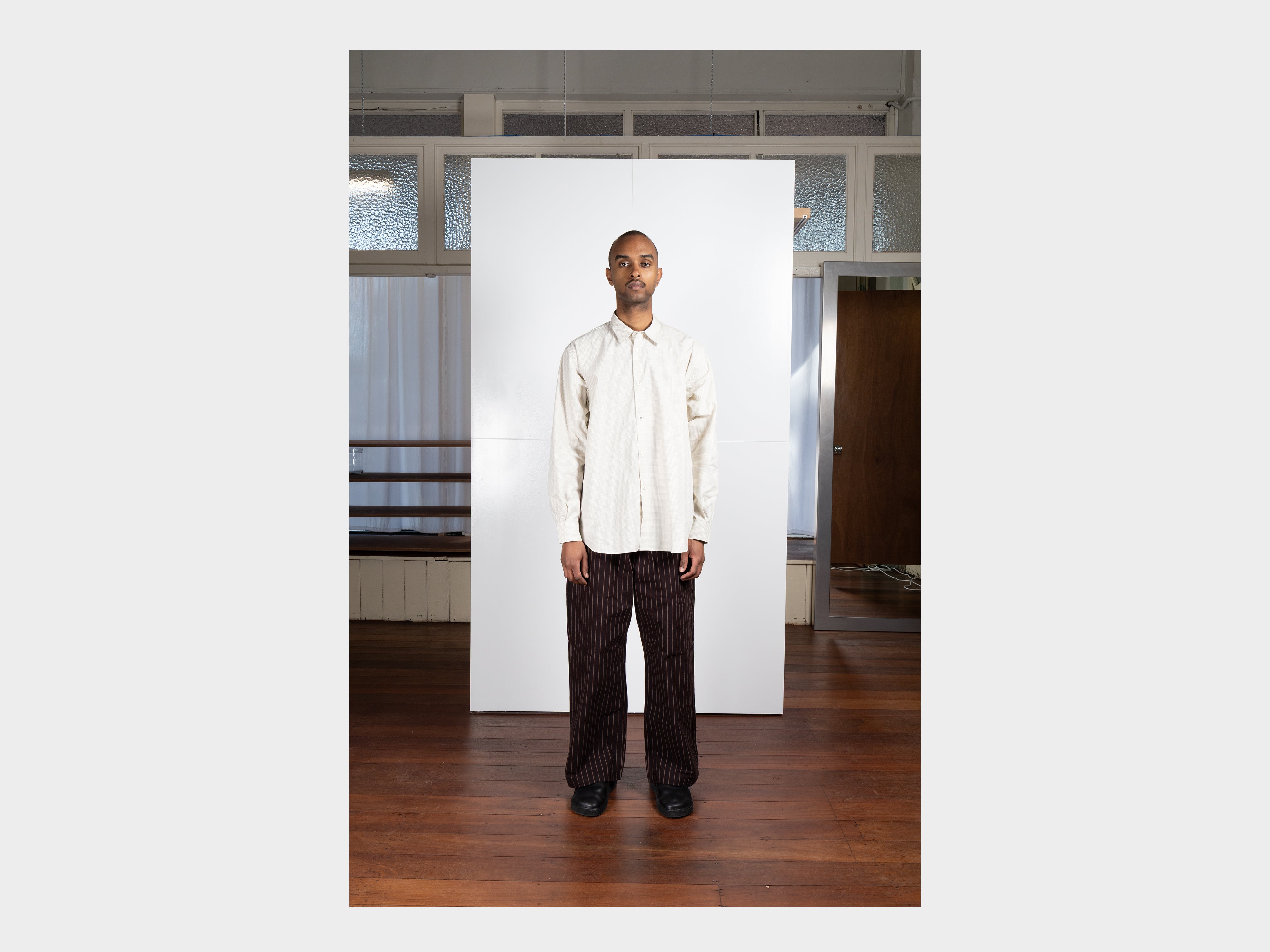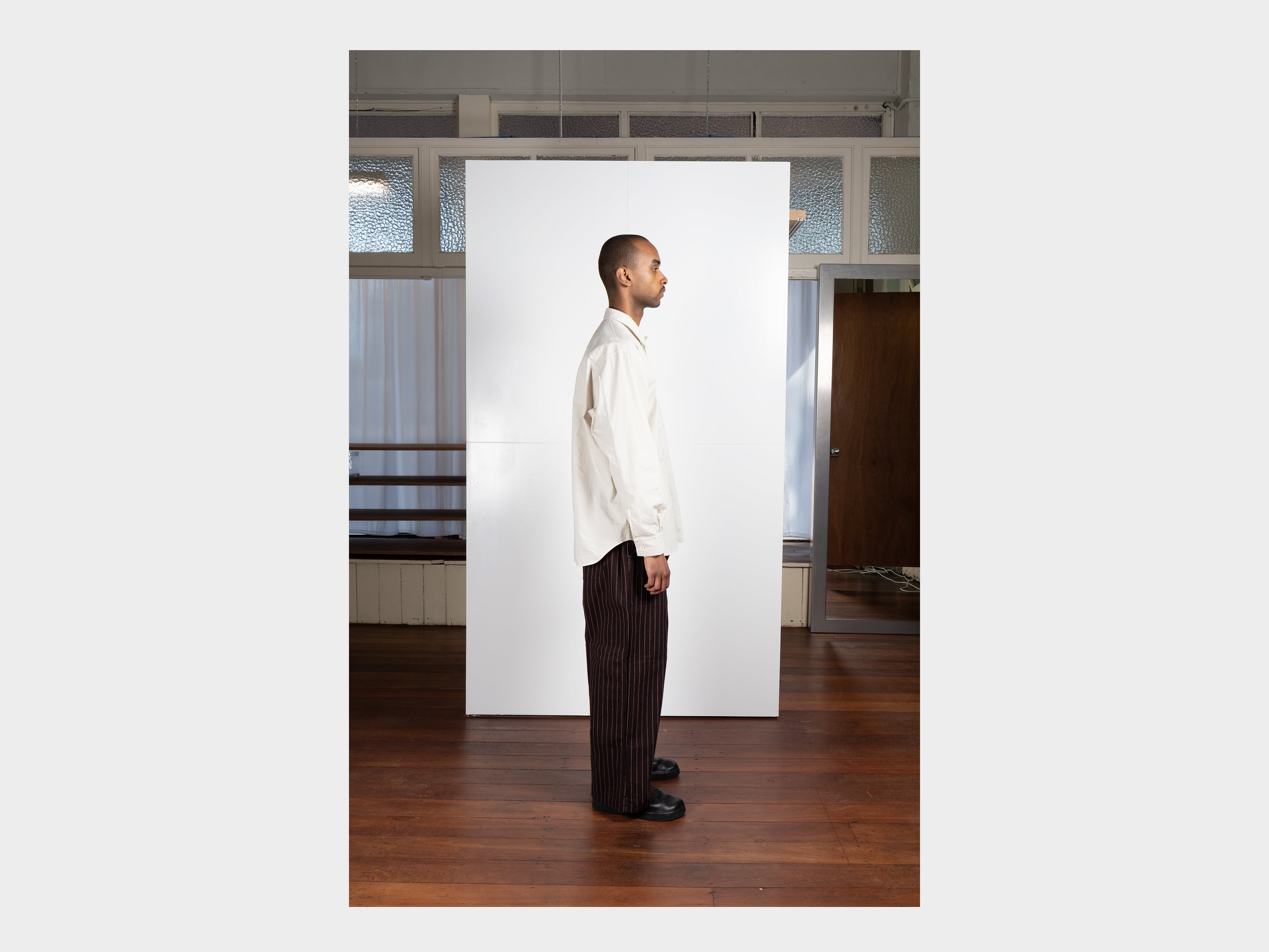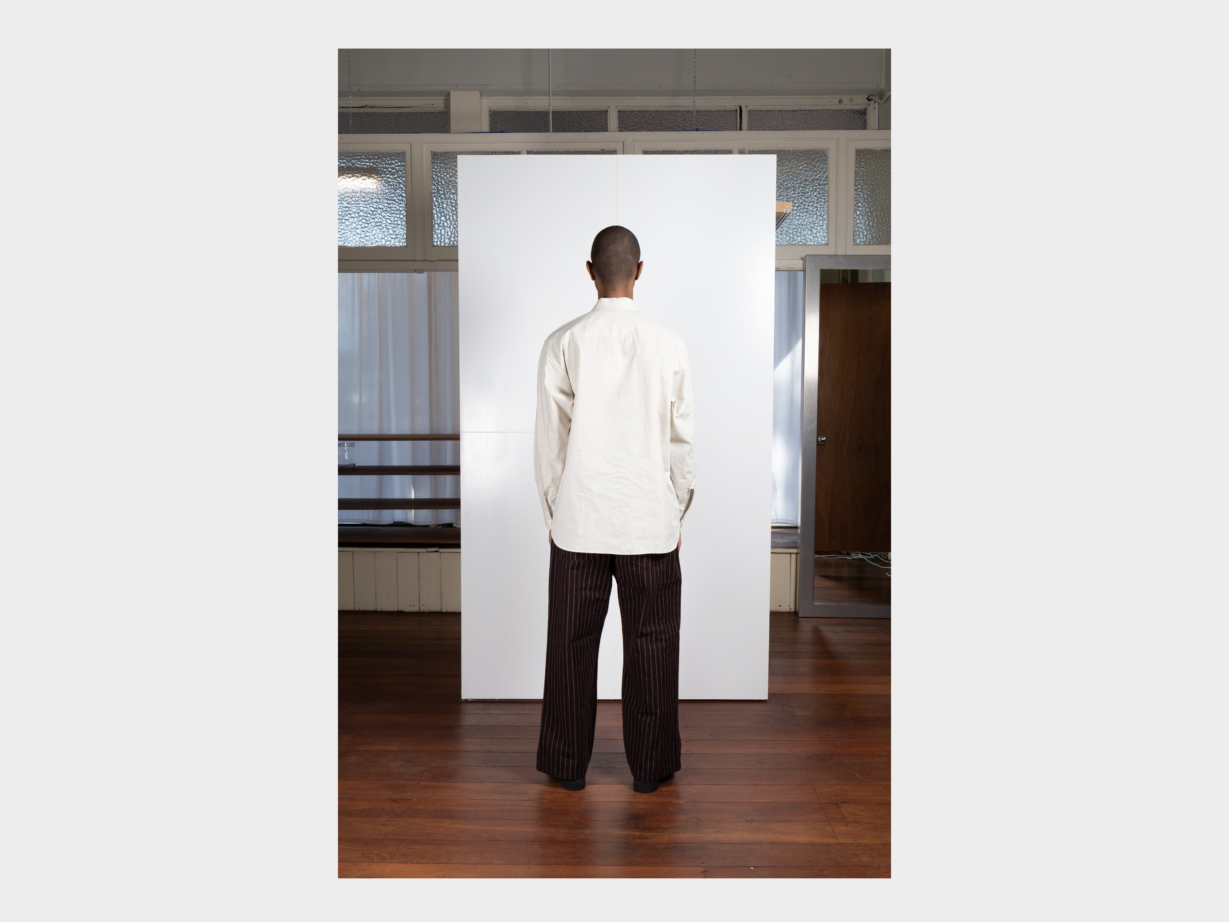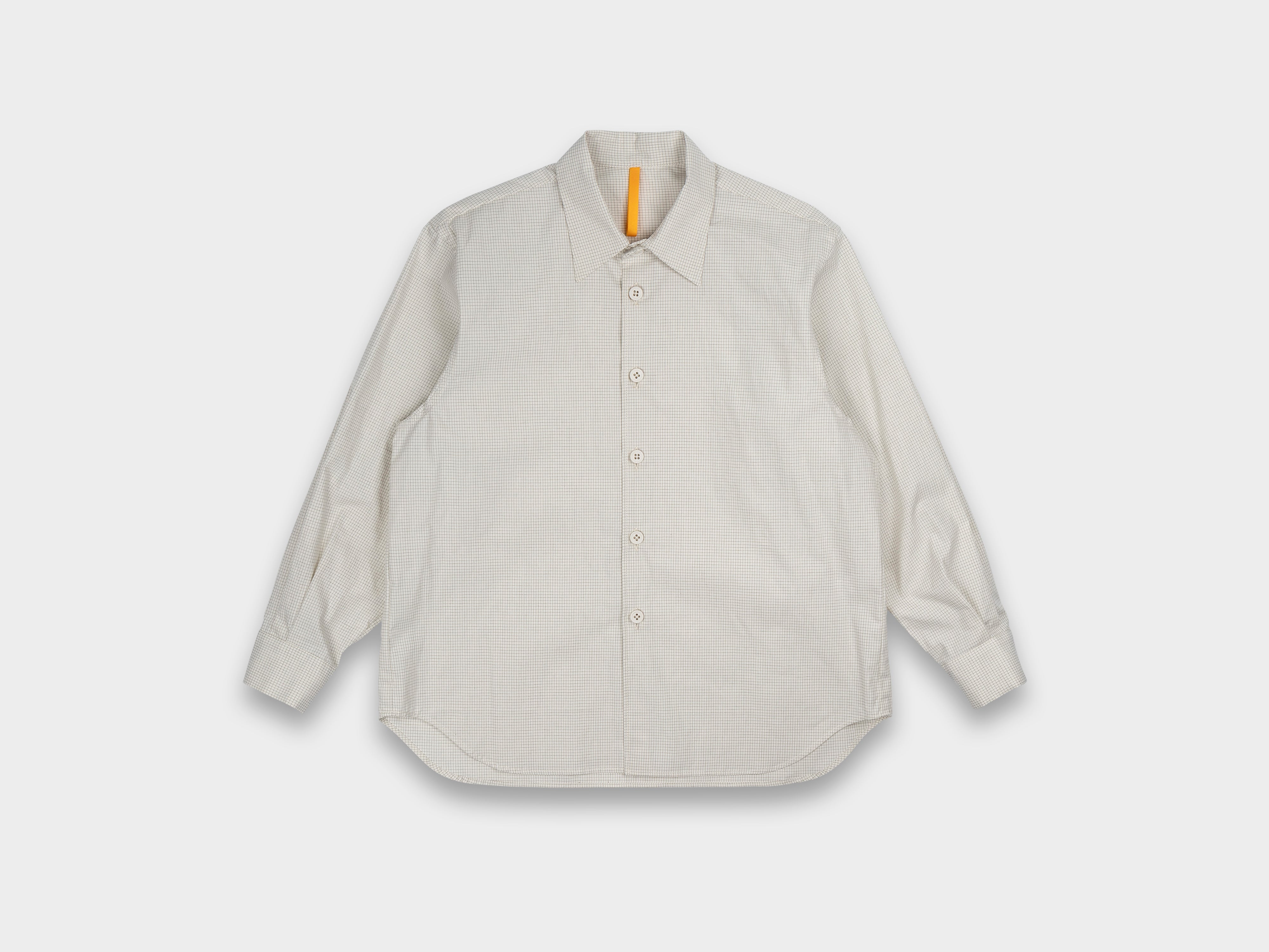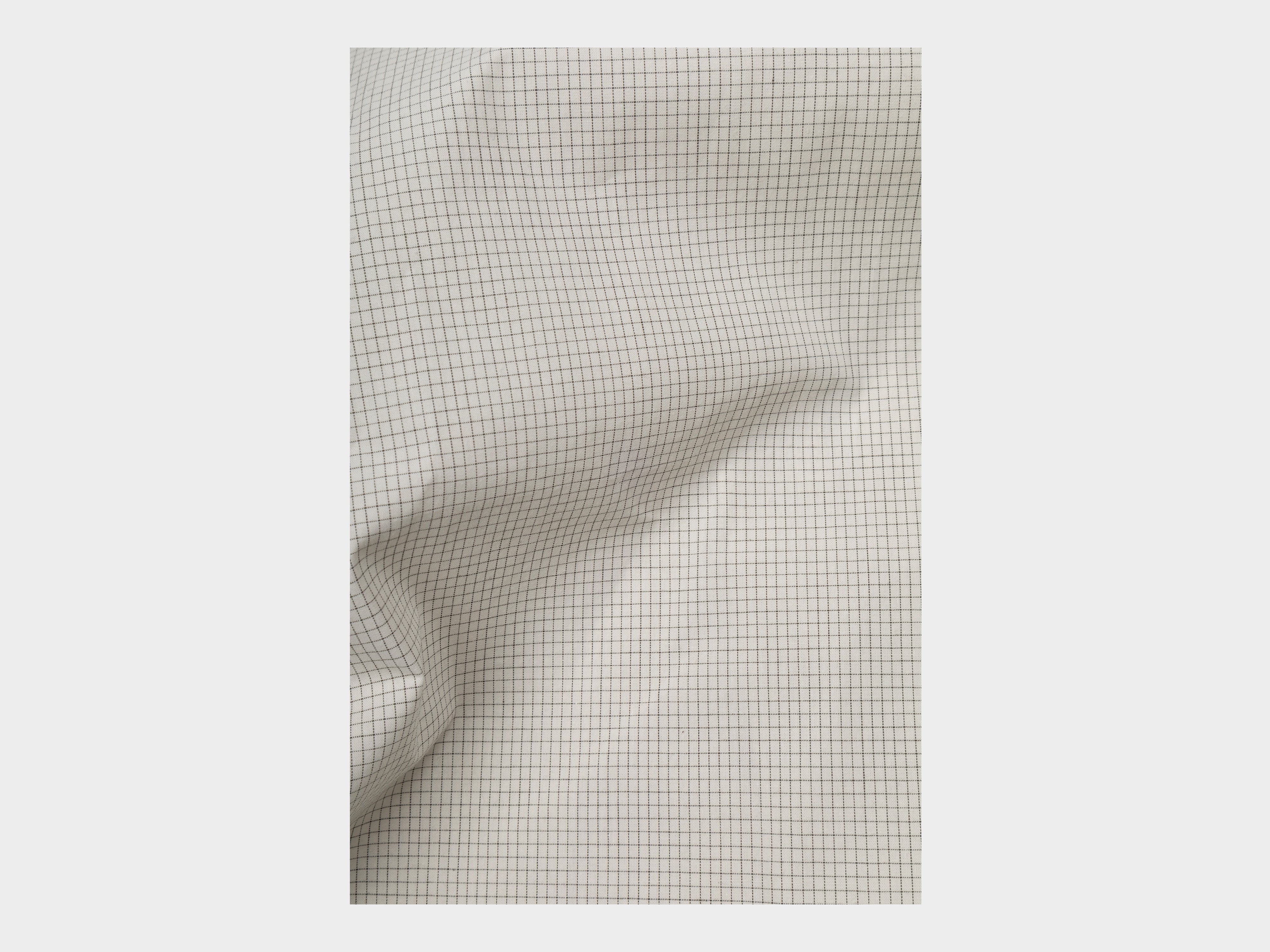 +Yard-dyed 100% cotton broadcloth with fine square grid motif. Using multiple finishings, a dry, papery texture has been achieved. Woven in Hyogo, Japan.