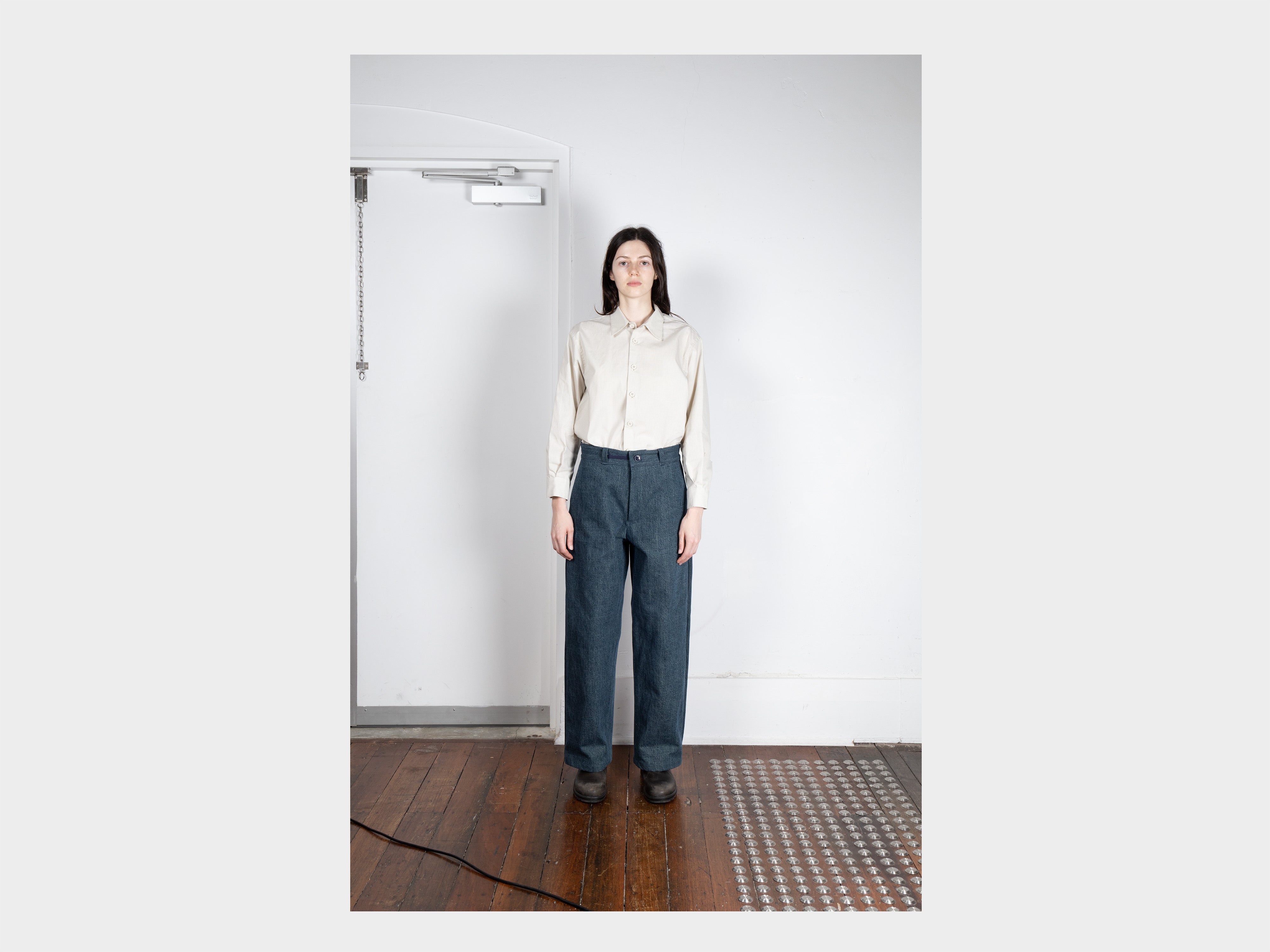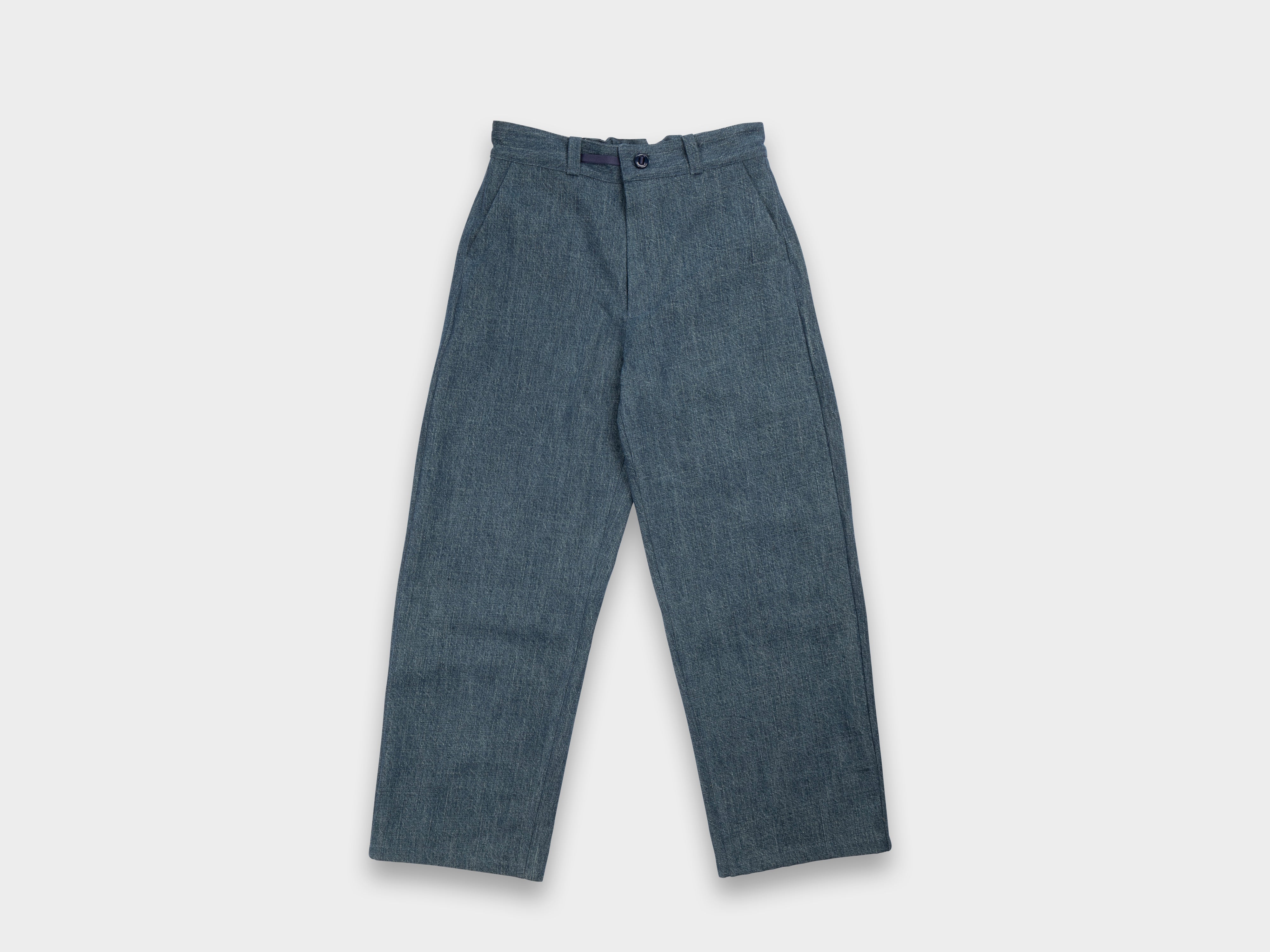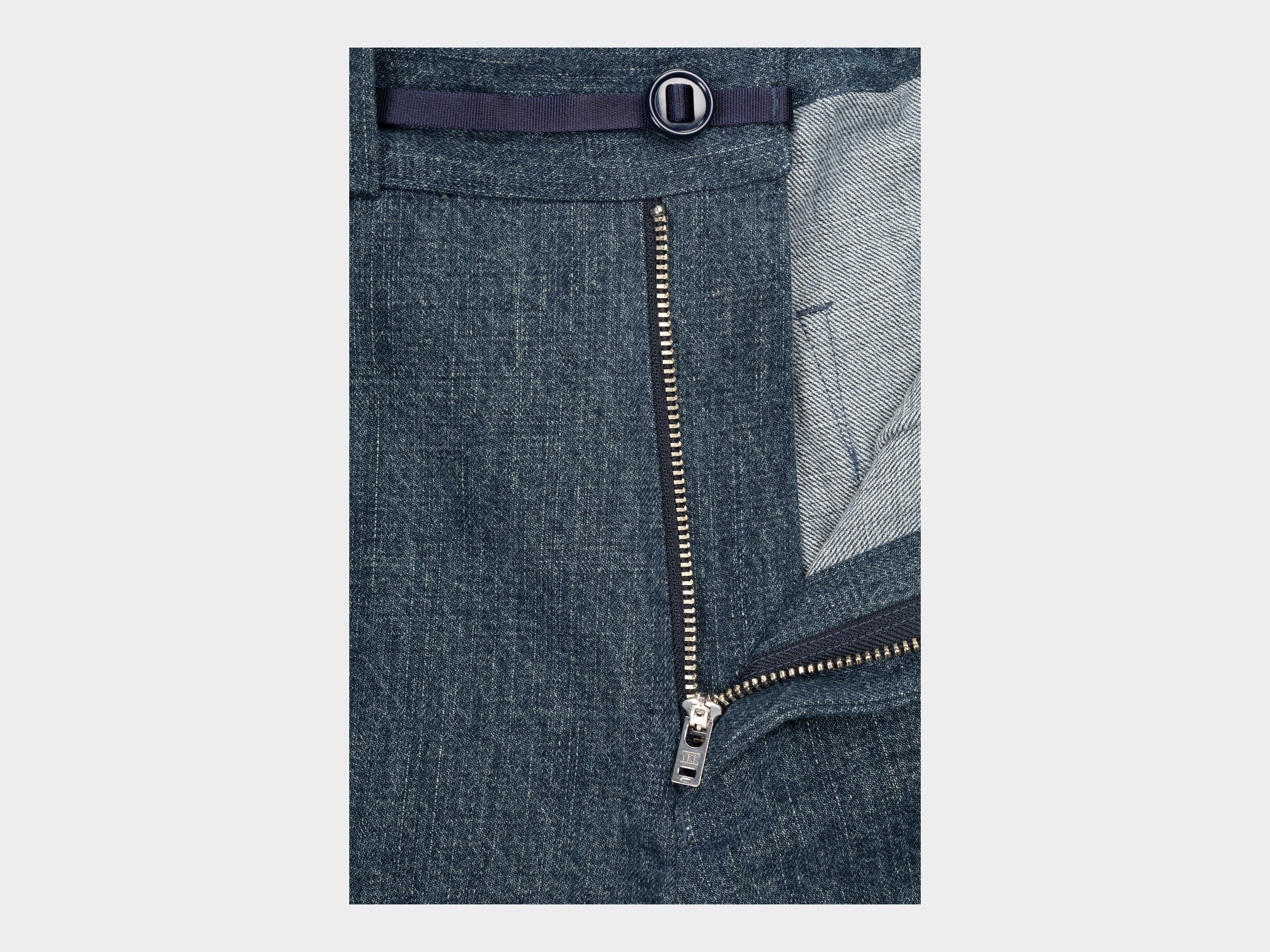 +13.9oz 100% cotton denim. Yarn-dyed with beige sulphur dye then with indigo to create the warm colour and texture. Dyed and woven in Okayama, Japan
