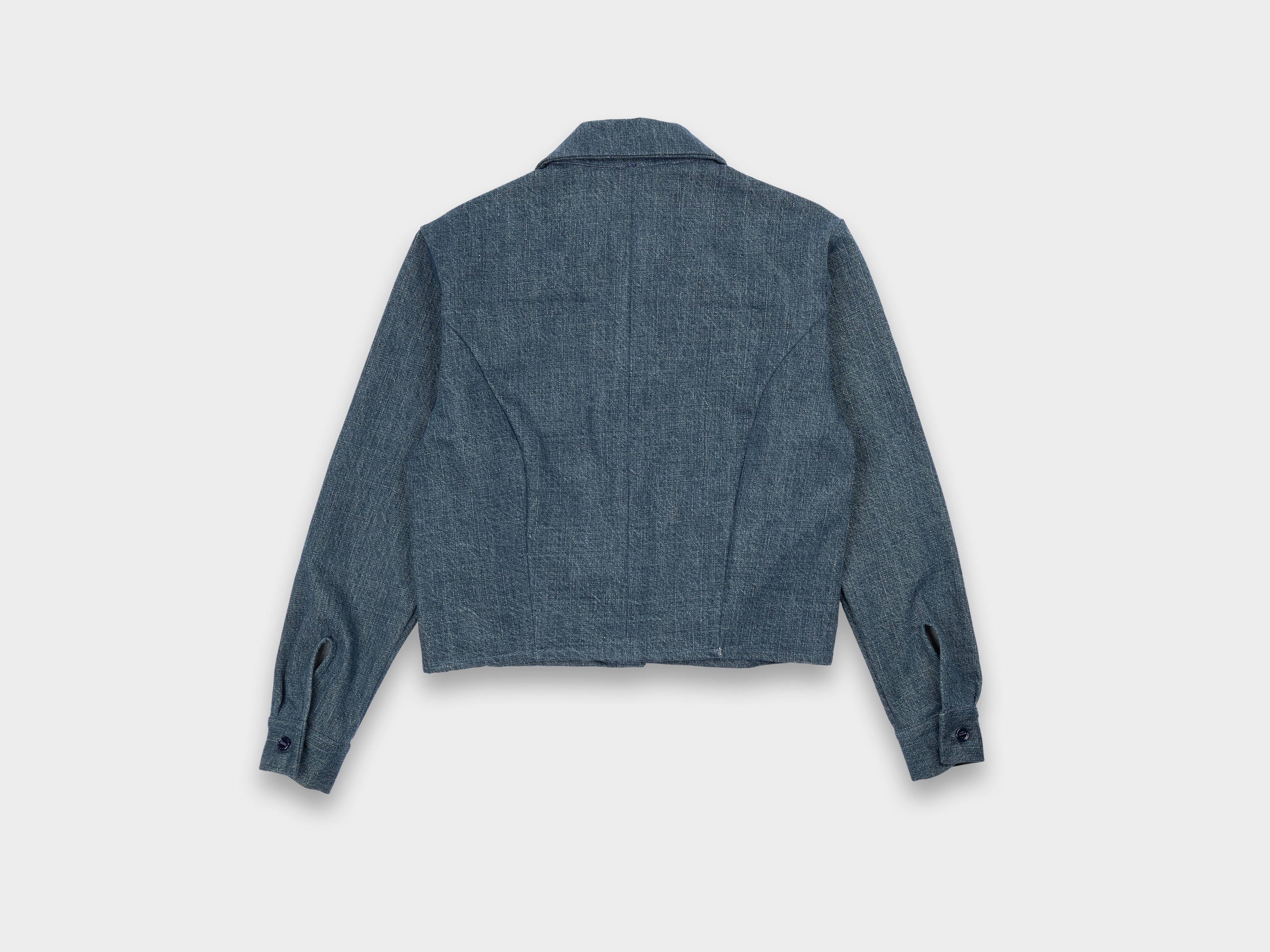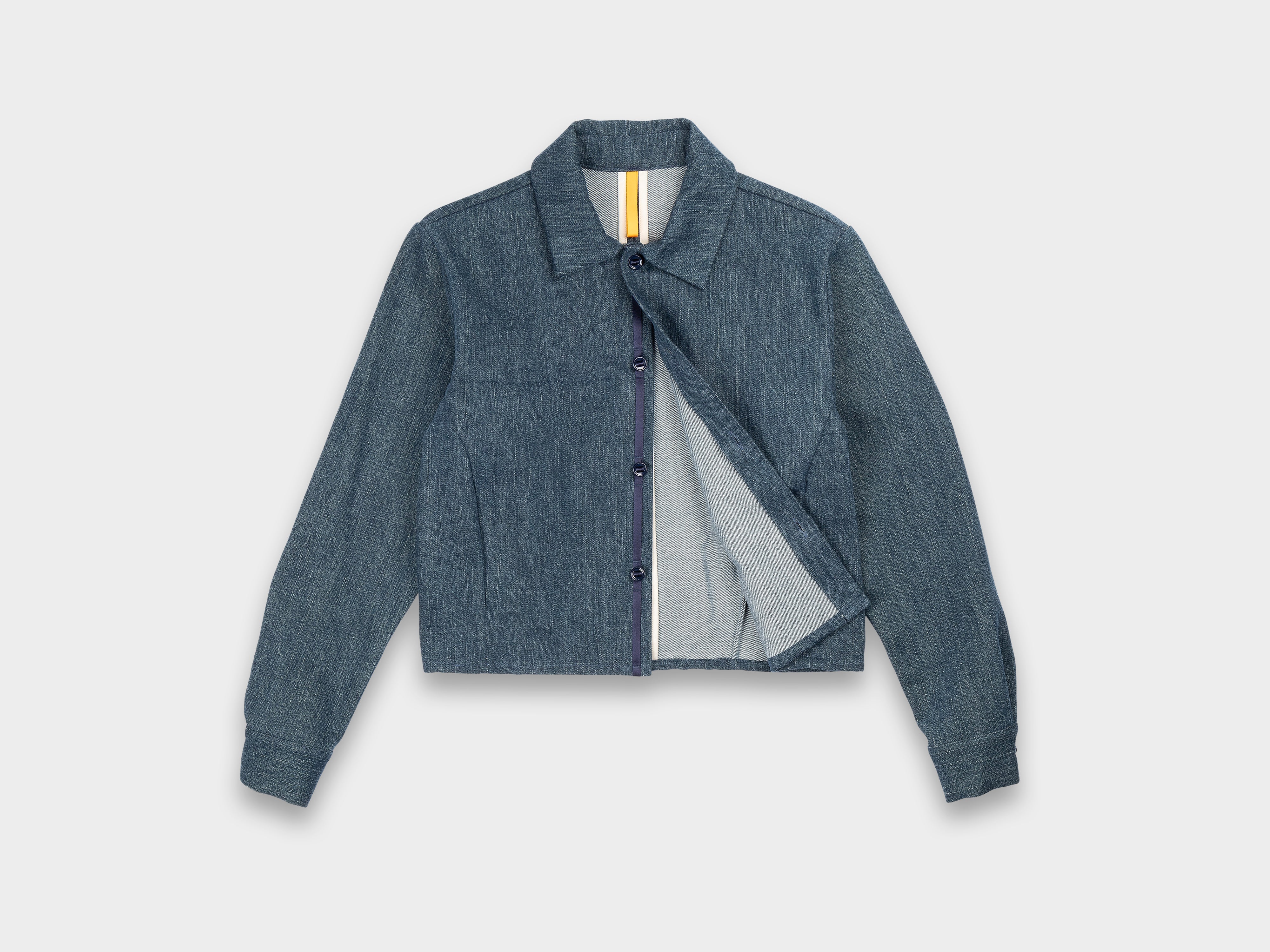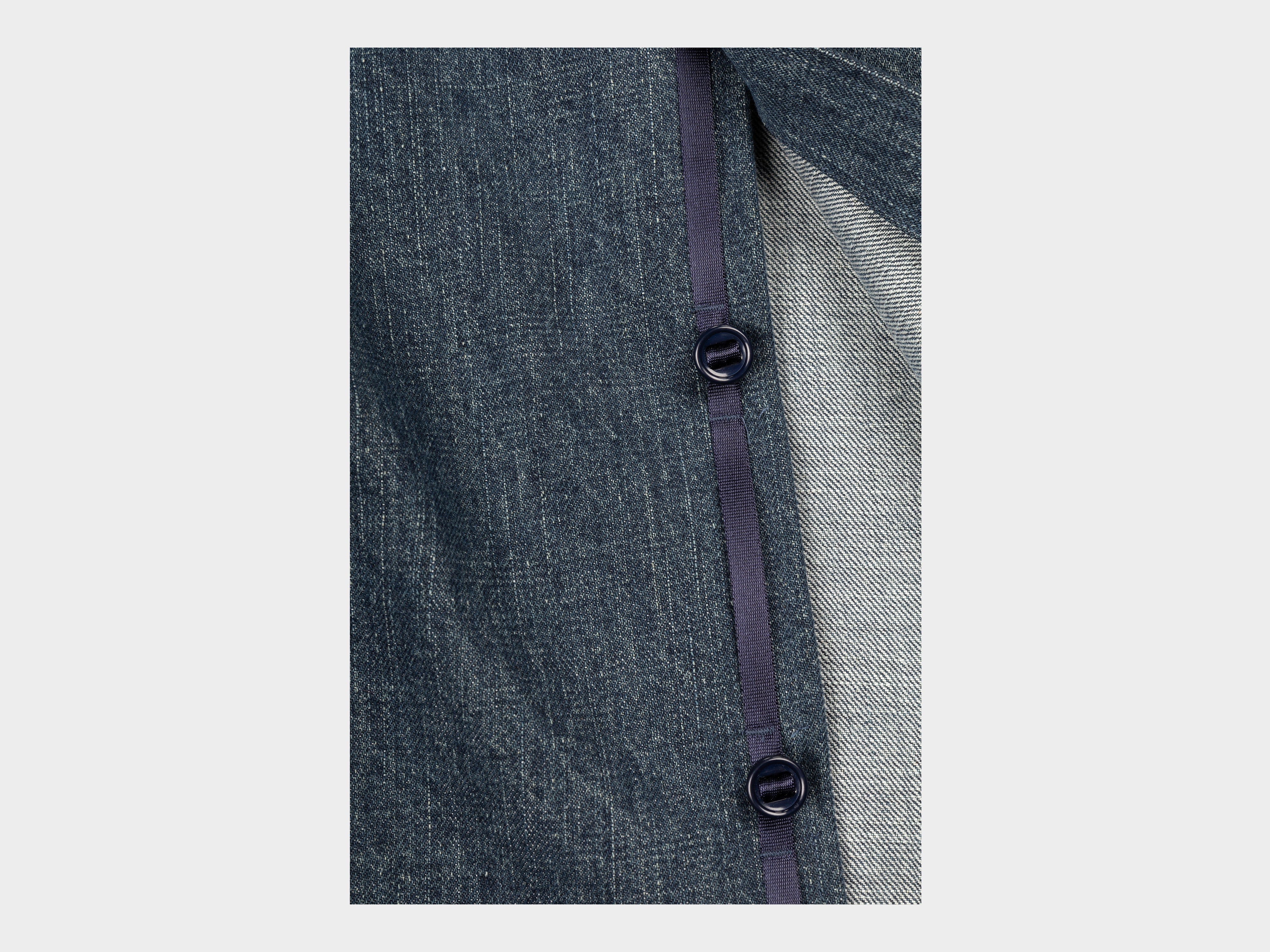 13.9oz 100% cotton denim. Yarn-dyed with beige sulphur dye then with indigo to create the warm colour and texture. Dyed and woven in Okayama, Japan