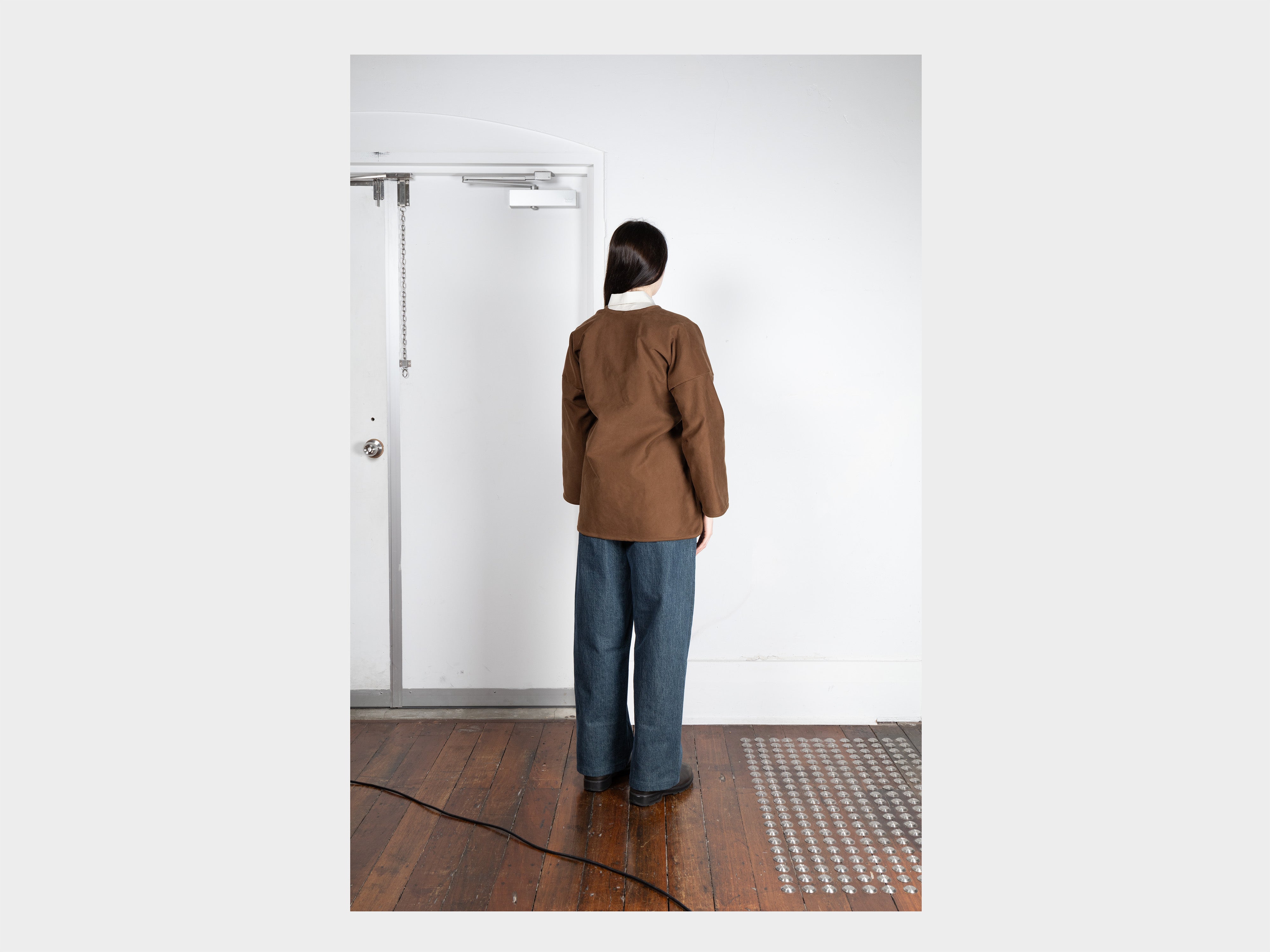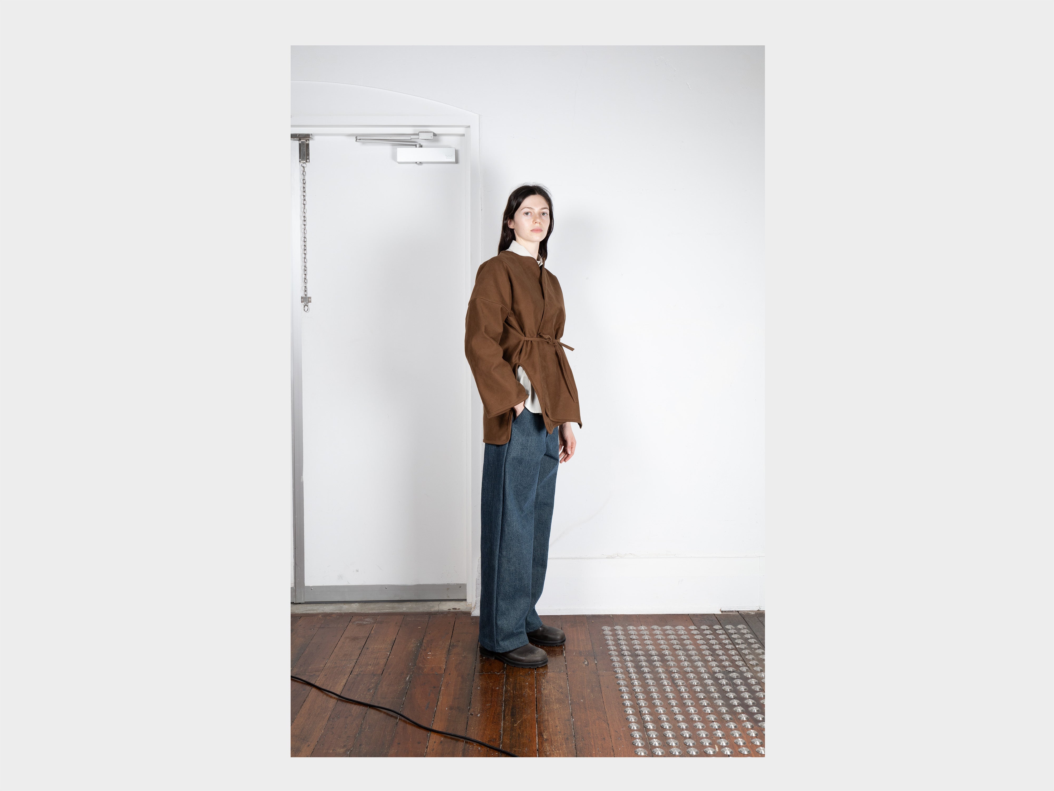 100% cotton. Heavyweight 400gsm moleskin with a brushed surface and soft, suede-like handle. Woven in Okayama.