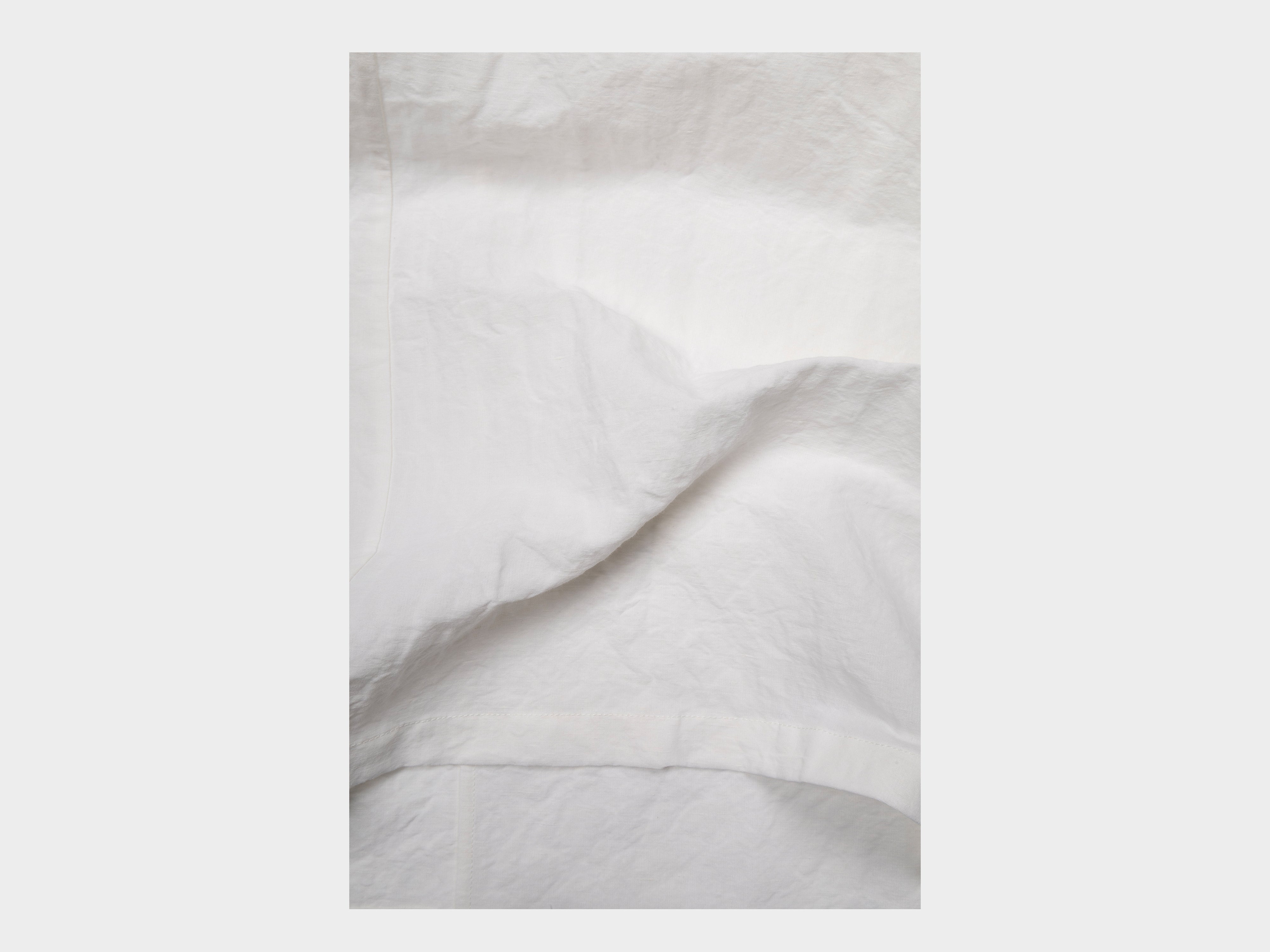 +60% cotton / 40% linen woven from high–twist yarn. Naturally stiff, this cloth lifts from the skin allowing for breathability. Midweight with a dry handle, it becomes lighter and softer with washing and wear. Pre–shrunk to reduce shrinkage. Woven for MAN–TLE in Shizuoka, Japan using a wooden shuttle loom.
