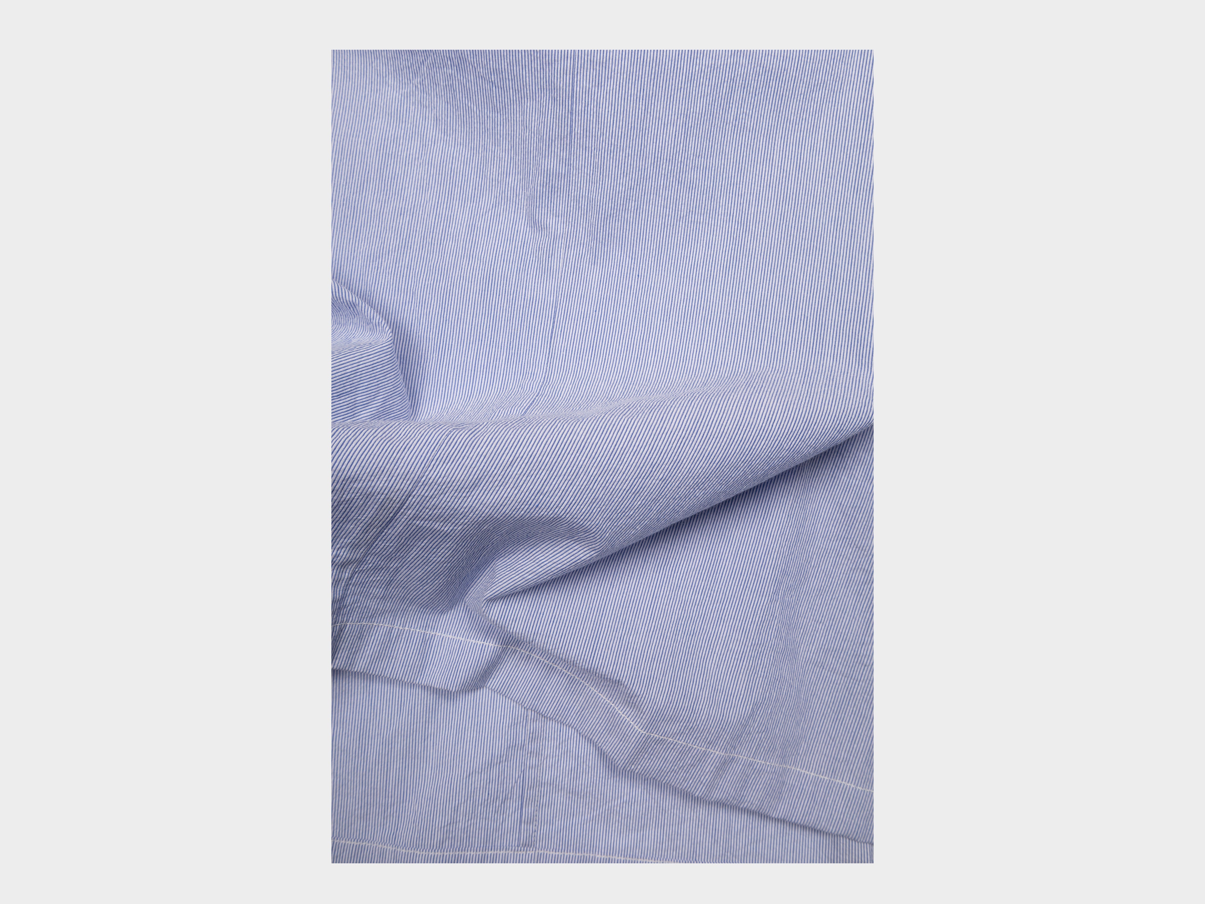 100% cotton cordlane. Lightweight cloth woven with varied yarn thicknesses to create textural wales. With washing and wear this cloth will become lighter and papery. Woven for MAN–TLE in Shozuoka, Japan using a wooden shuttle loom.